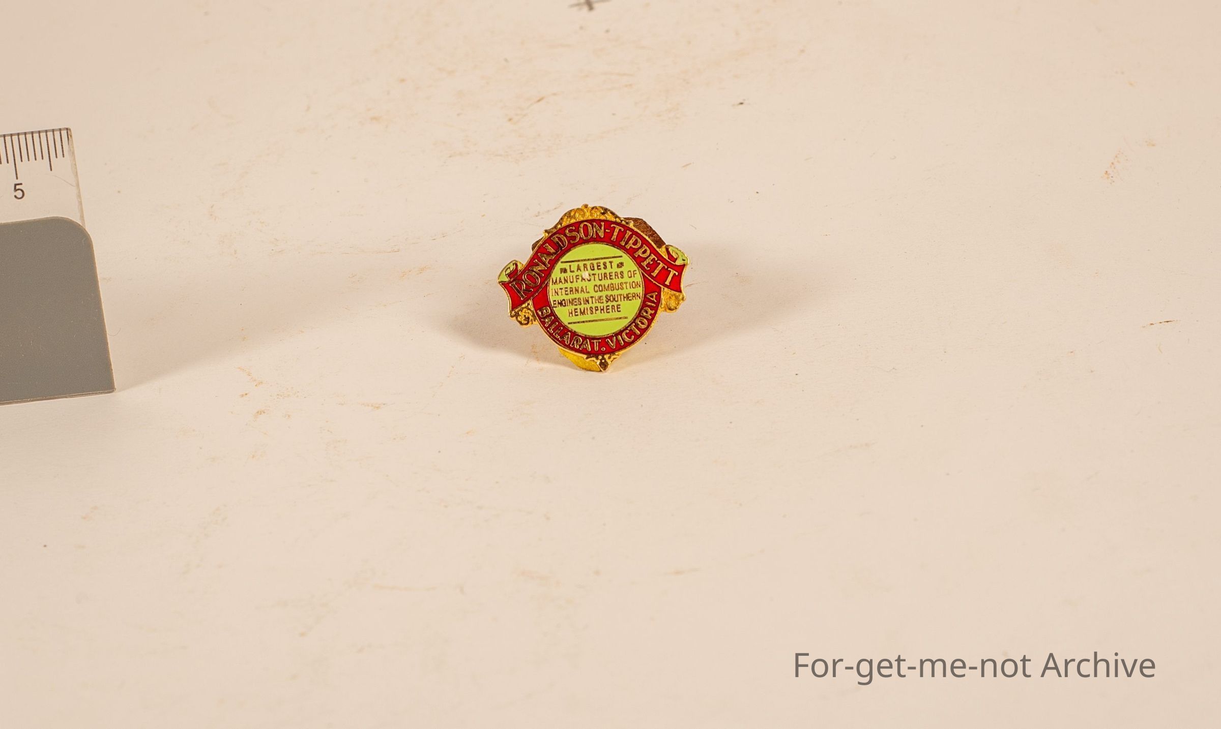 Small enamel badge, advertising for Ronaldson Tippett Manufacturing, Ballarat, not an old piece, quite contemporary