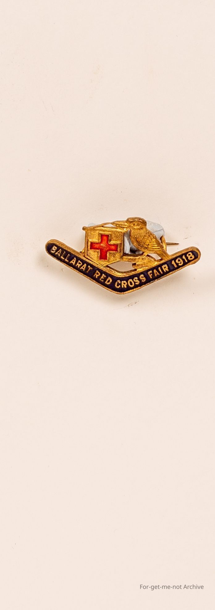 A badge, Ballarat Red Cross Fair, 1918 with Red Cross and a Kookaburra.