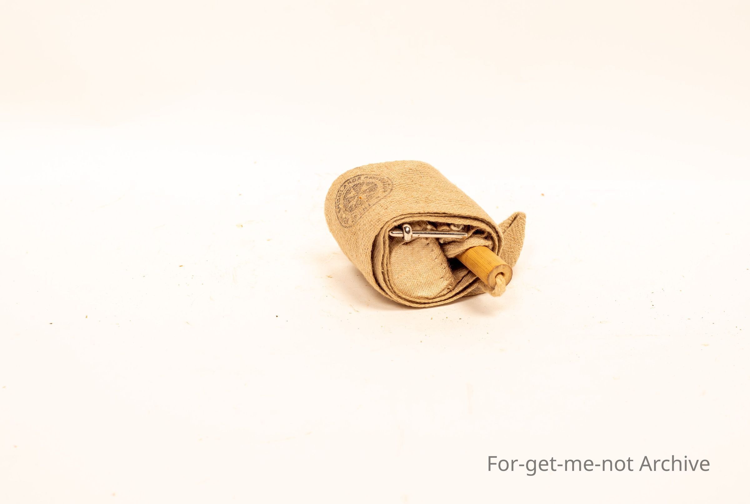 A hessian bandage for applying pressure on wounds to stop bleeding