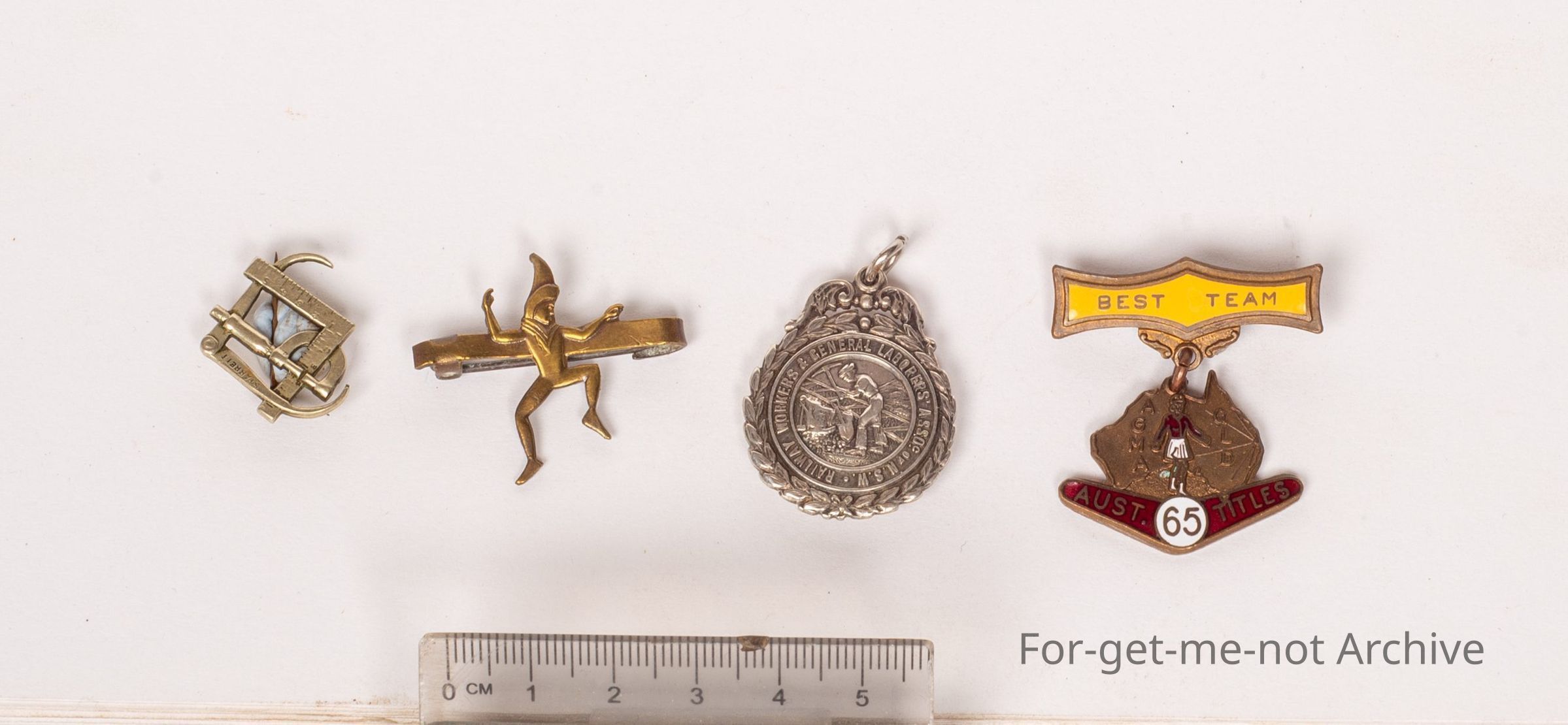 First one, Rail Workers and General Labours Association New South Wales. 2nd one, Australian titles, 65, AGMA Queensland, best team. 3rd one, Leroy Starrett. And the last one has a guy with a cap dancing on a barpin .Collection