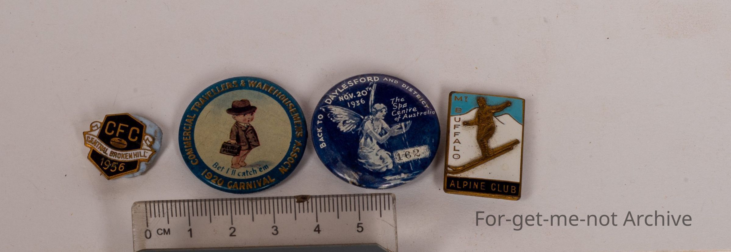 First one, Central Brighton Hill, CFC, probably football club, 1956. Second one, Commercial Travelers Warehouse Services. 120 Carnival oh, Service Association. 1 1920 Carnival. 3rd one. Back to Daylesford and District, November 20th 1936, the Spa Centre of Australia. And the last one, Mount Buffalo Alpine Club with a picture of a skier.Collection