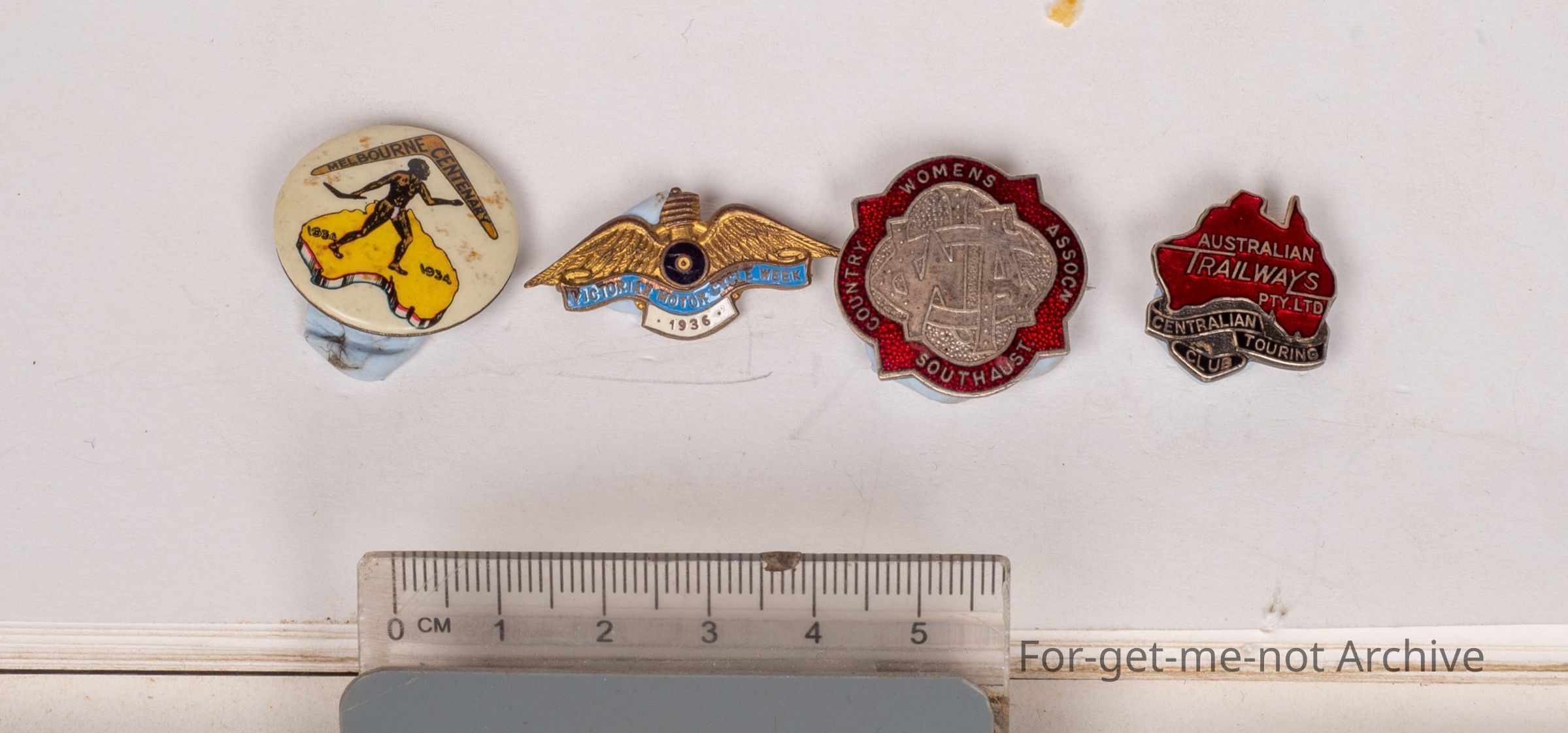 First one, Australian Railways Proprietary Limited Central Touring Club. 2nd one, Melbourne Centenary 19, 1834 to 1934. 3rd one Country Women's Association South Australia. 4th one Victoria Motorcycle weekCollection