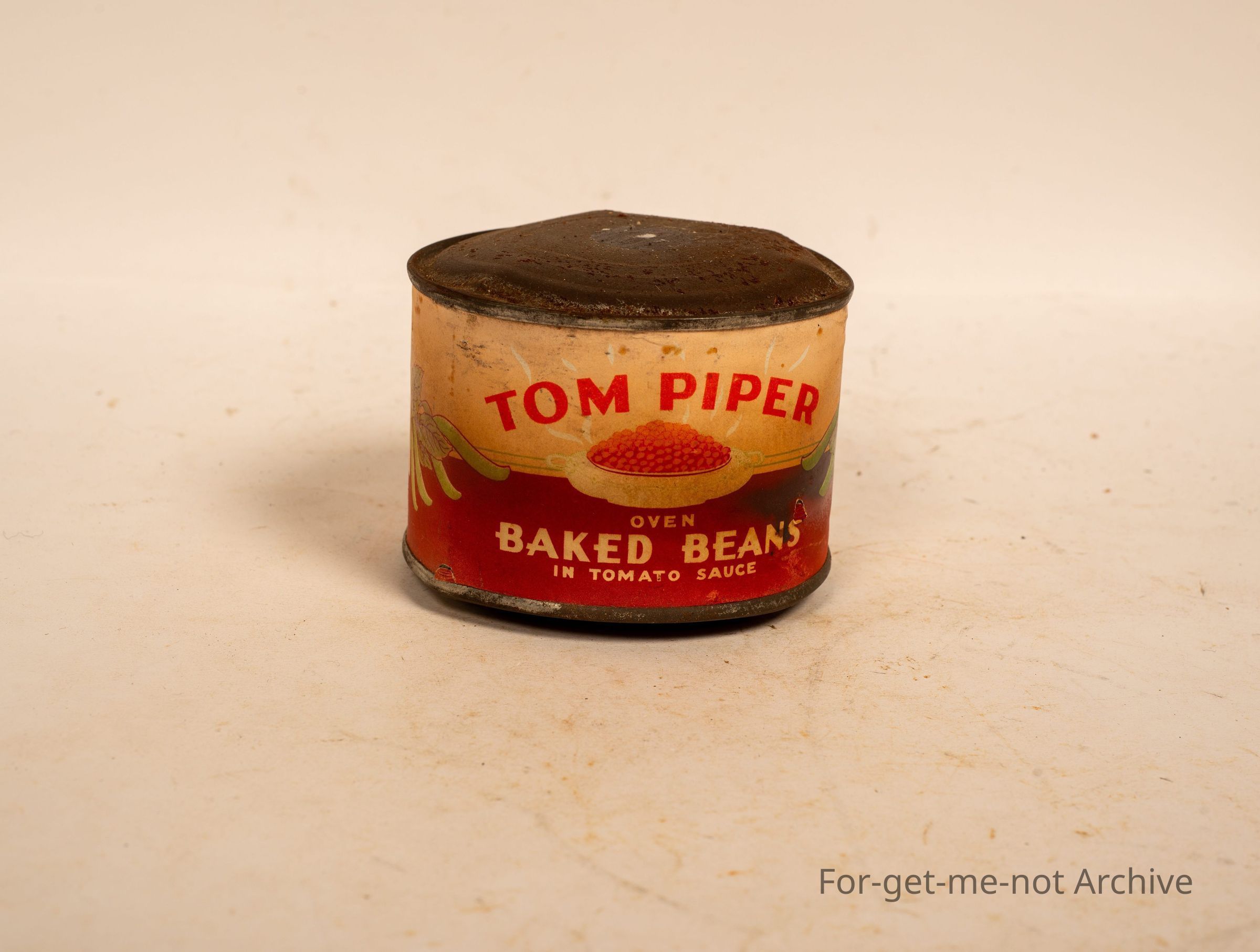 Is a quite an aged tin of Tom Piper oven baked beans in tomato sauce. This tin looks like it's ready to explode. 16 ounces net