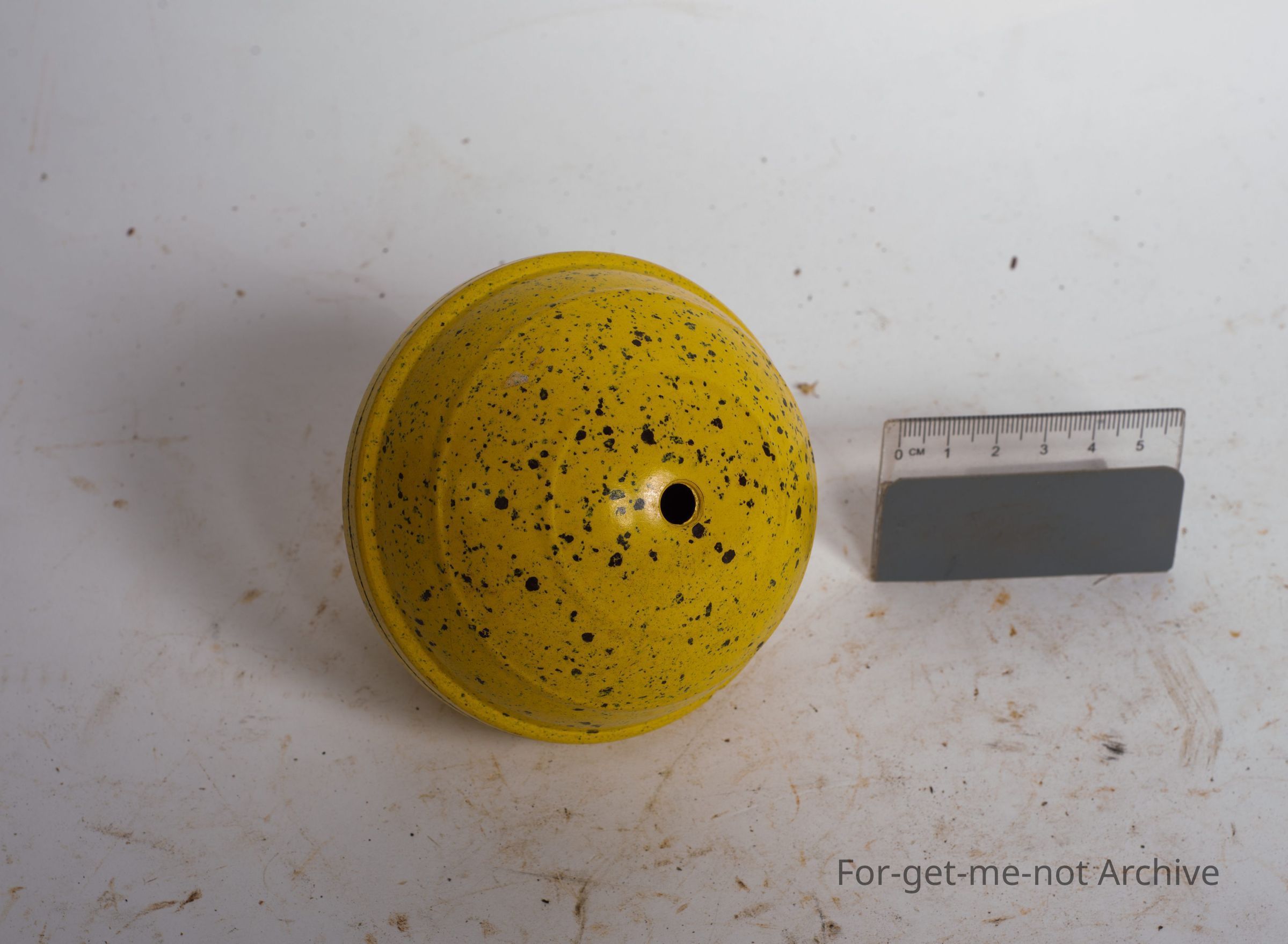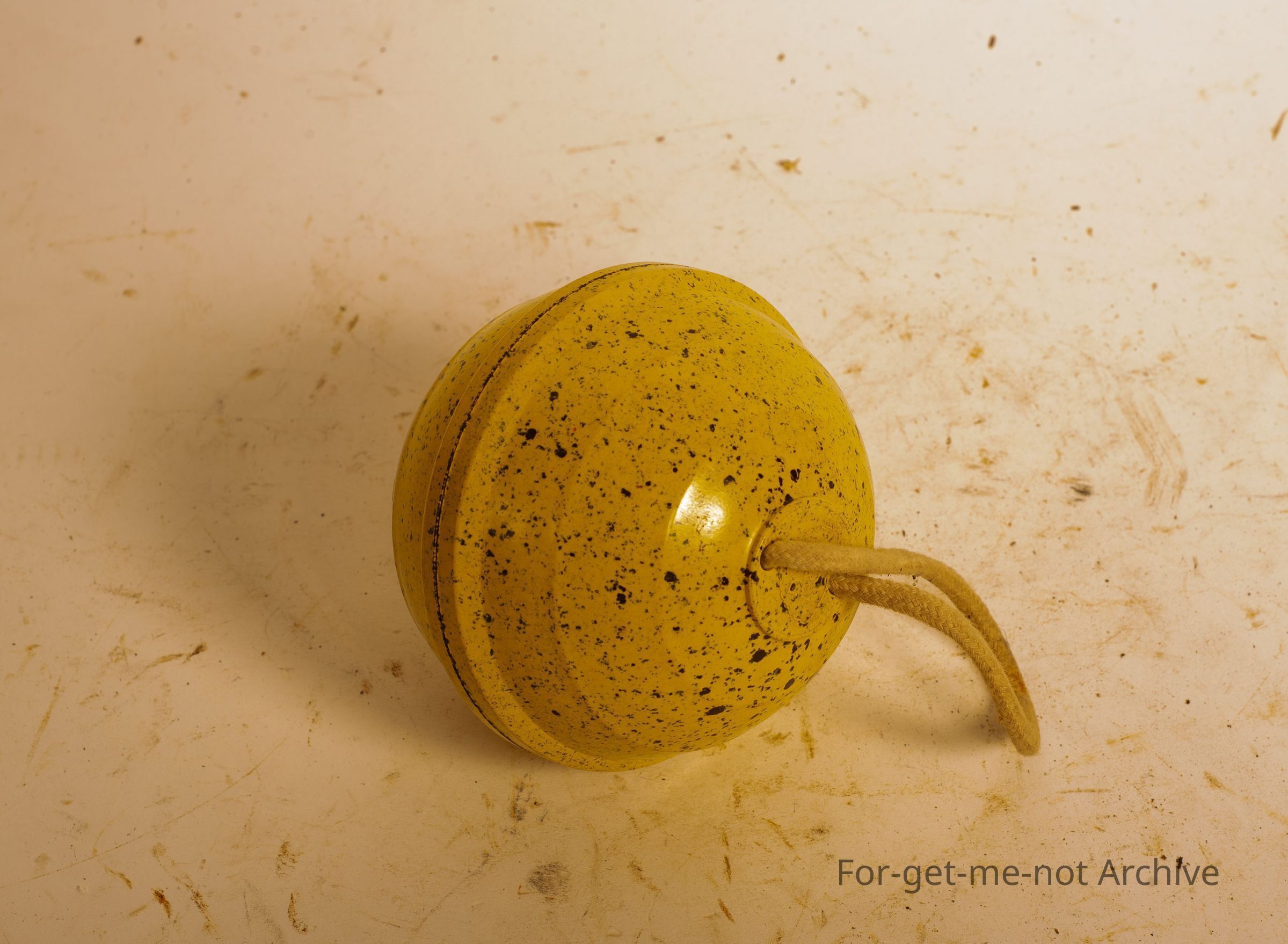 This is a Bakelite, dispenser of for a wool. When a woman was knitting, the wool was drawn out through the hole in the base. Apparently, they were very popular and quite practical. This one is in perfect condition in a lovely speckled yellow bakelite.Collection