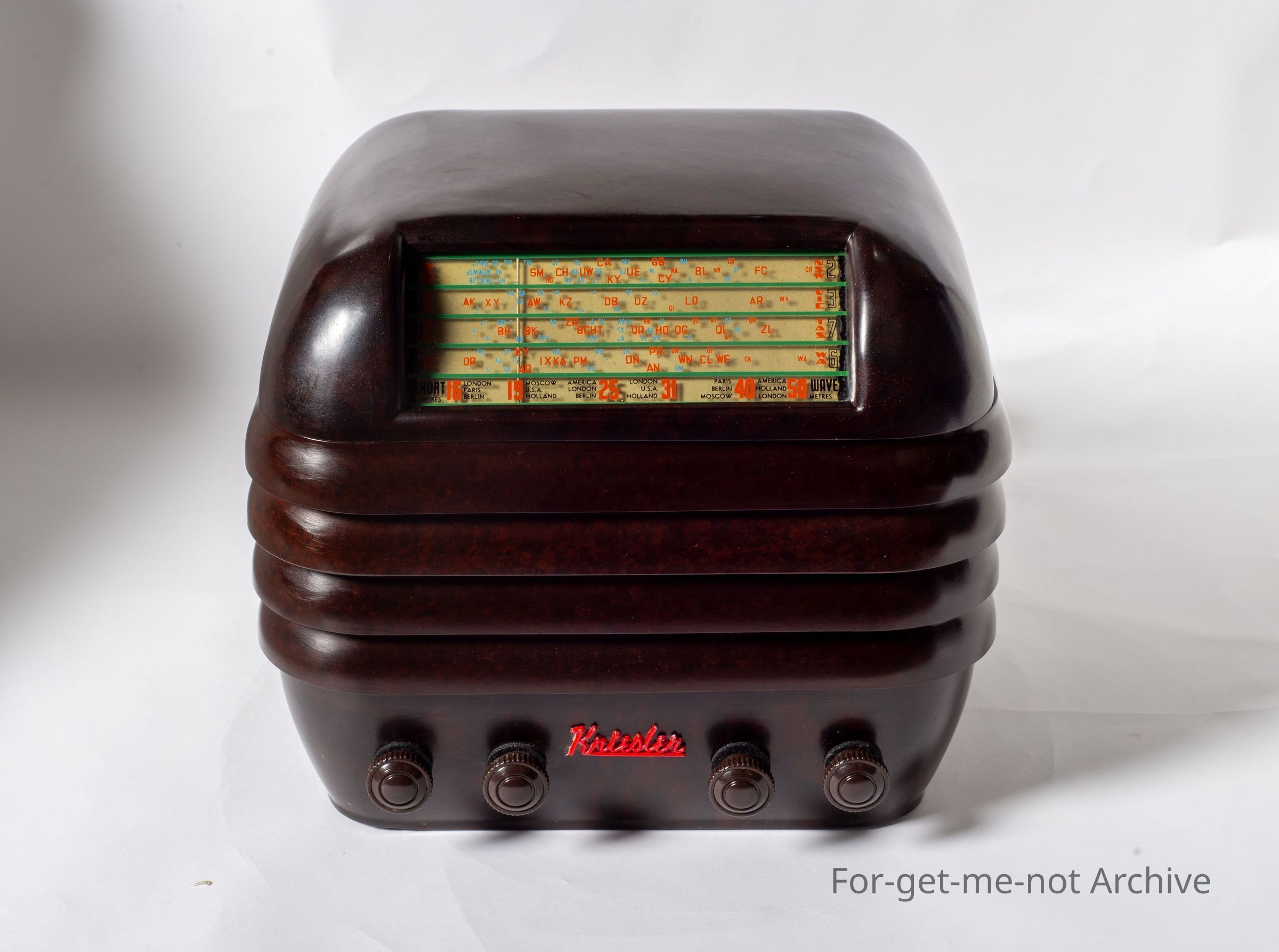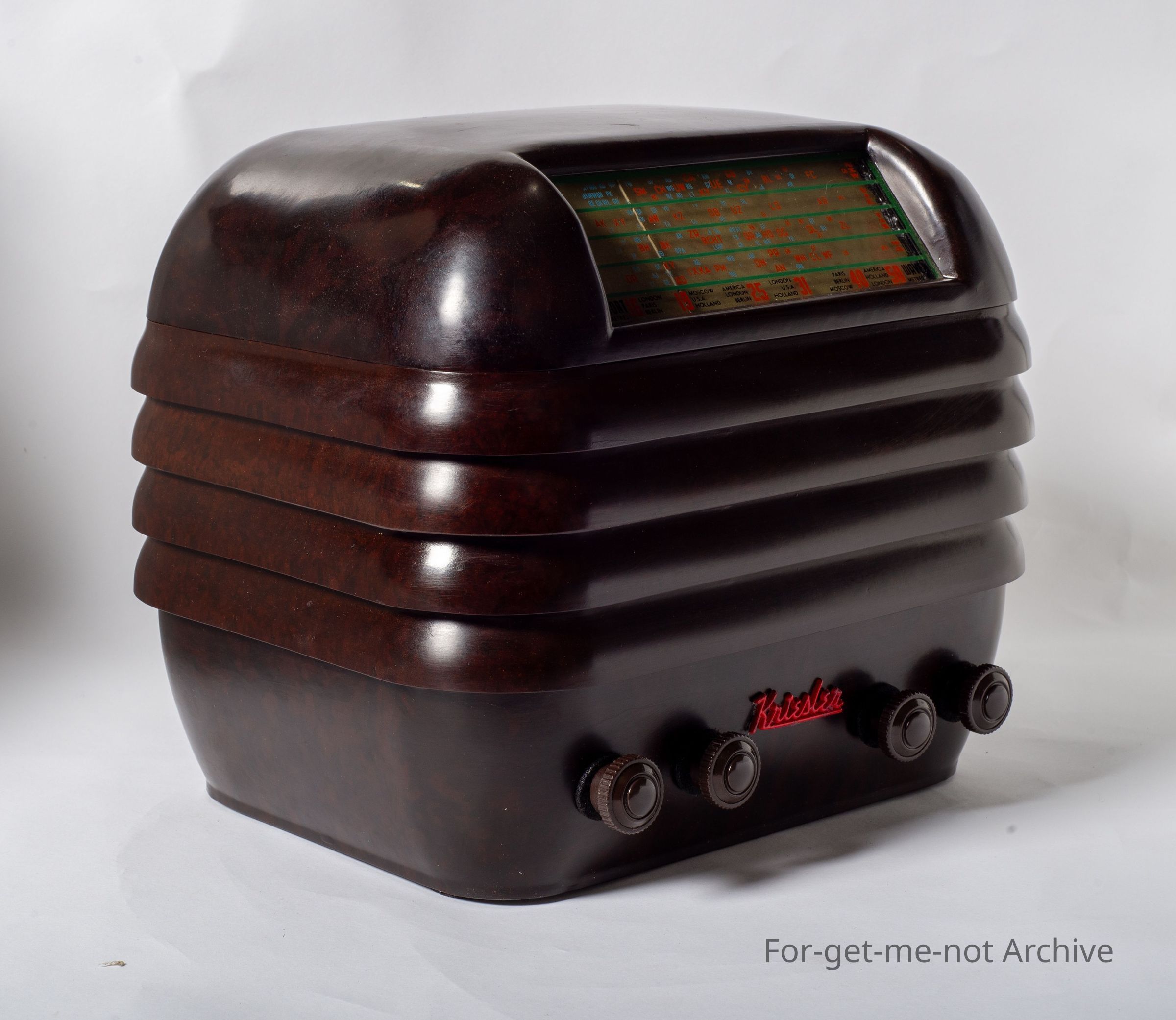 Bakelite Radio. This is a very small, squat, rib bodied, Chrysler Radio. Has all the original knobs and the Chrysler, title piece, in very good order. This has been professionally restored by Barry Foo in Ballarat.Collection
