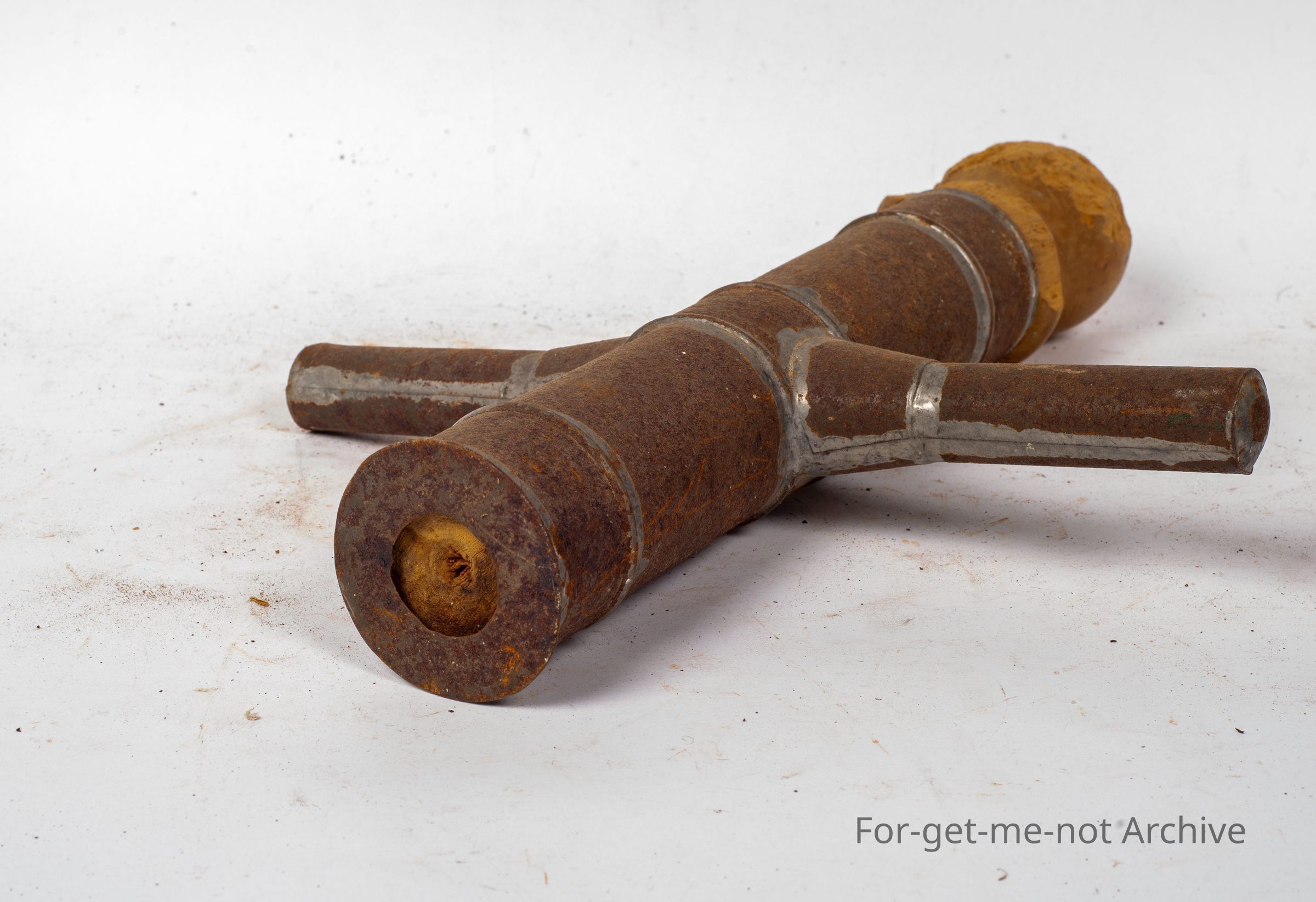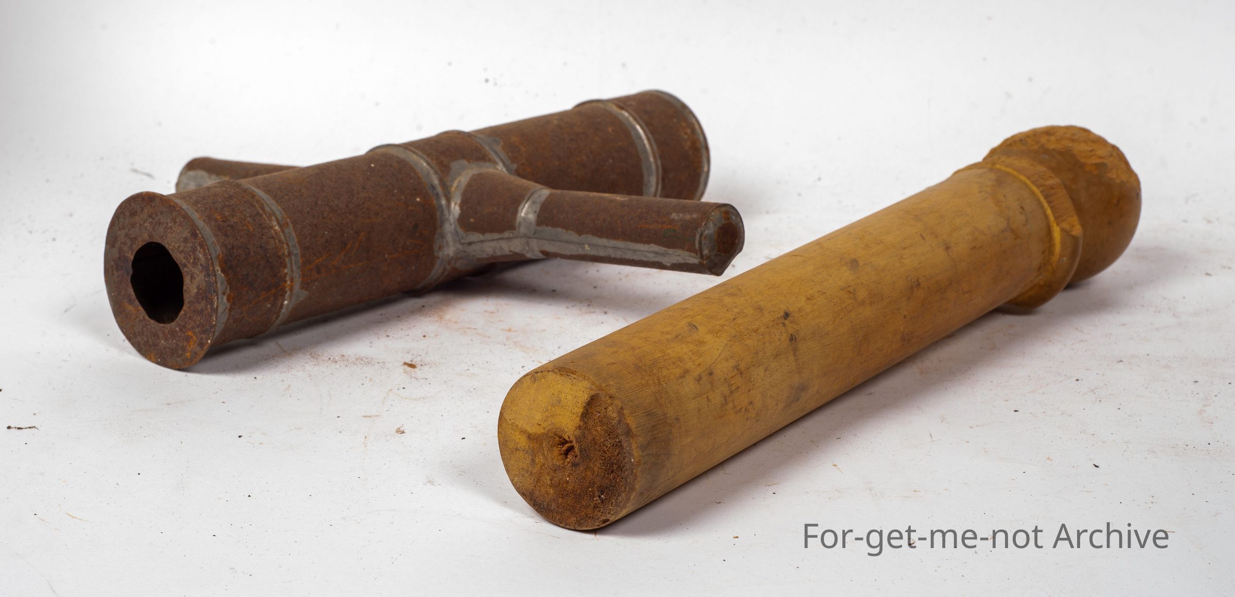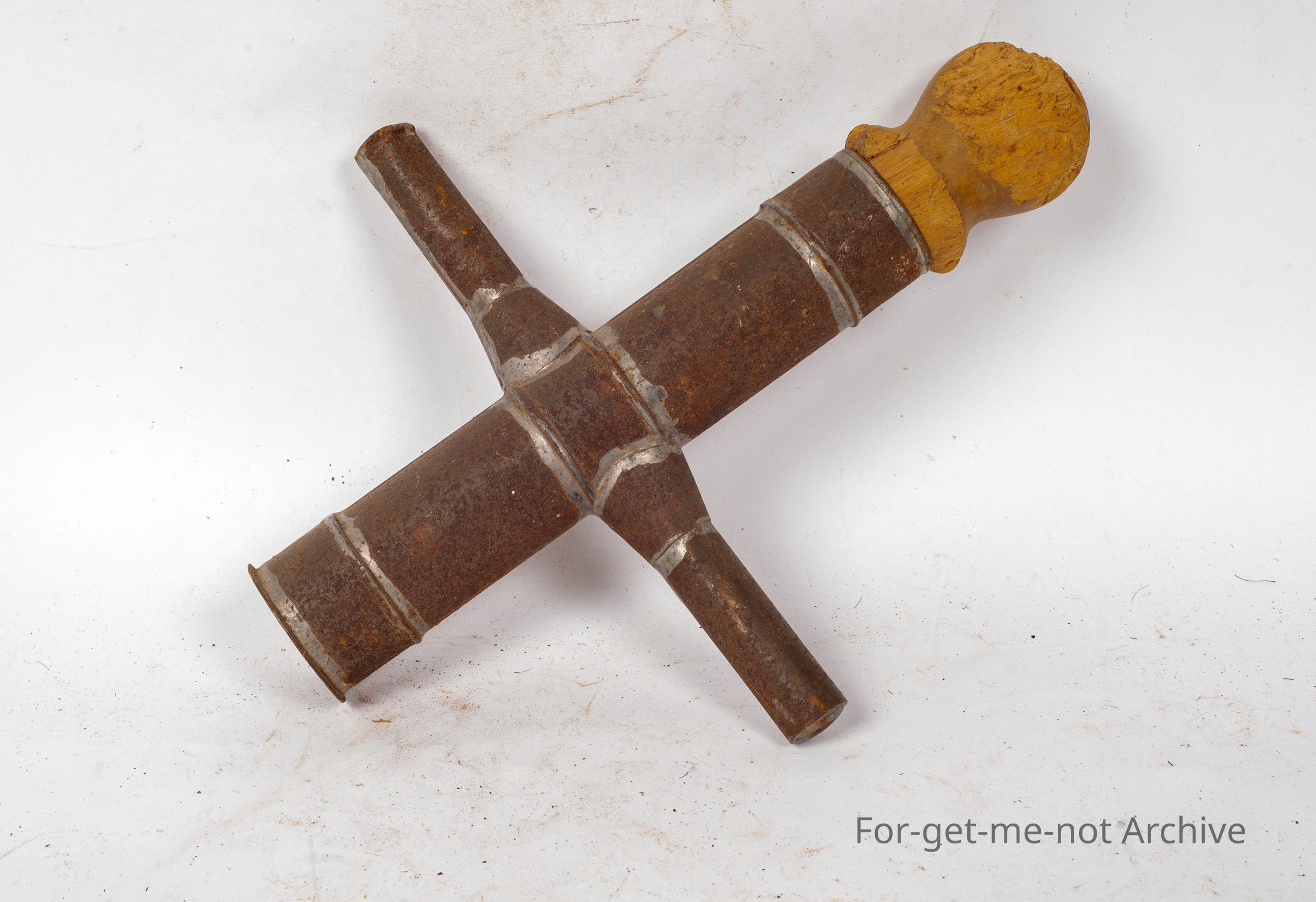 This is a baker's tool for pushing, a mix for making biscuits out in lumps, with a wooden plunger and little handpieces on the side. Beautifully made, a bit of damage to the top plunger but otherwise good.Collection