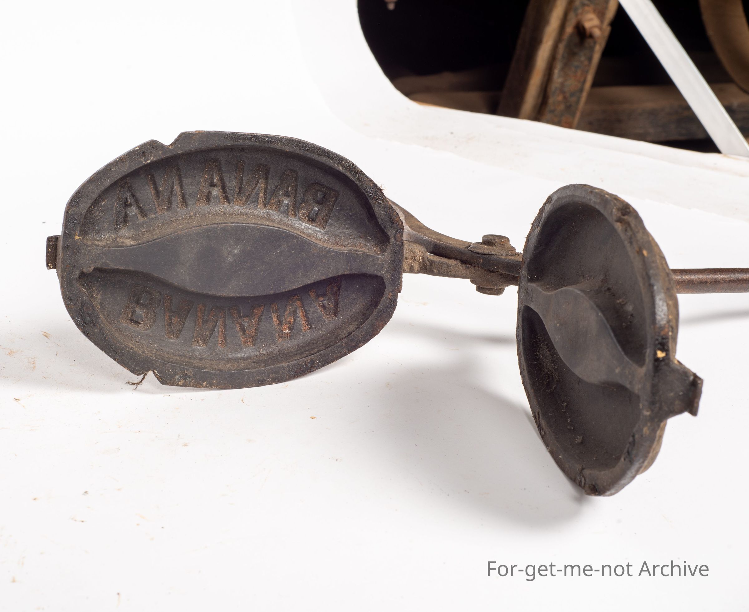 This is a rather heavy Cast Iron Banana Fritter. Cooker does 2 bananas at once. Each side leaves an embossed pattern of banana on the banana fritter.