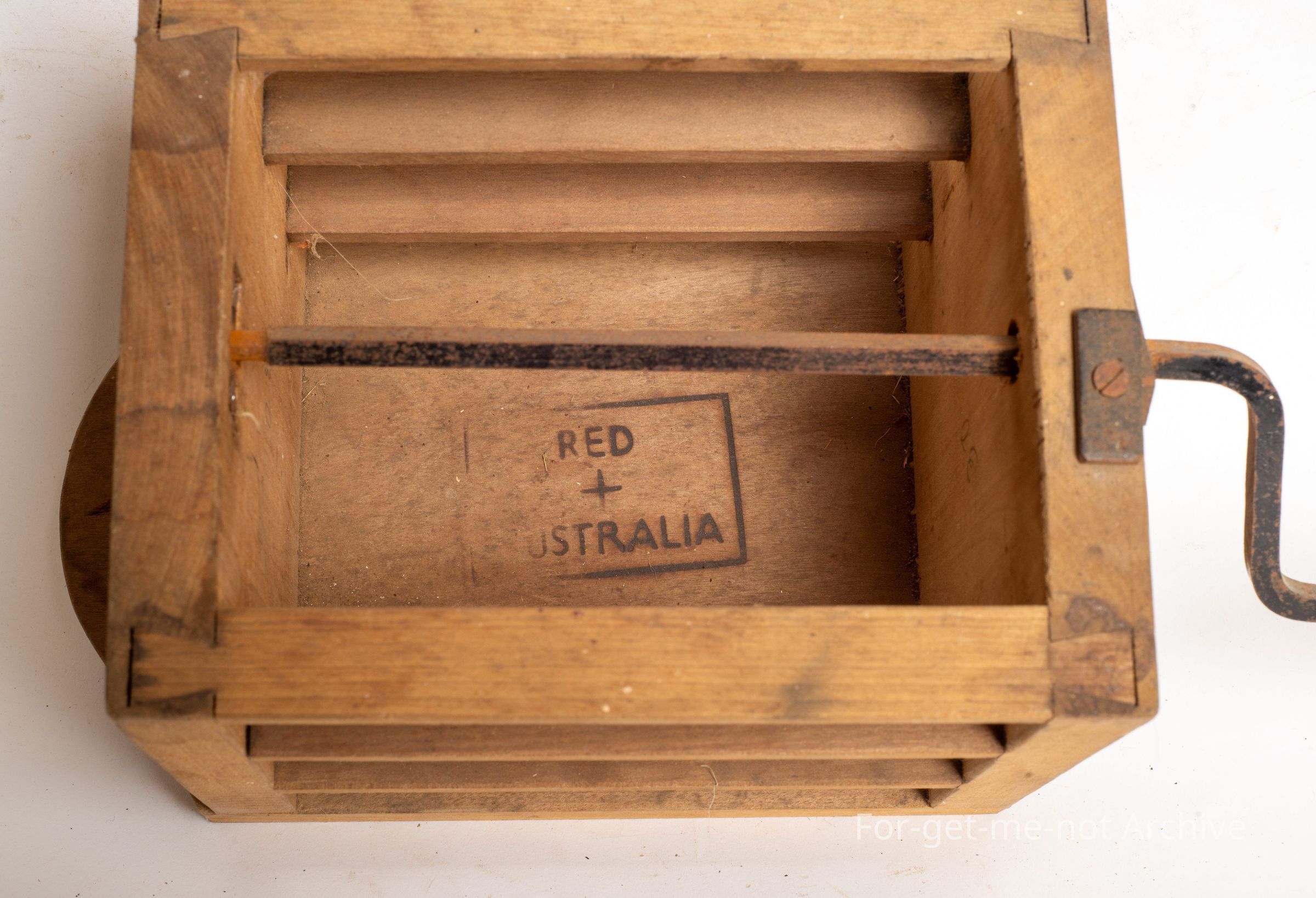 This is a wooden box for winding bandages up, stamped Red Cross Australia, wooden handle, in very good condition, all complete, probably a bit unusual.