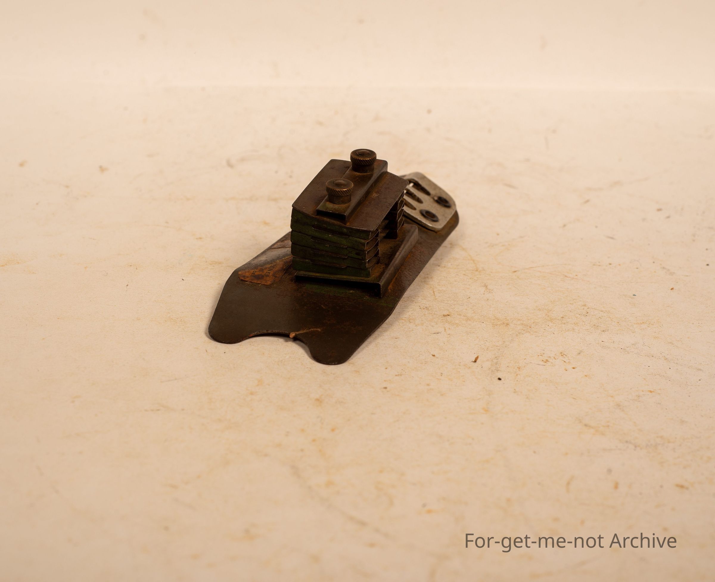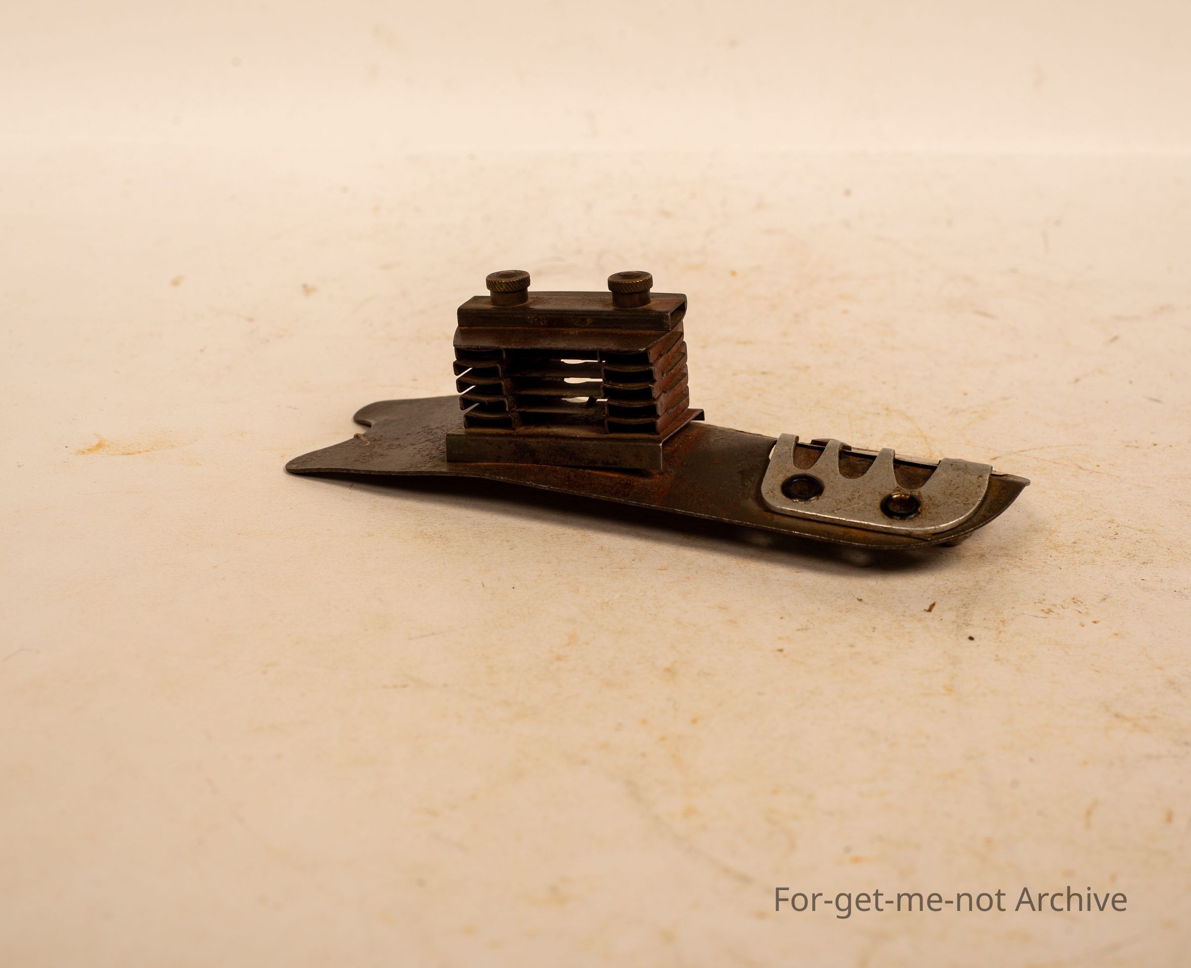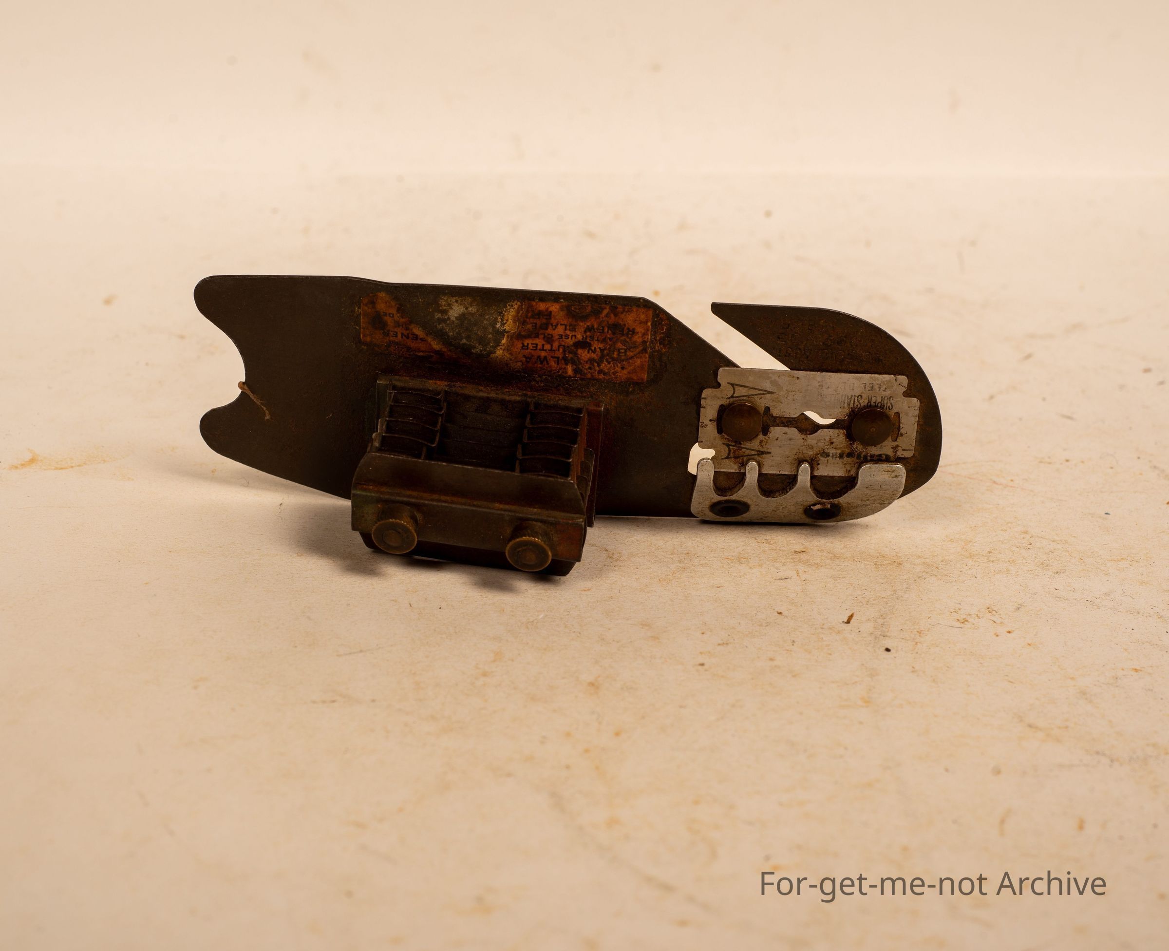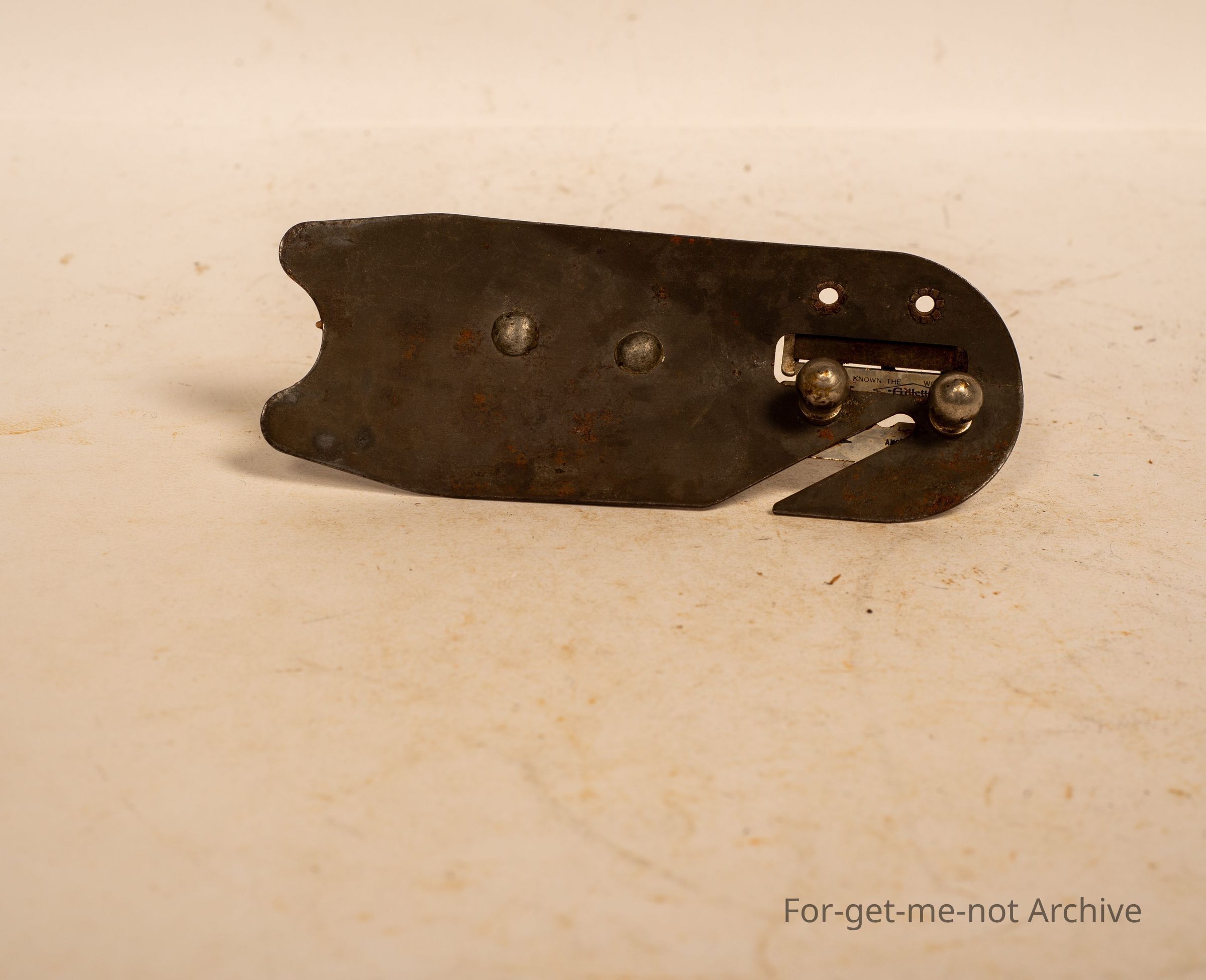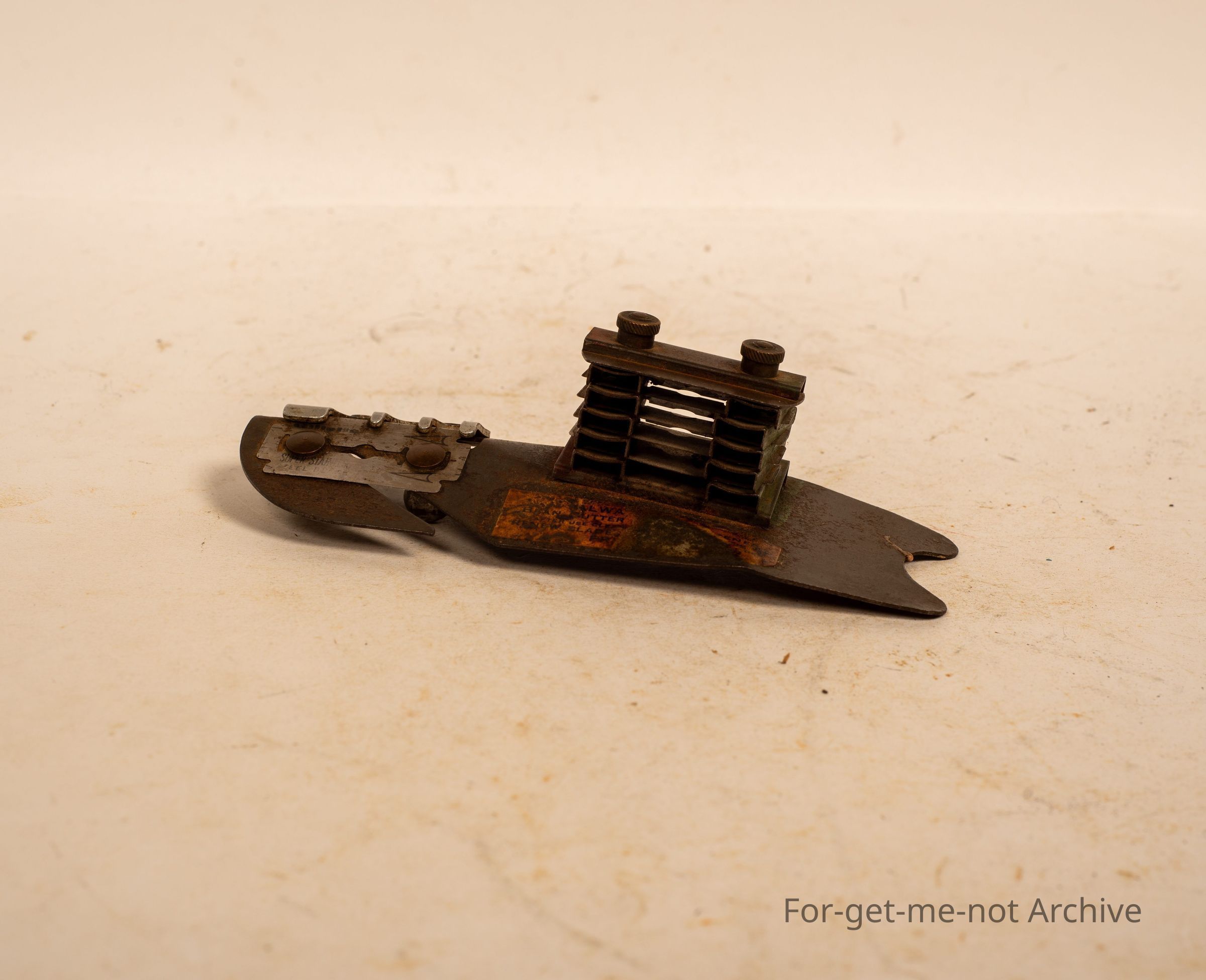A very unusual bean slicer. This is bladed with a razor blade with a tensioner set up in it. The stamping, unfortunately, you can't read, but I've never seen this before.