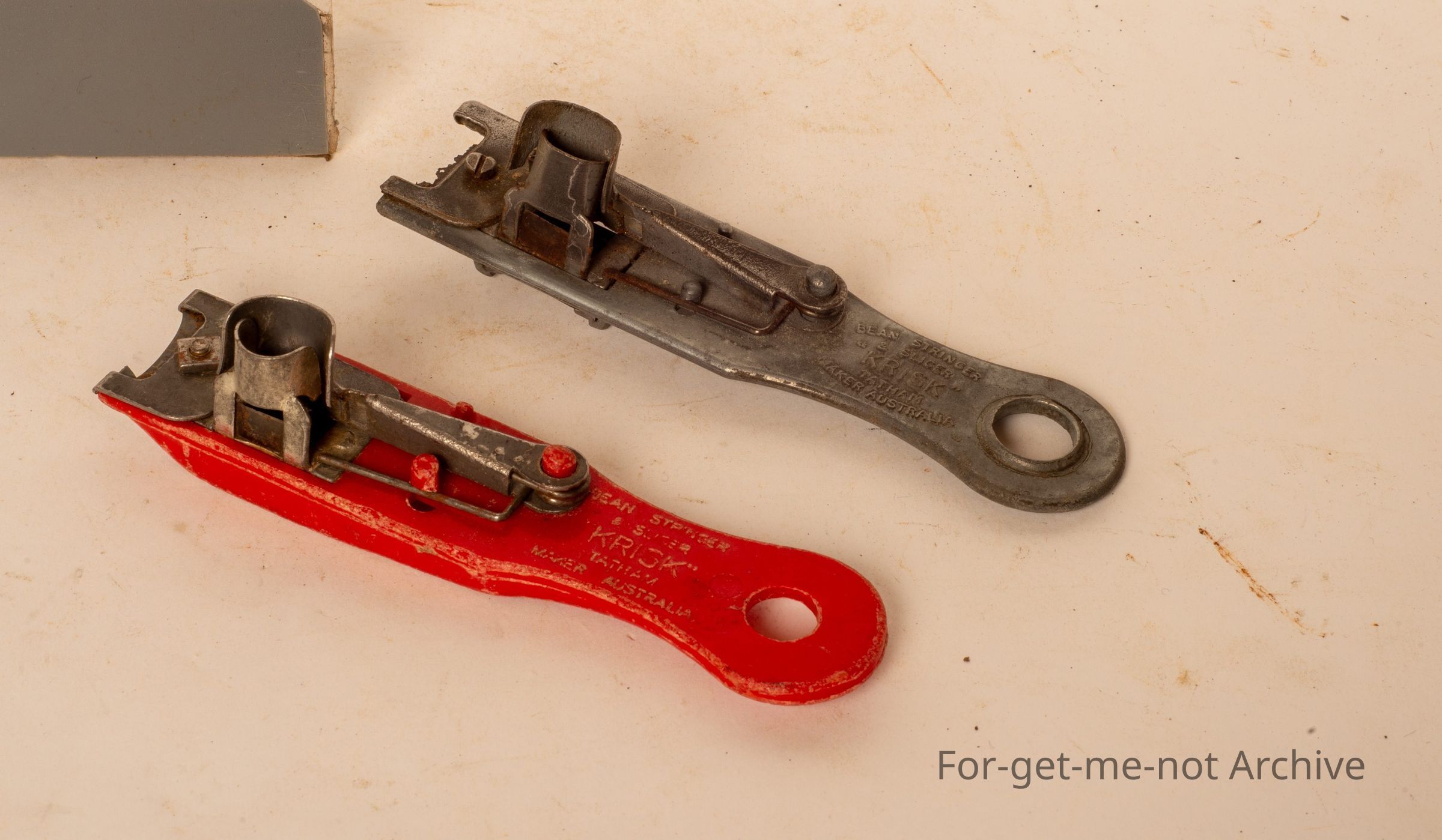 This one is called Krisc, made in Australia. The other one is an earlier one, made from an alloy. There's also a Krisc, made in Australia, both in good workable condition. These are still produced in Sydney, family owned co.Collection