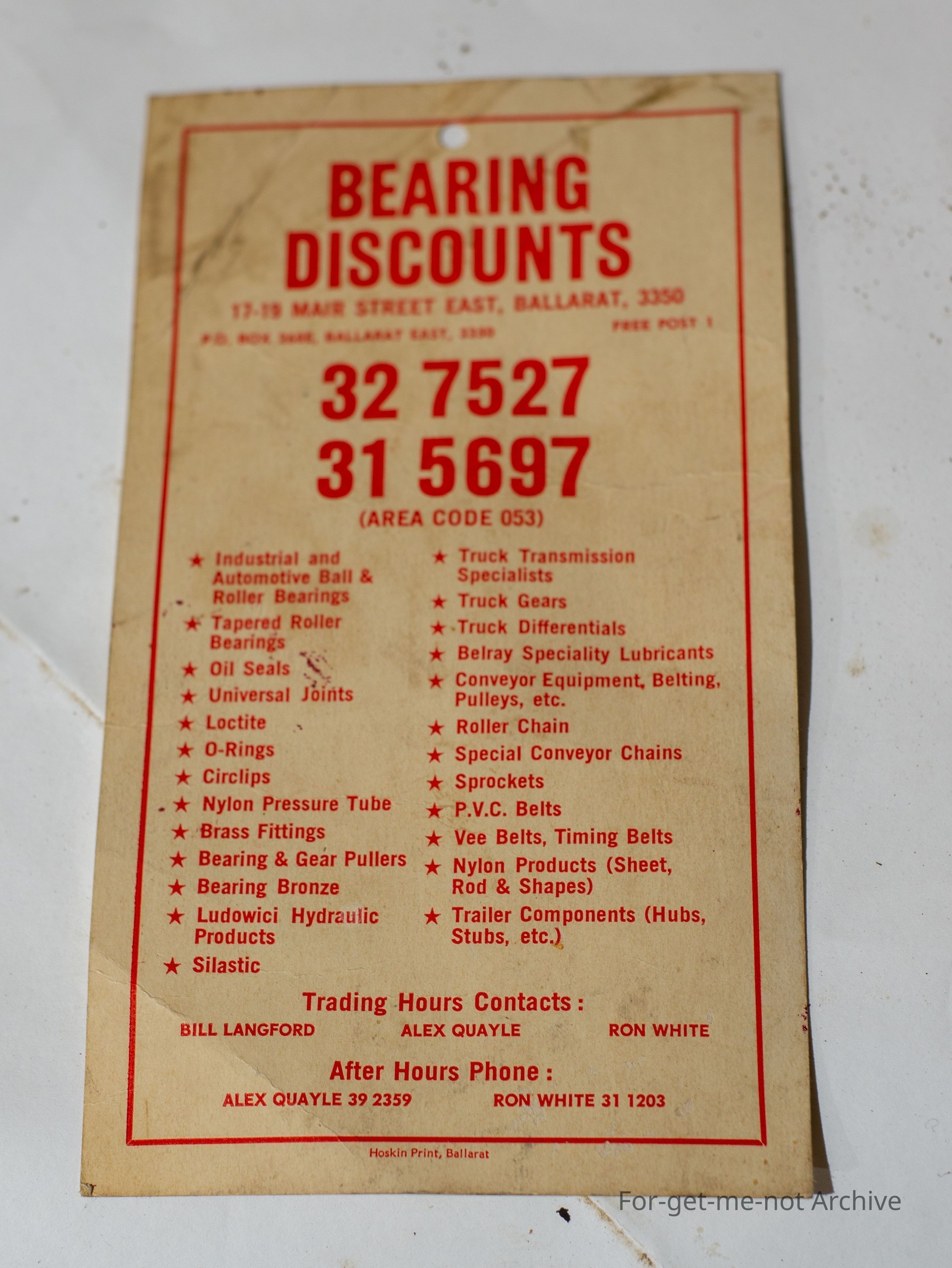 This is a Brochure for Bearing discounts in Ballarat, 1960's