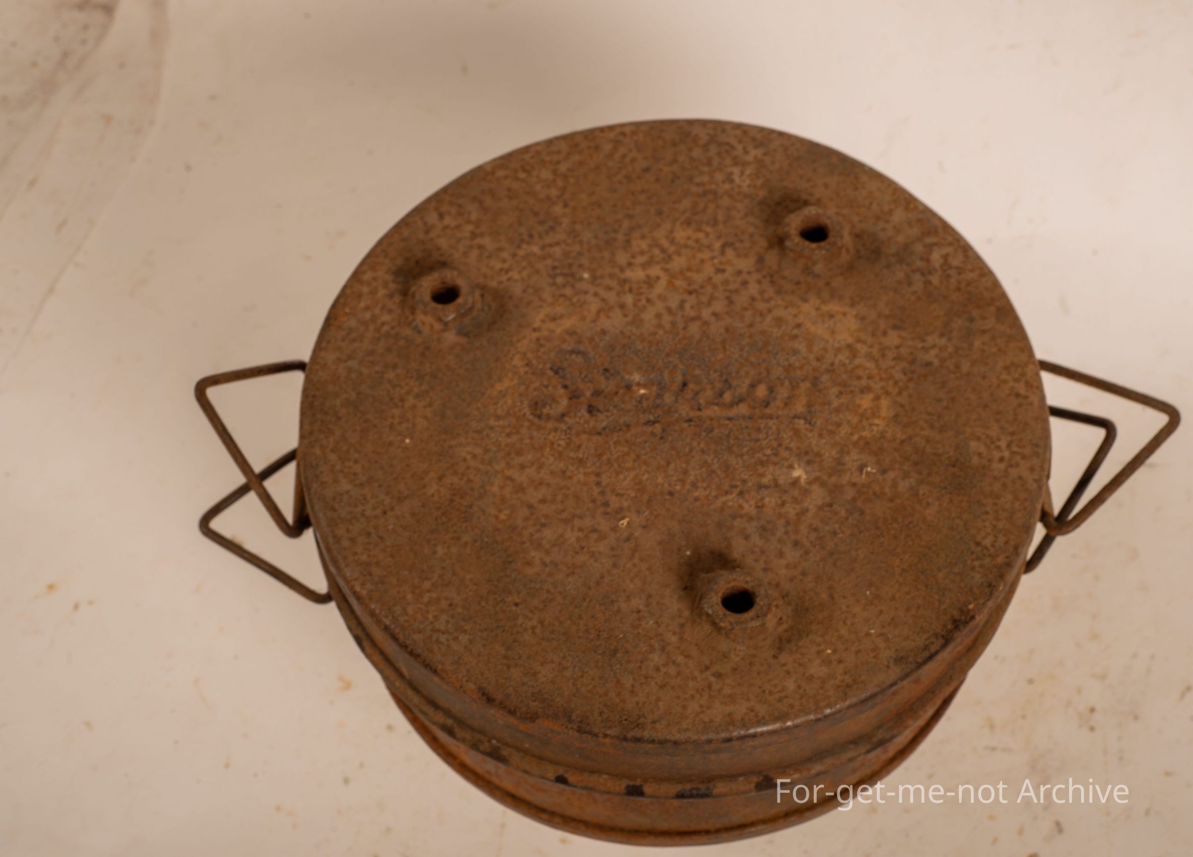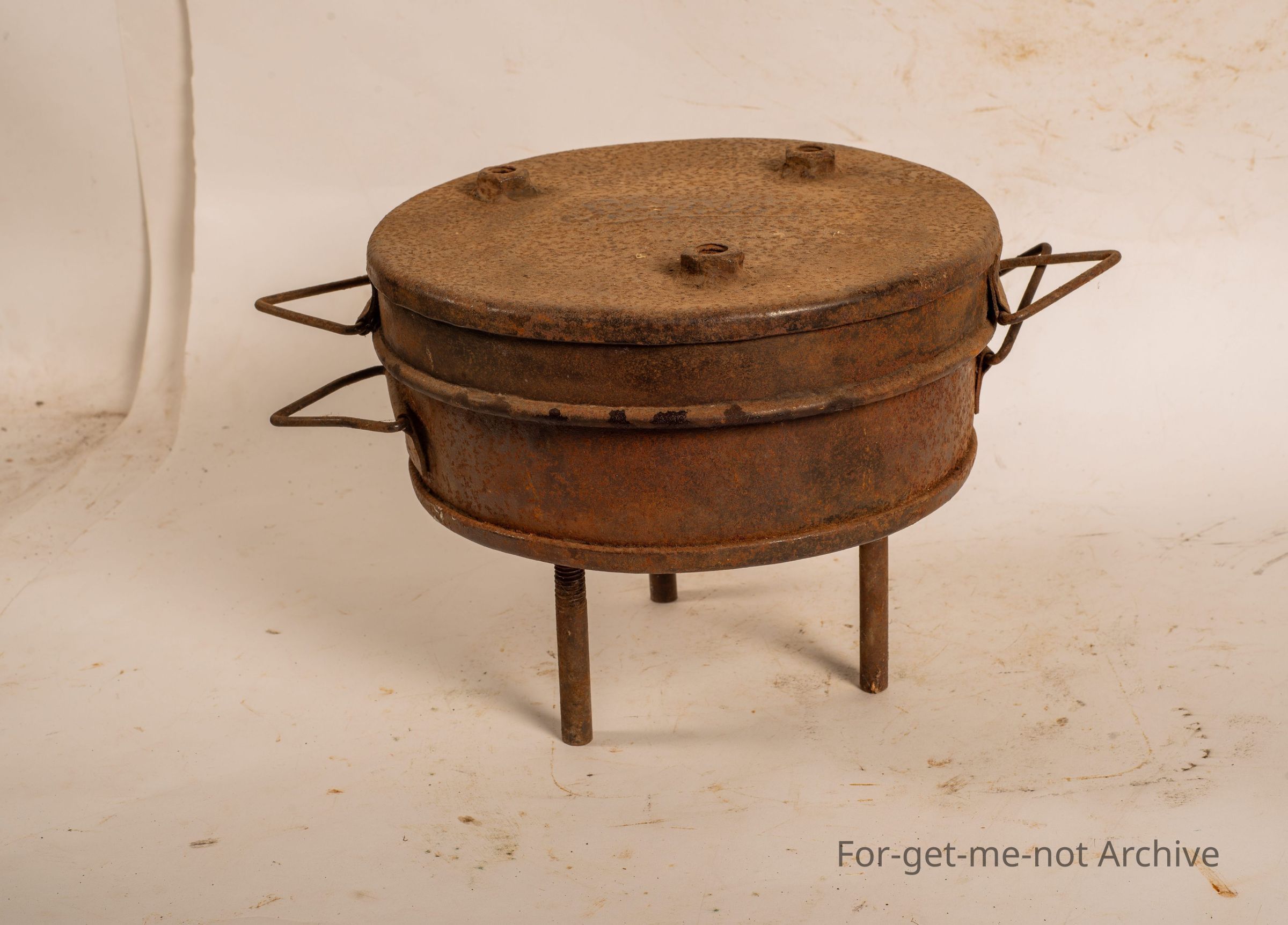 This is, one of the original Bedourie ovens, that were produced by Simpson and Son in Adelaide under the instruction of RM Williams. The lid has a beautiful stamping of Simpson. These ones are by far the Scarcest Bedourie ovens to find. The lid has been vandalized by putting welding 3 bolts into the top. The base is the same with 3 nuts welded on. The 3 bolts screw either into the base or the lid for further cooking comfort but are not original.Collection