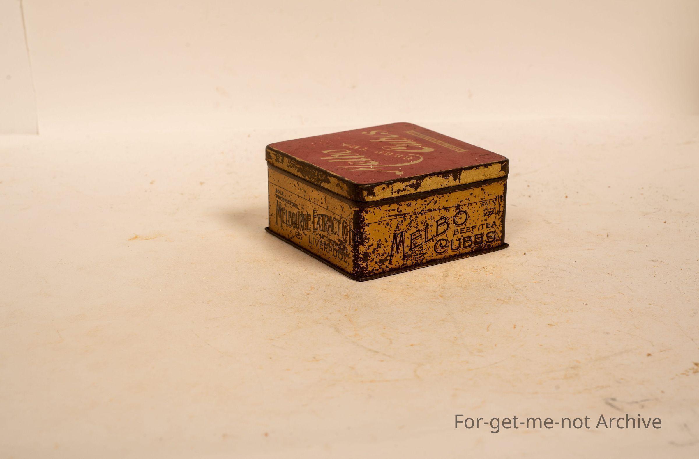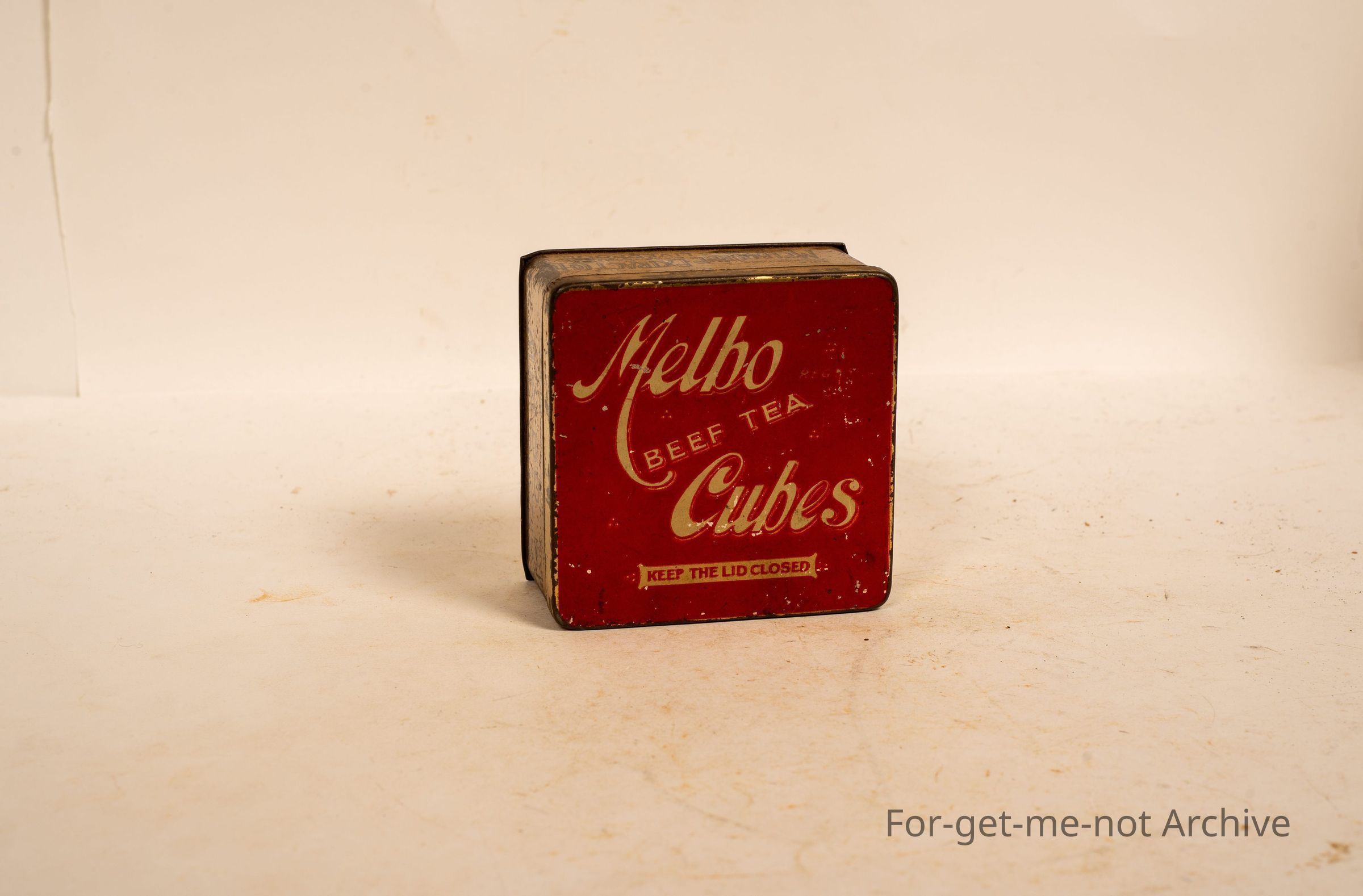 Is a tin of Melbo beef tea cubes. Melbo Extract Company, Liverpool. English tin, in very good order.