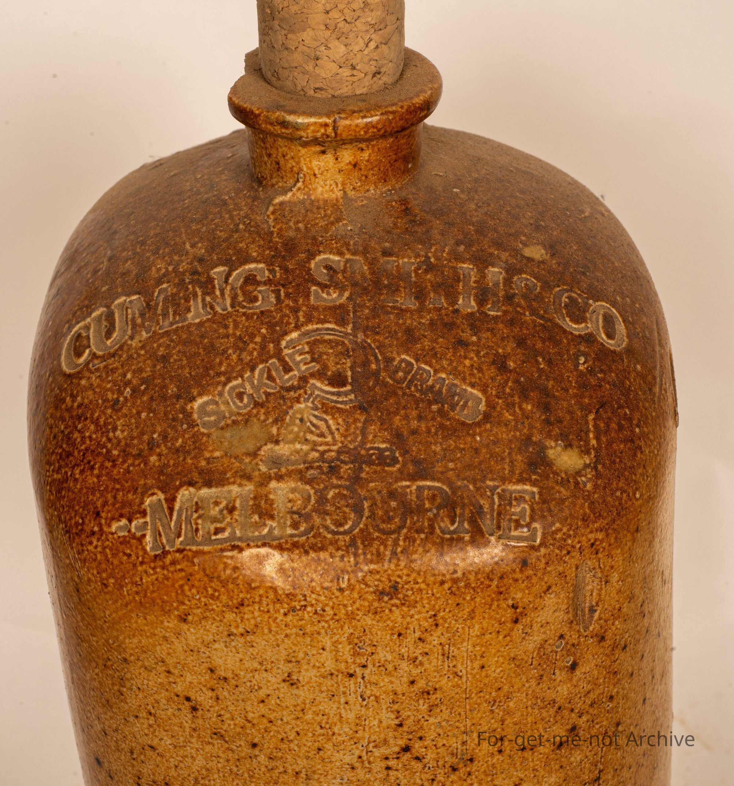 This one, bit unusual that it's in an almost rectangular shape done by a pet Bendigo Pottery, for Cumming Smith Sickle Brand Melbourne. Not many of these ones about. This one does have a chip to the lid. Other than that, it's quite nice.Collection