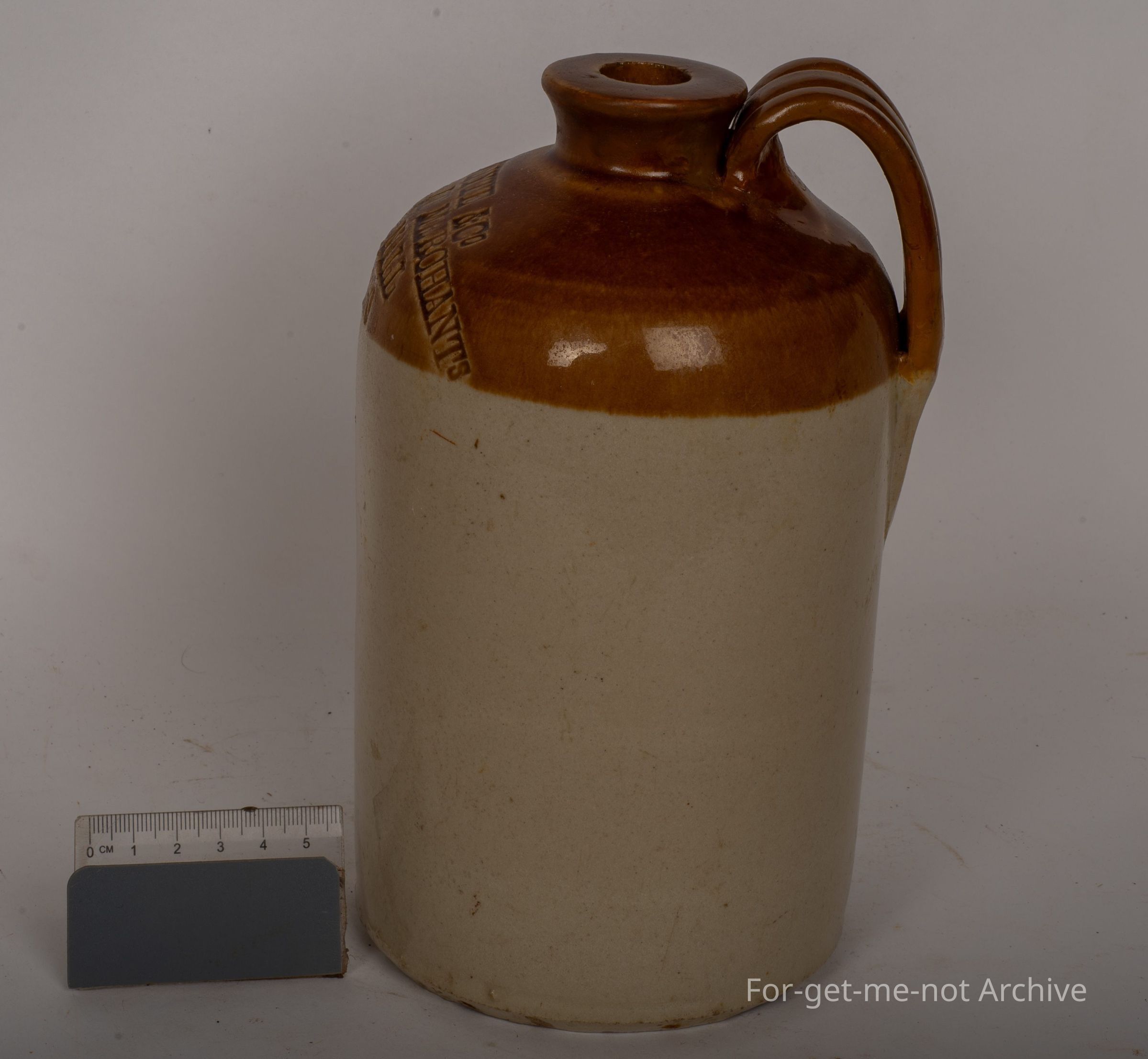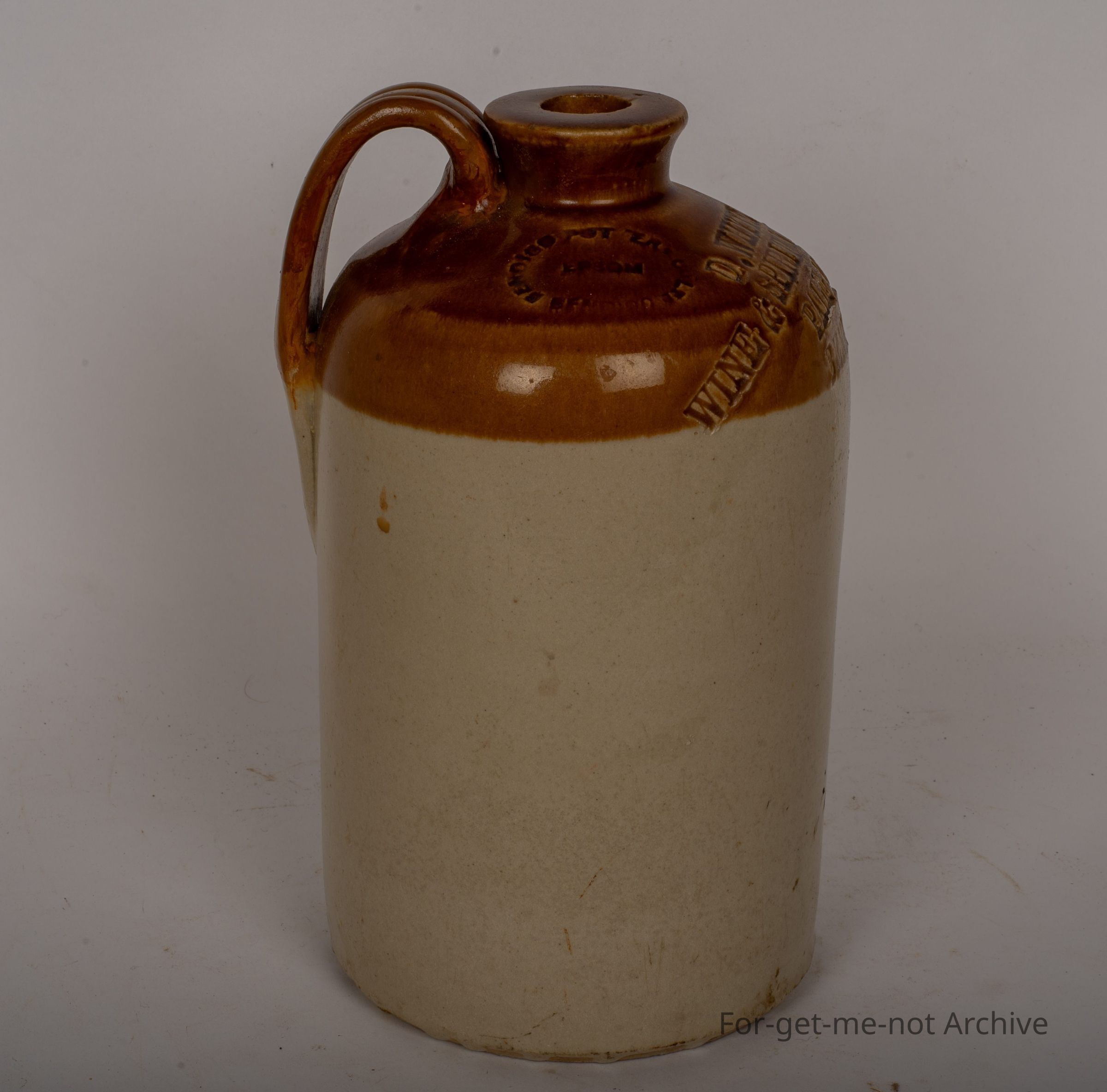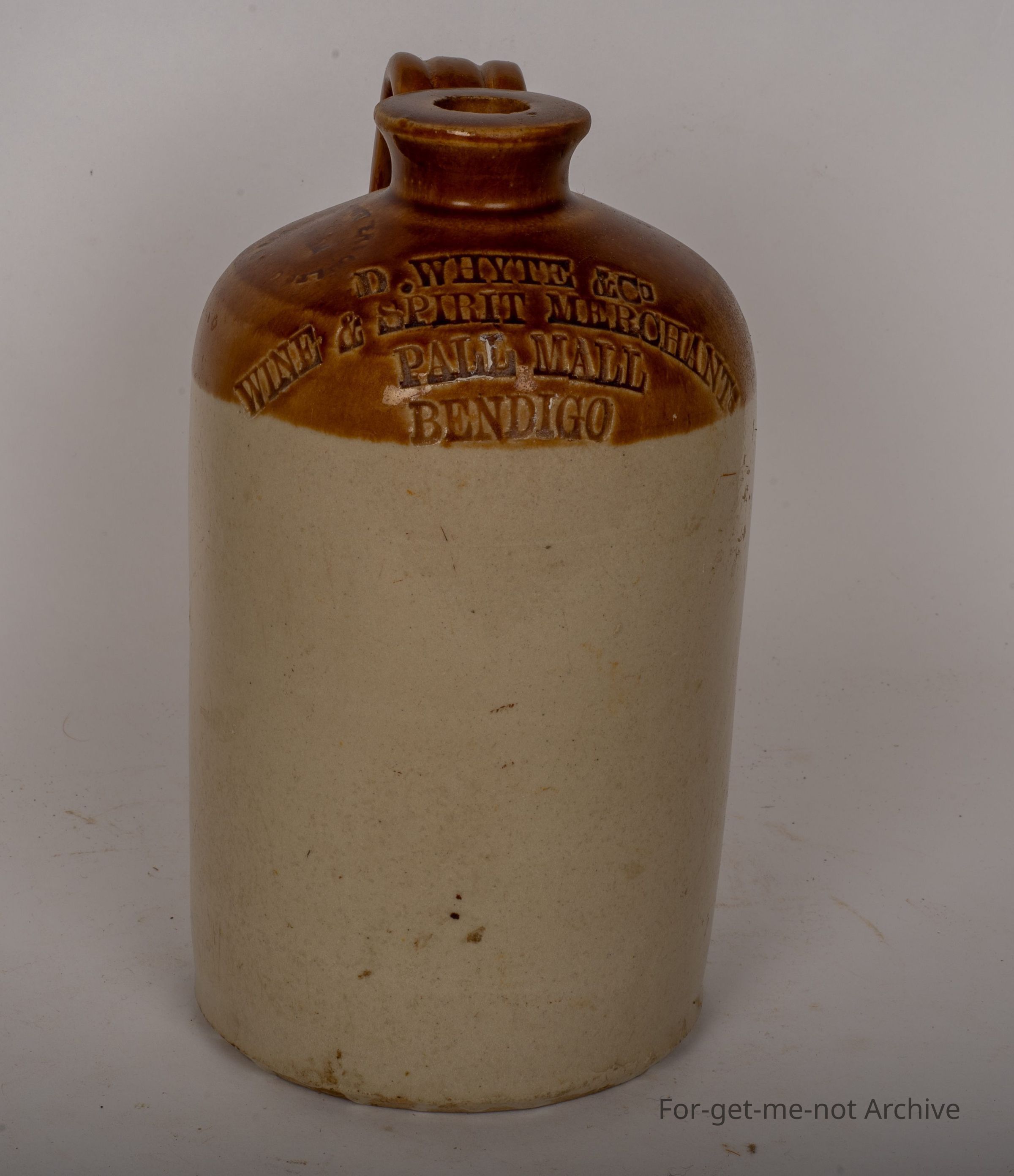 a quite small Debbie John from d white wine and spirit merchant Bendigo complete neck handle intact. It does have a pottery stamp, Bendigo Pottery Epsom