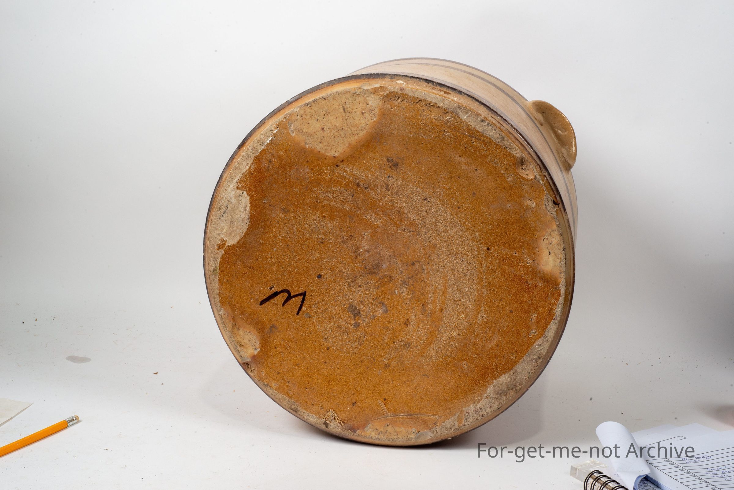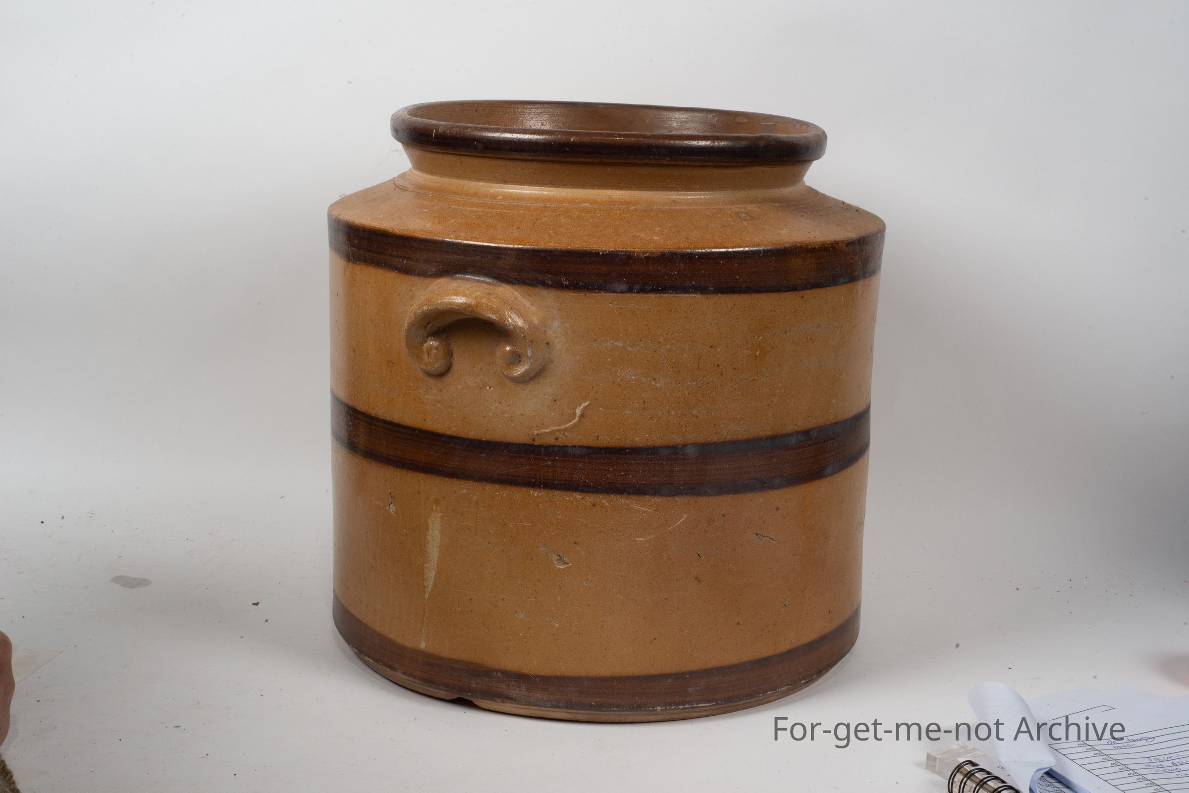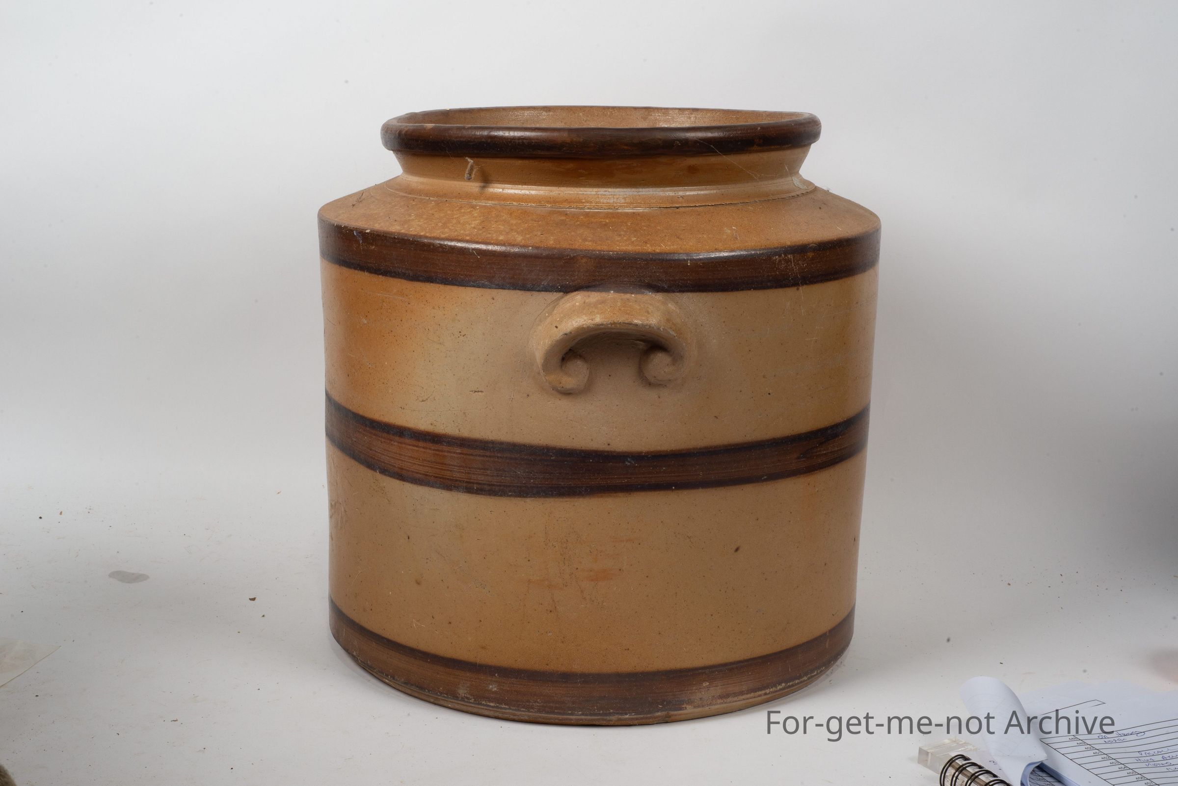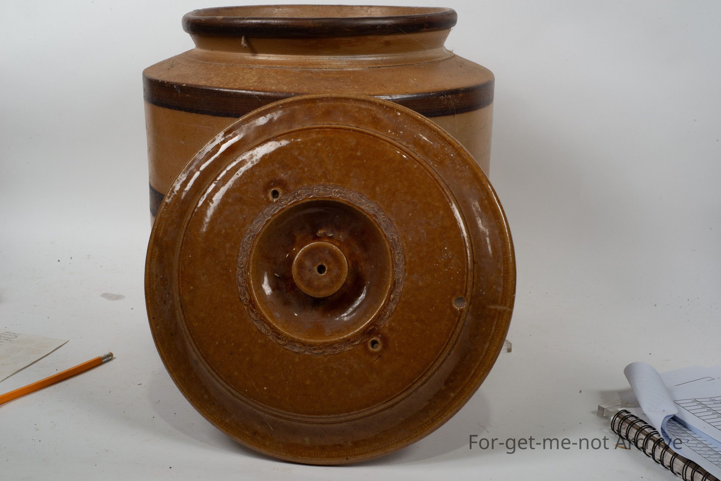 very large, early, striped bands, age approximately 1910, very good condition with lid