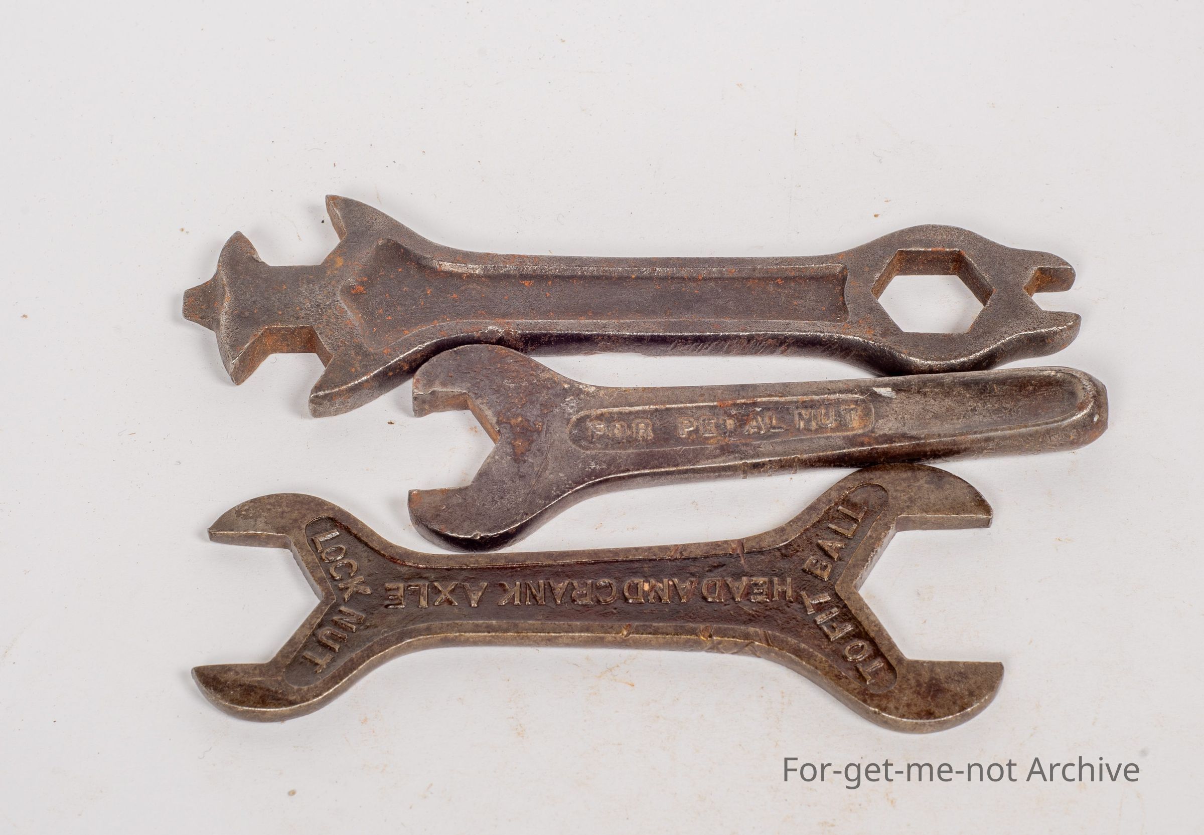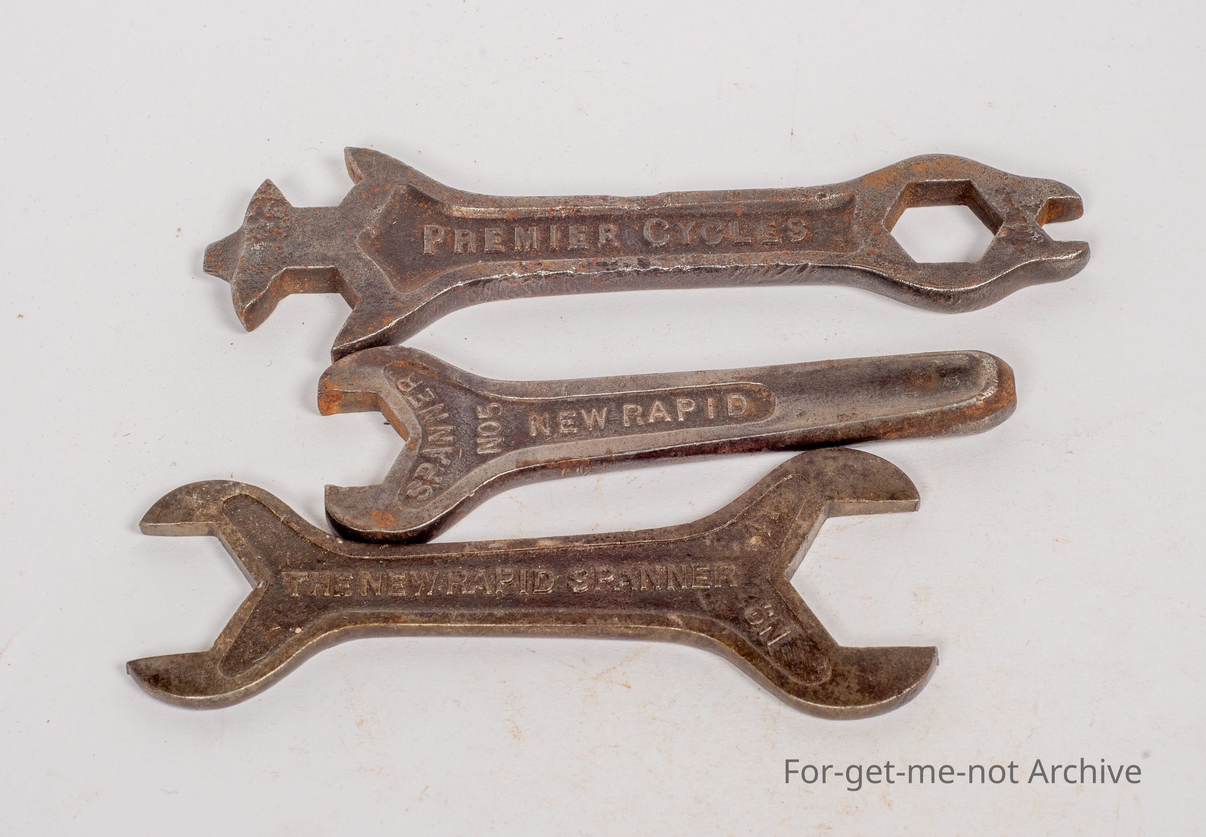 Bicycle spanners, Premier Cycles, early Melbourne bicycle shop. The other 2, New Rapid, from Birmingham, England, pre turn of the century. Very rare.