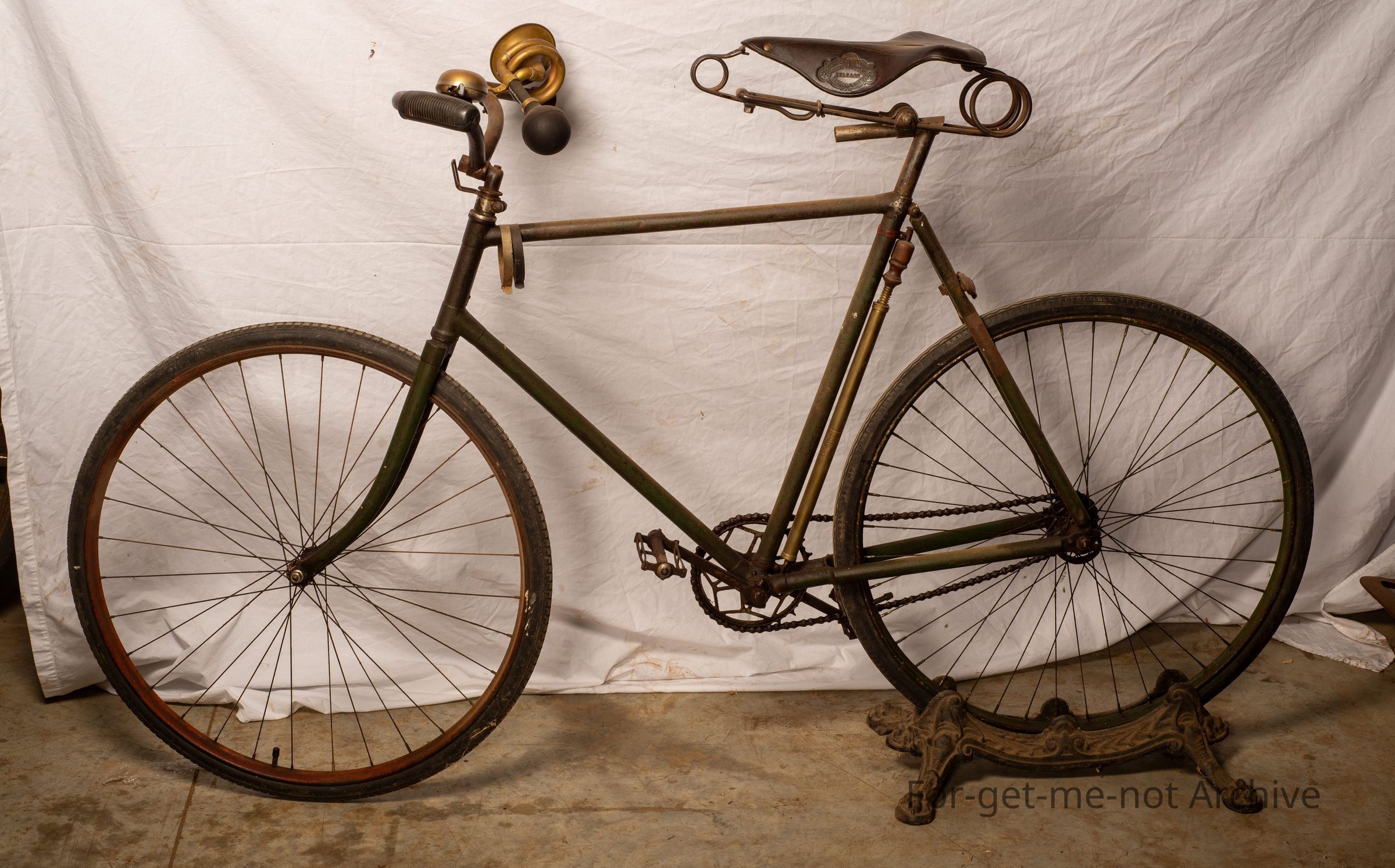 This is another early bike, round about 1901. One of the features of this bike are the American Handlebars, highly sought after in America. Adjustable either up or down. This bike is most likely of American, manufacturer. The 2 manufacturers of any consequence were Britain and America with bush bikes. This bike, once again, is in very good condition. A Brooks seat, made for Australian road comfort. This bike also has a pair of the, Dunlop thorn proof tires to resist the bindi eye.Collection