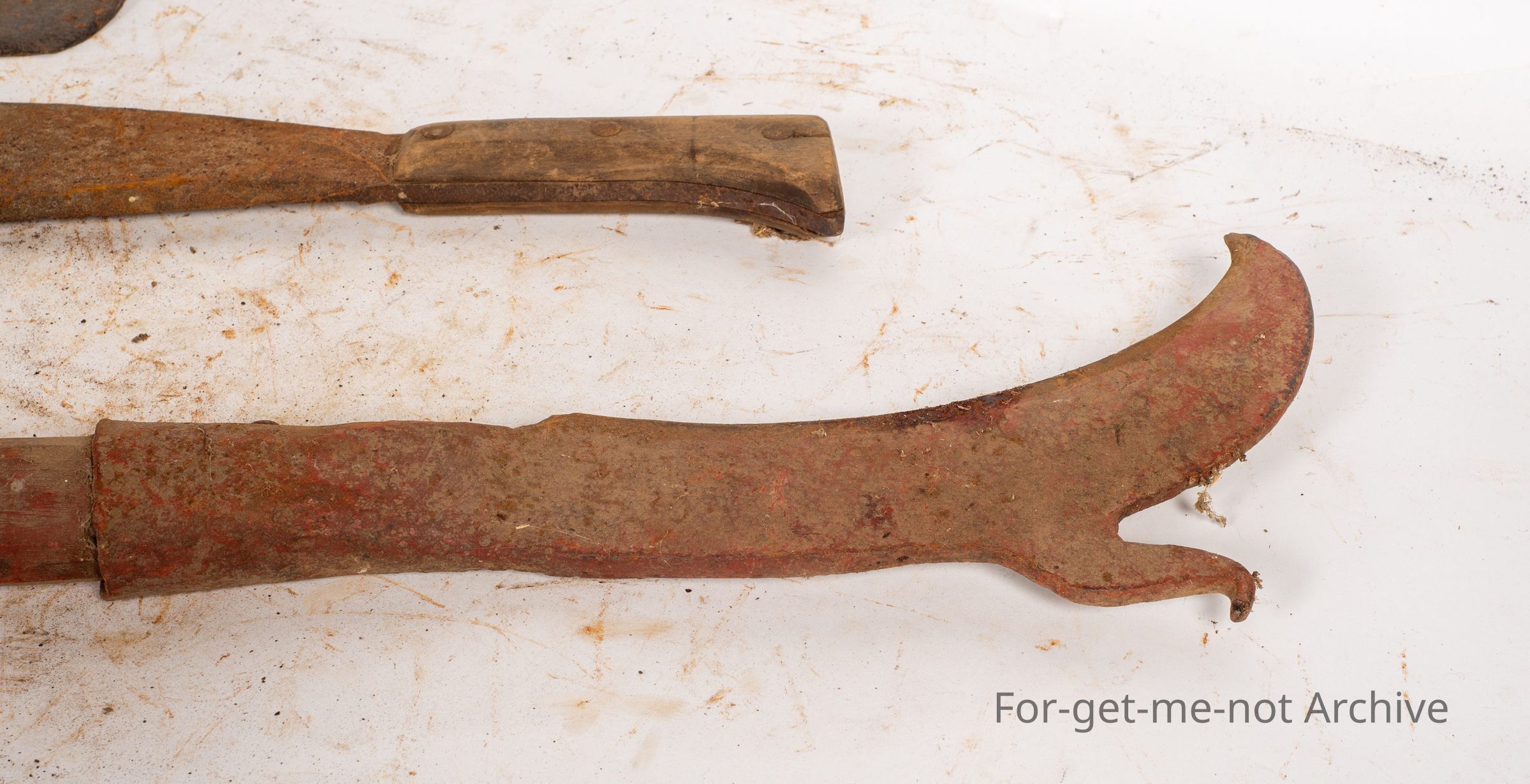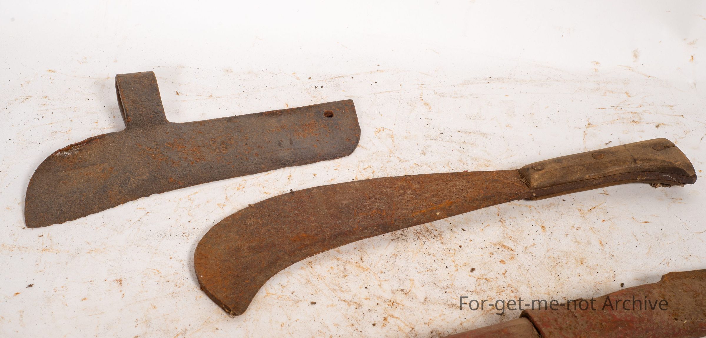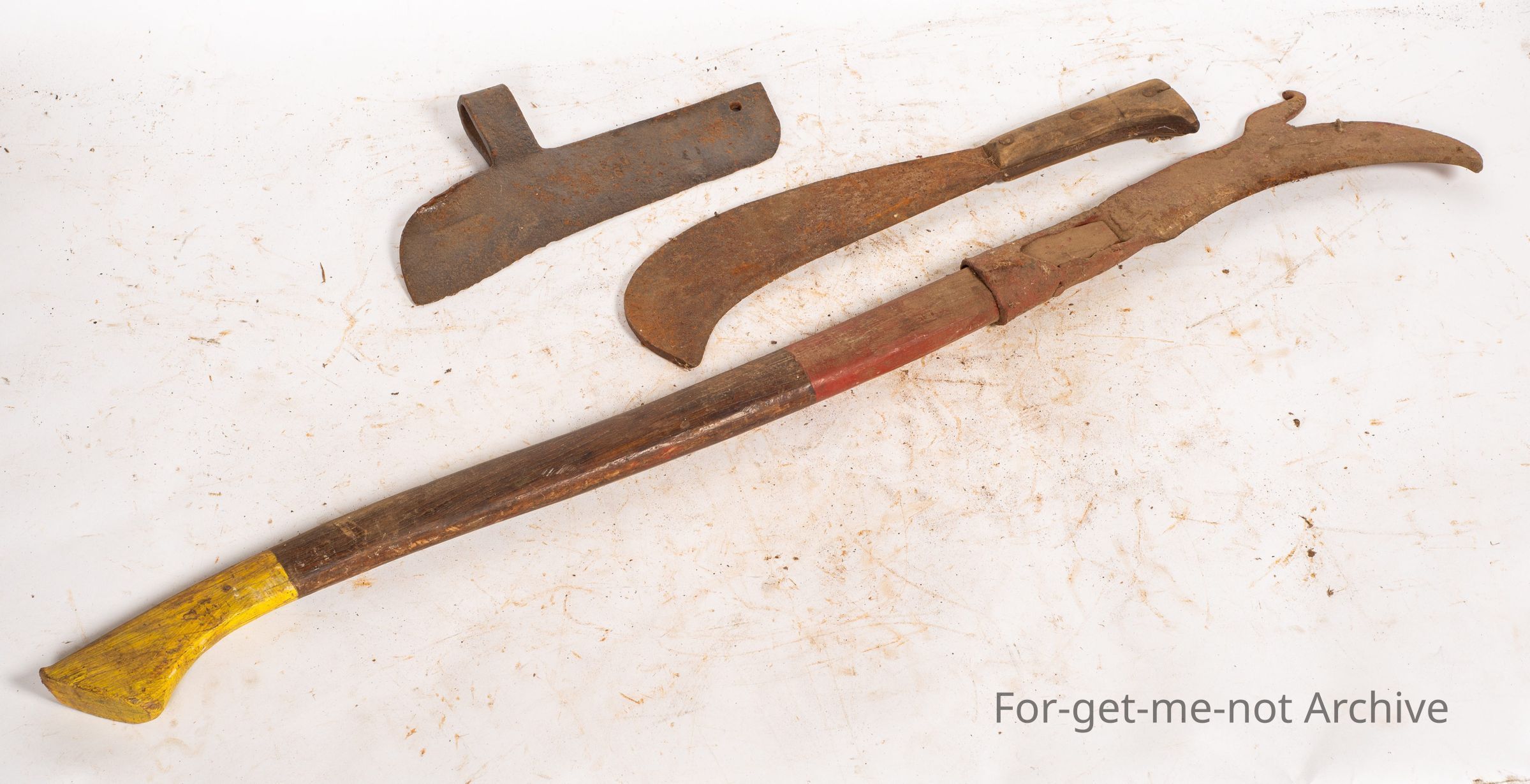 The tool with the long handle, wooden handle, is a tool from Scotland. It's called a hedge trimmers, tool. The other 2, one fits in as a general purpose slasher cum splitter. The third one is a Bill Hook.Collection
