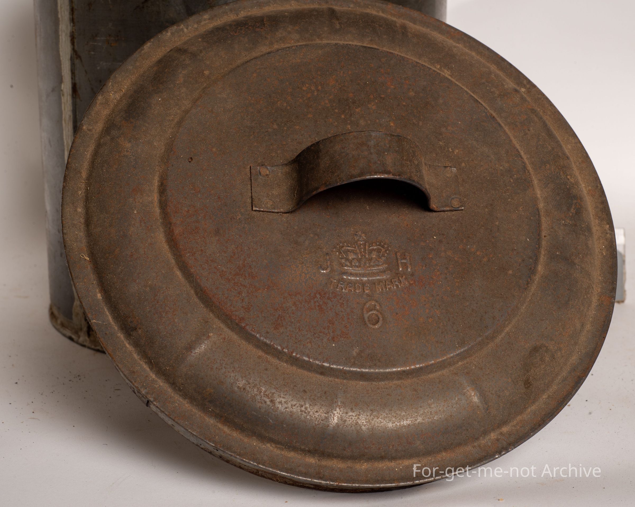 This is a 6 pint billy stamped J.H. and the king's crown in between as a trademark. This is one of the earliest stamps for John Holloway Ballarat. This billy is in excellent condition, very hard one to find. Wonderful that it's got that early stamp.Collection