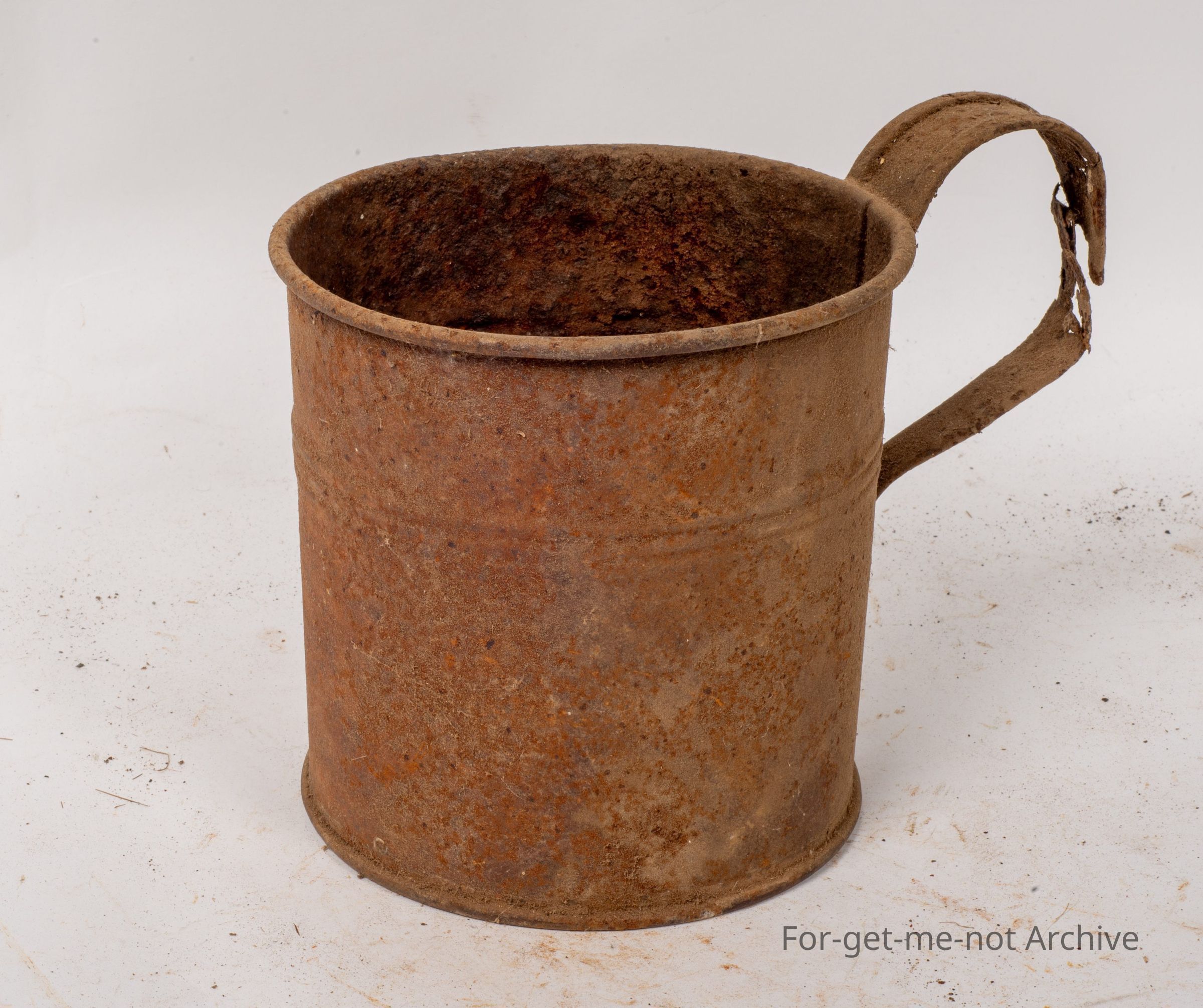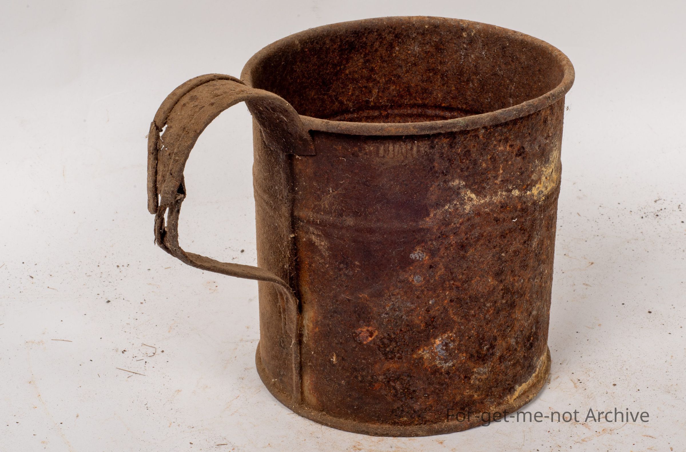 A little tin, homemade, like a Billy can jug. This has been out in the weather a lot. It's a quart size, I think, it quart. So it's been a production model but in poor condition.Collection