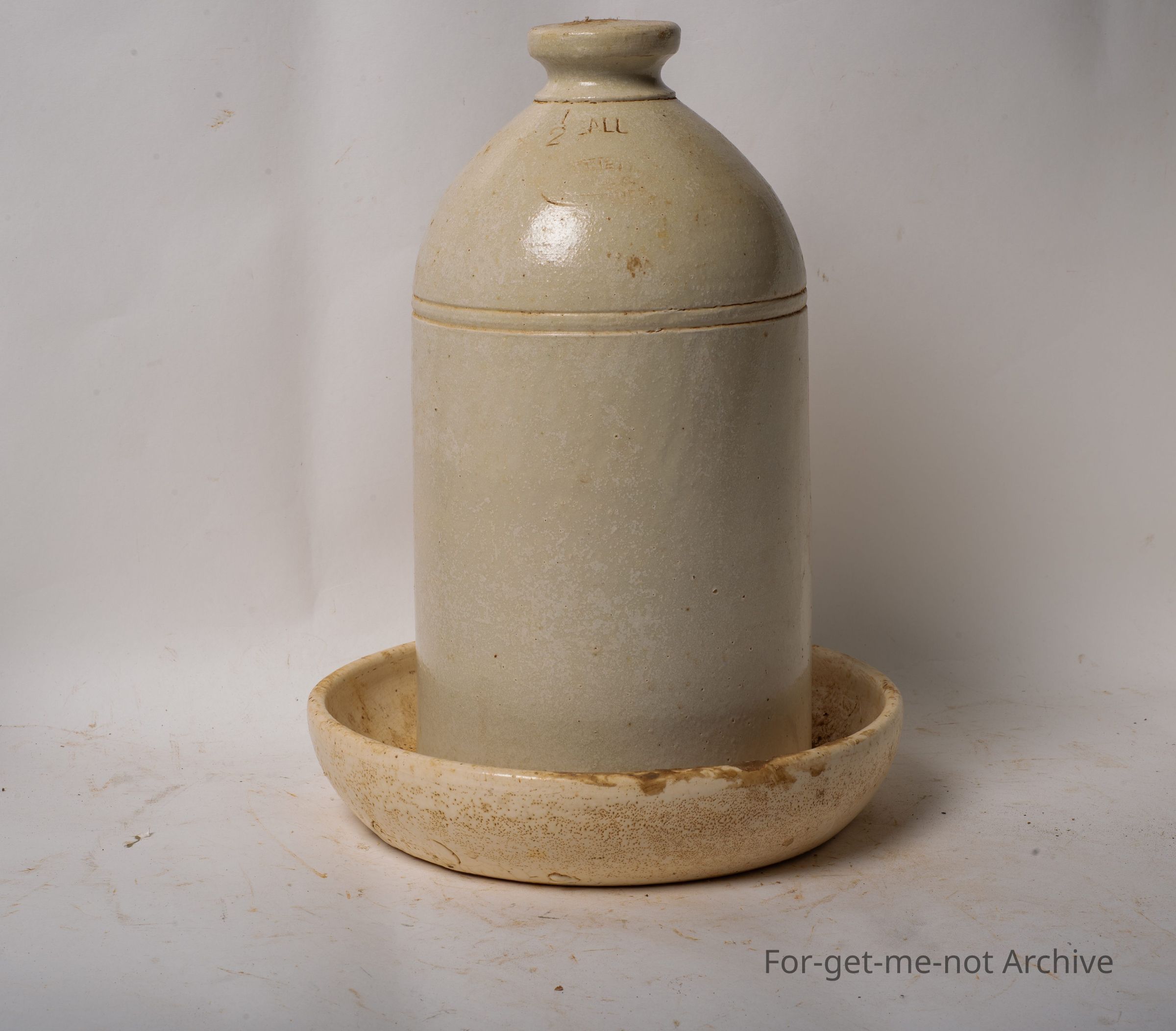 Is a ceramic bird feeder, half gallon capacity. This is in very good order with a white, glaze on it. This has been wheel thrown, stamped, Bennett, South Australia. Yeah. Half gallon there. That's what it says up here. Yeah. This one has the source of base as well, which holds water to make this work.Collection