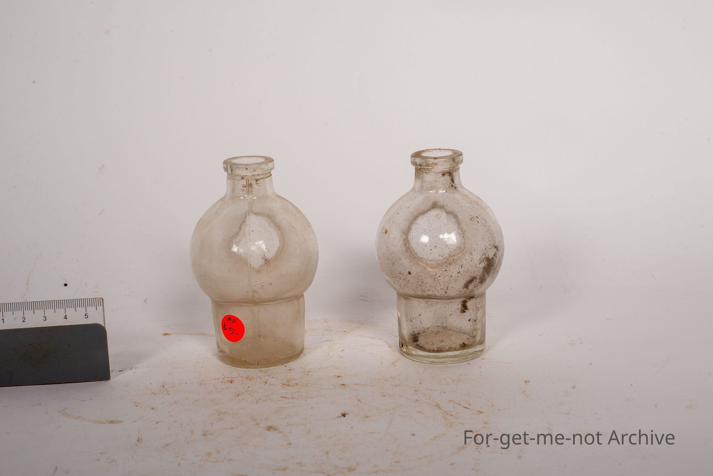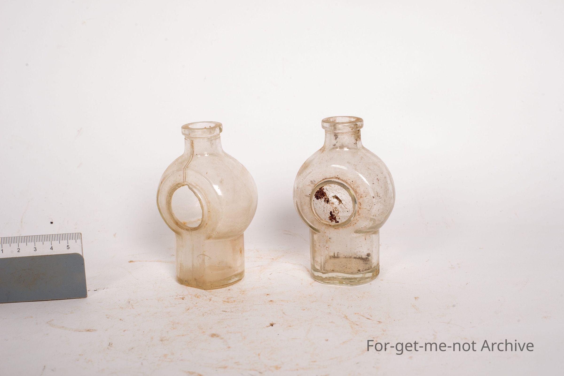 These are 2 glass bird feeders that would fit into a bird cage, both perfect condition, lovely different little pieces, a hole for the bird to put its head in to get a drink.
