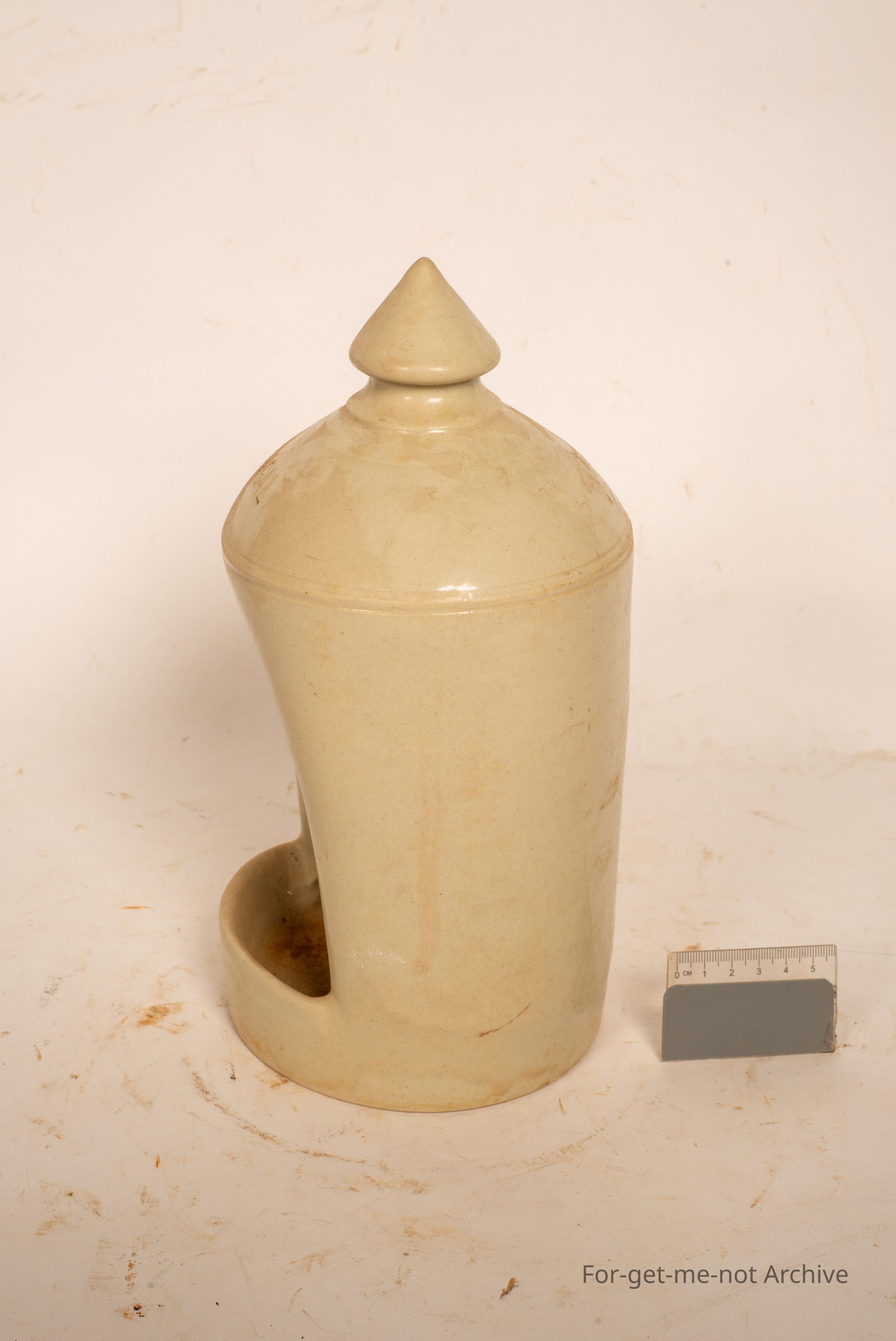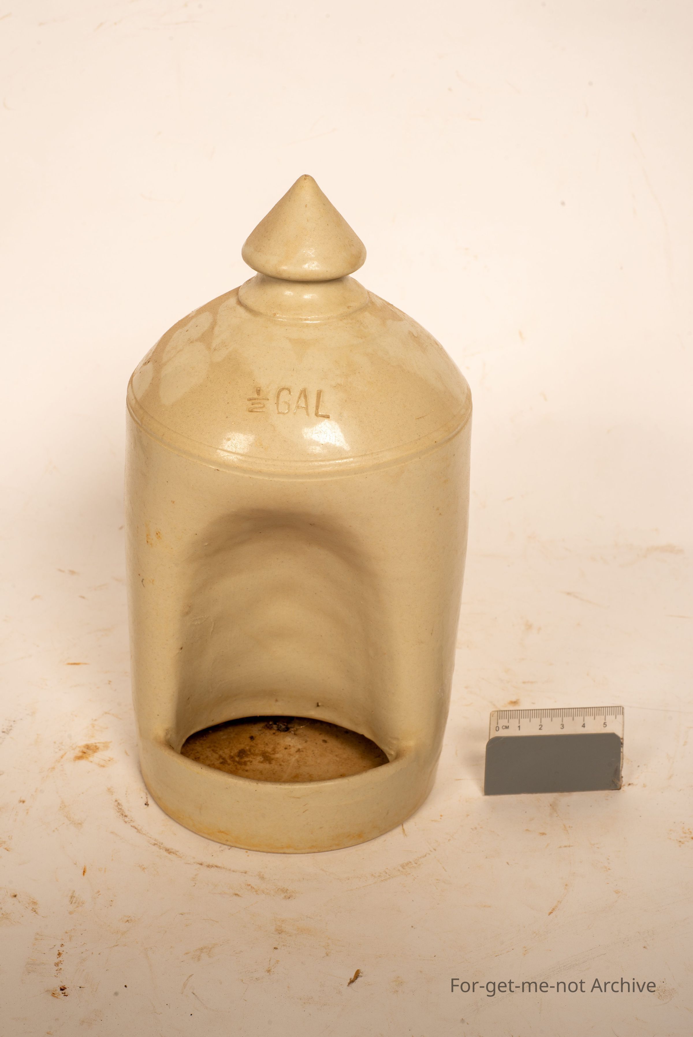 This is a stoneware bird feeder in perfect condition. This one is stamped Fowler Sydney, half gallon capacity, A beautiful little finial built into the top. No cracks. No chips.