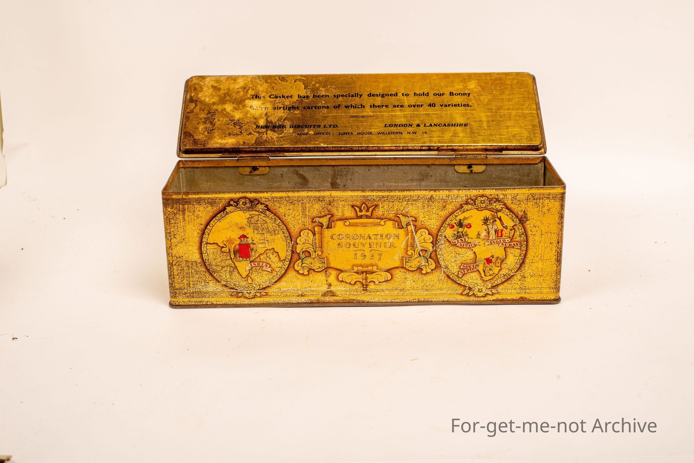 Coronation Souvenir 1937 King George the VI , Bee Bee Biscuits London large tin in Good condition