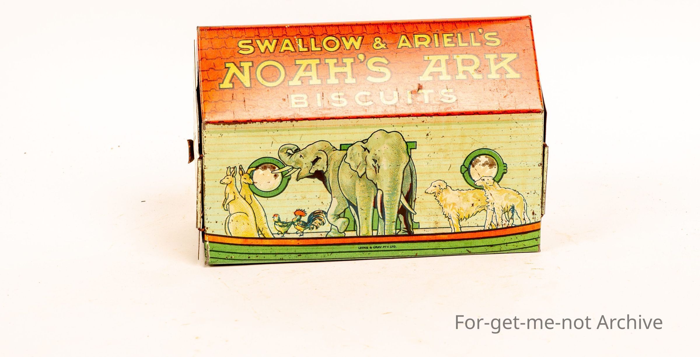 Swallow and Ariell, Noahs Ark tin in shape of, Biscuits Leckie and Gray manufacture of tin, excellent order