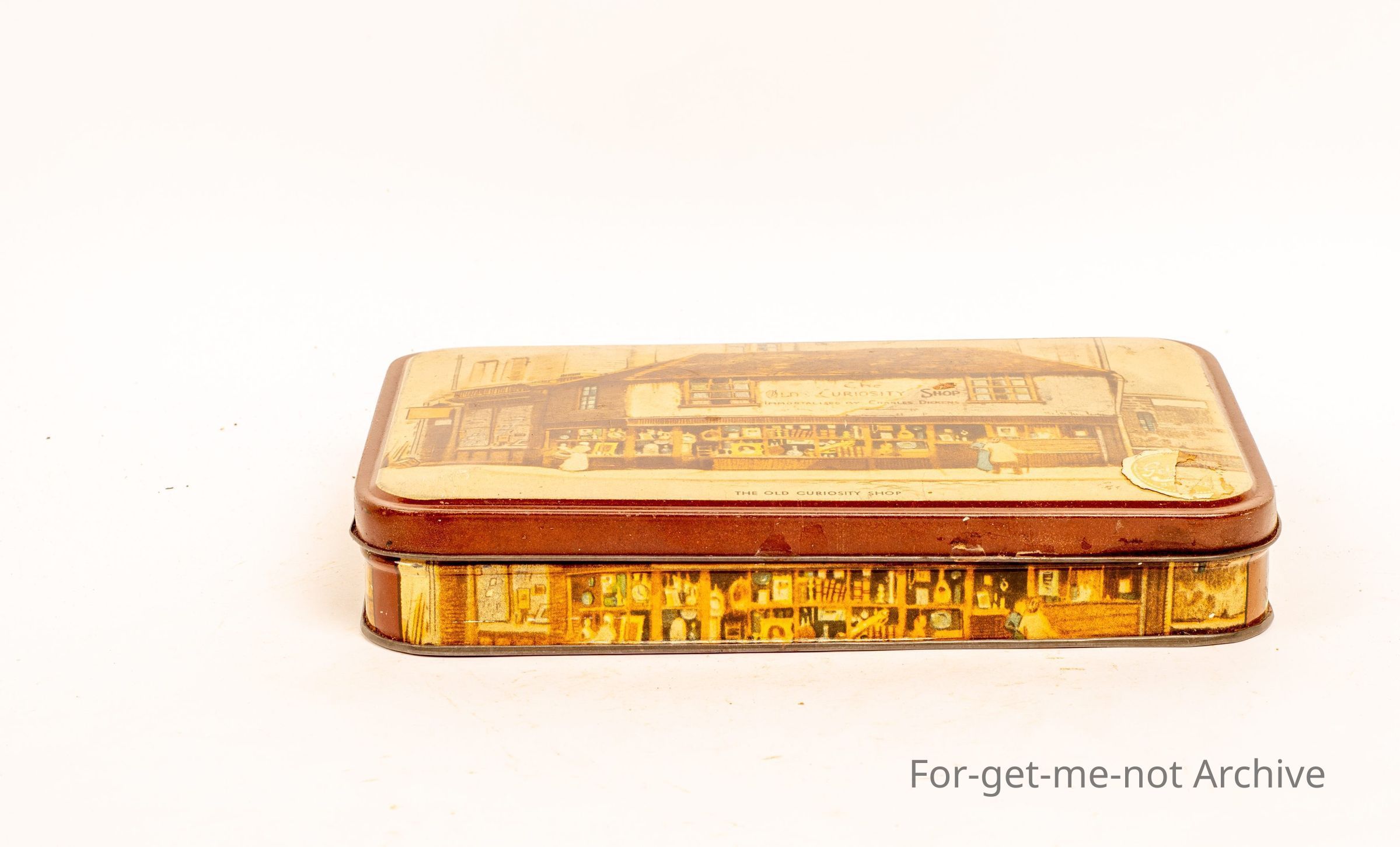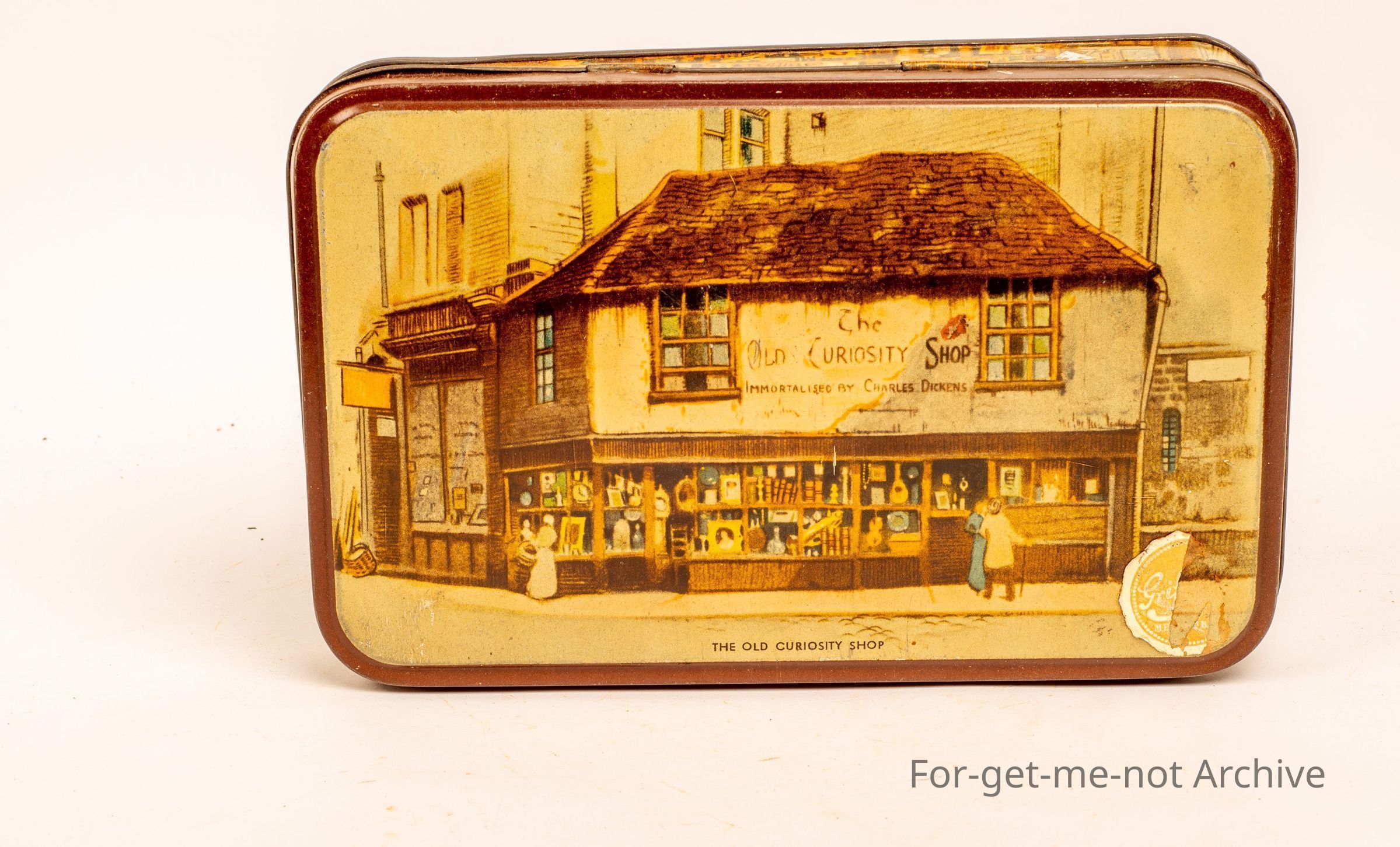 Griffiths tin featuring the Olde curiosity shop, Charles dickens , probably and English manufactured tin