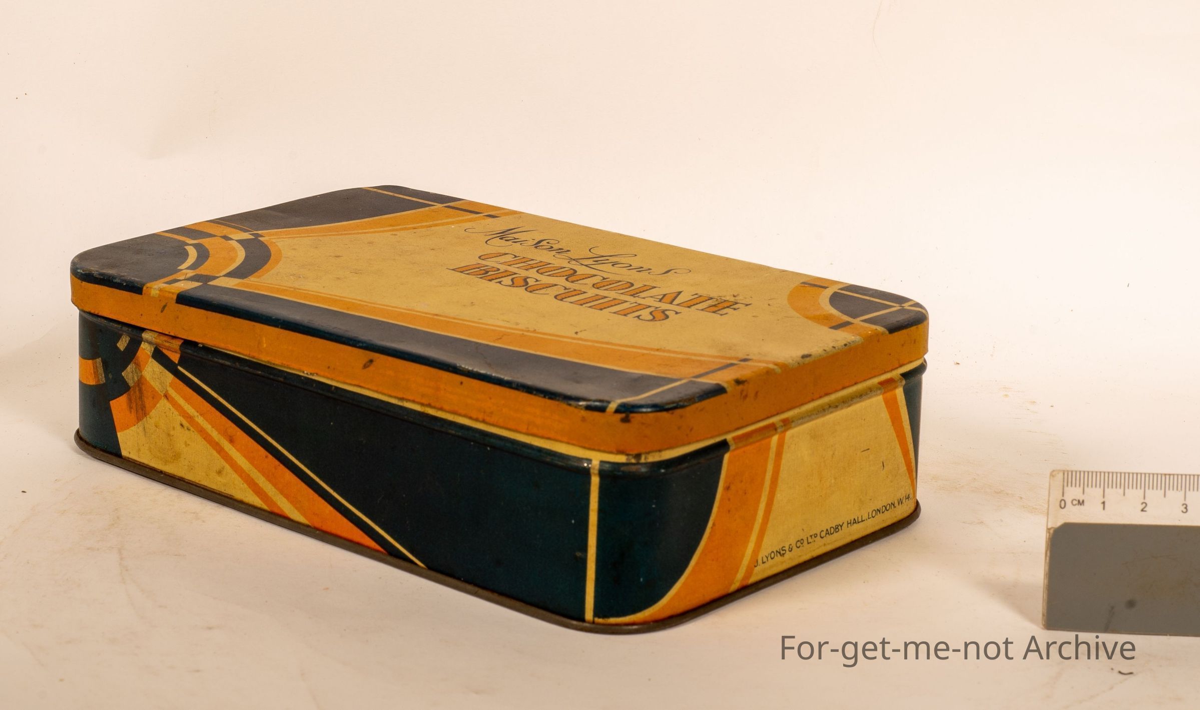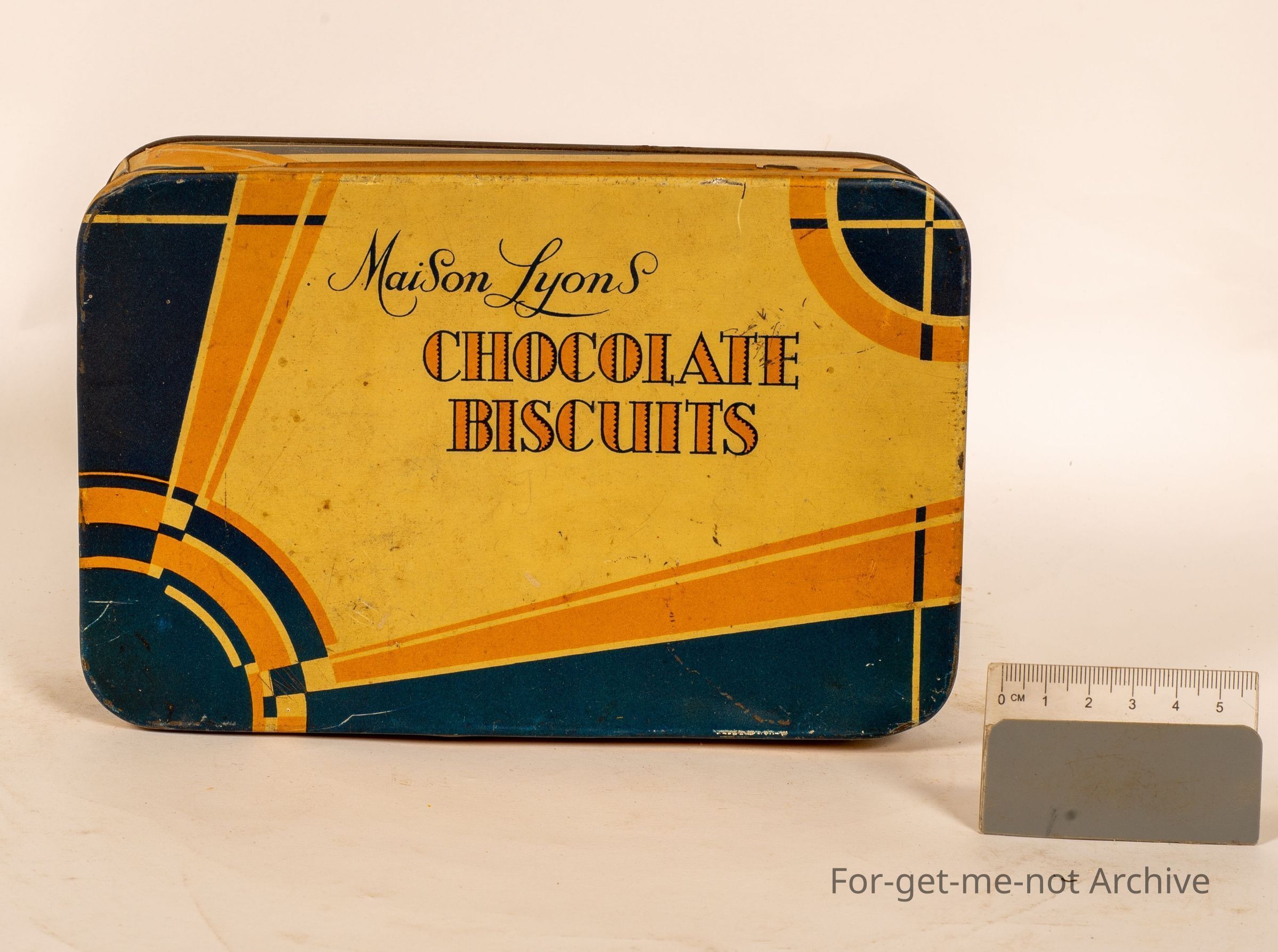 The chocolate tin. Maison Lyons Chocolate Biscuits. This is an English gin from Lyons at London. Quite a nice, deco design.
