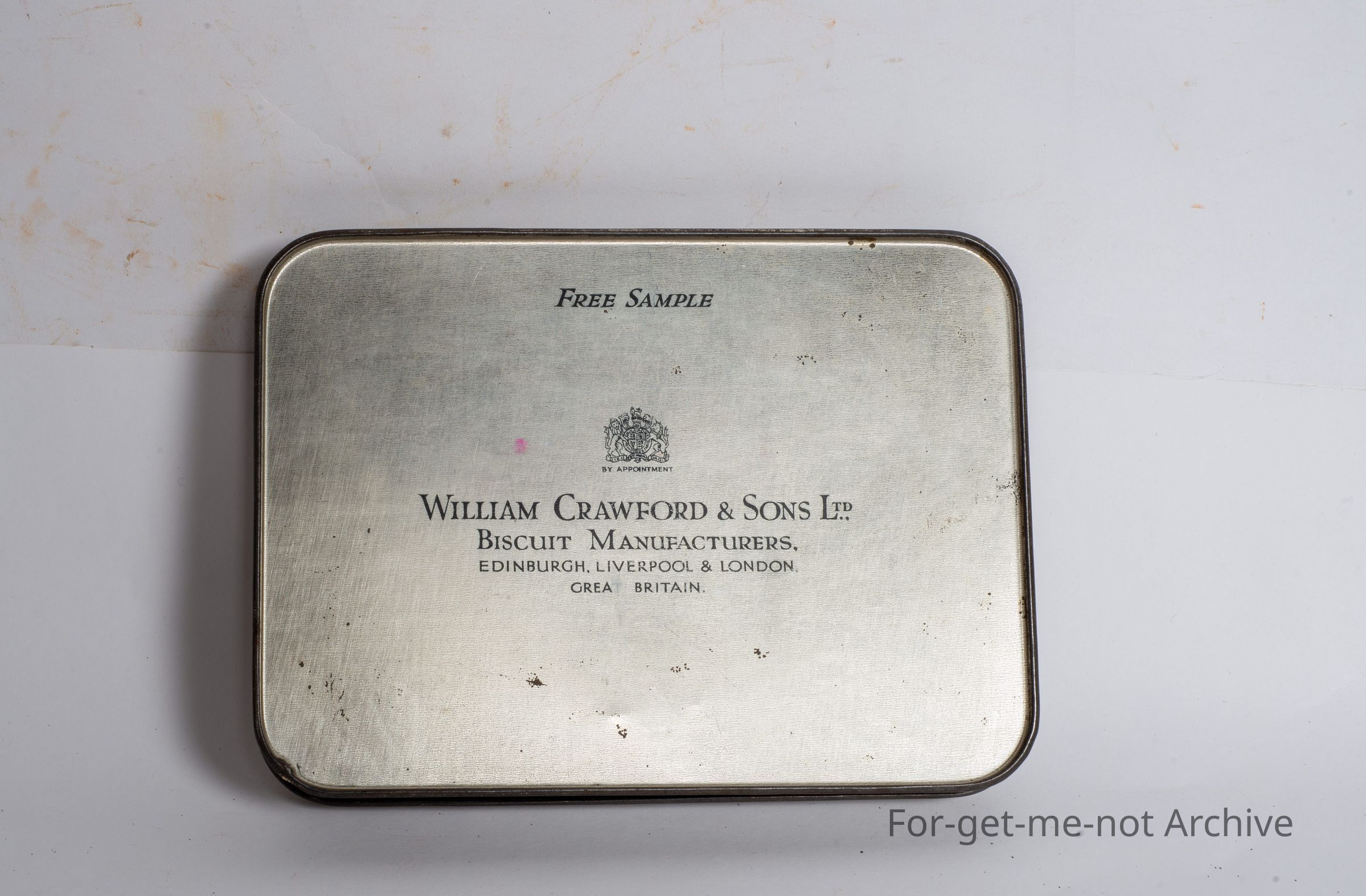 This is a Sample tin, free sample from William Crawford and Sons Biscuit Manufacturers, Edinburgh, Liverpool and London. In very good order, the image of some type of parrot on the front, rather a large tin for a sample tin.Collection