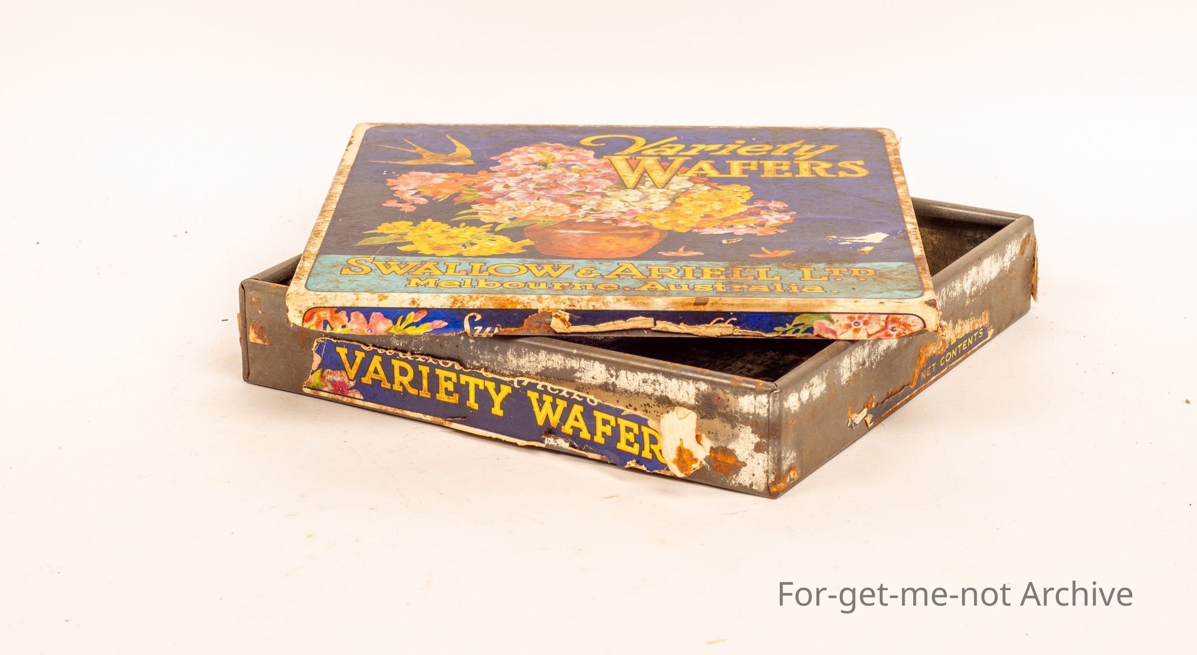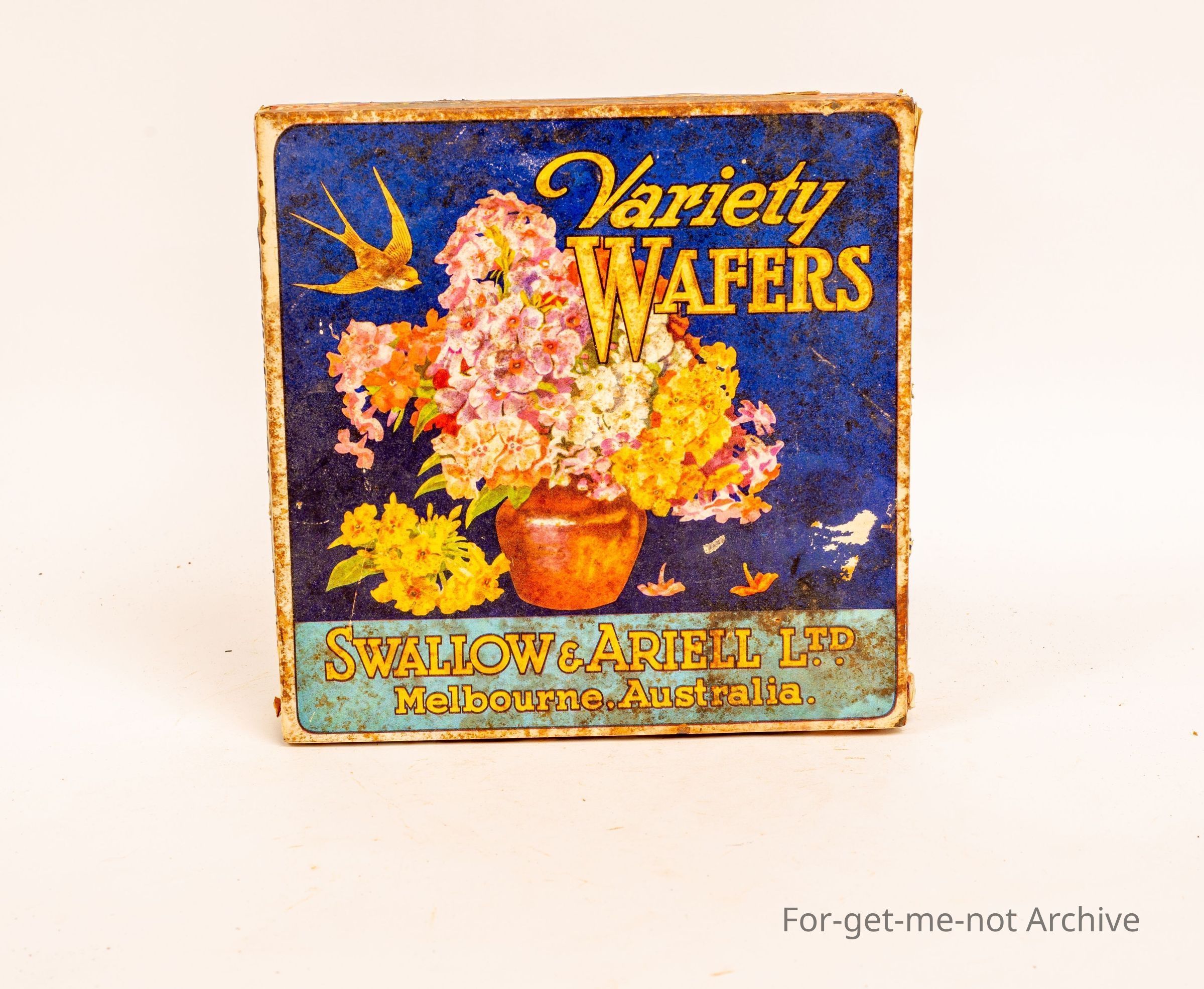 Swallow and Ariell, Variety Wafers ( Melbourne ) paper label in good cond., simple tin
