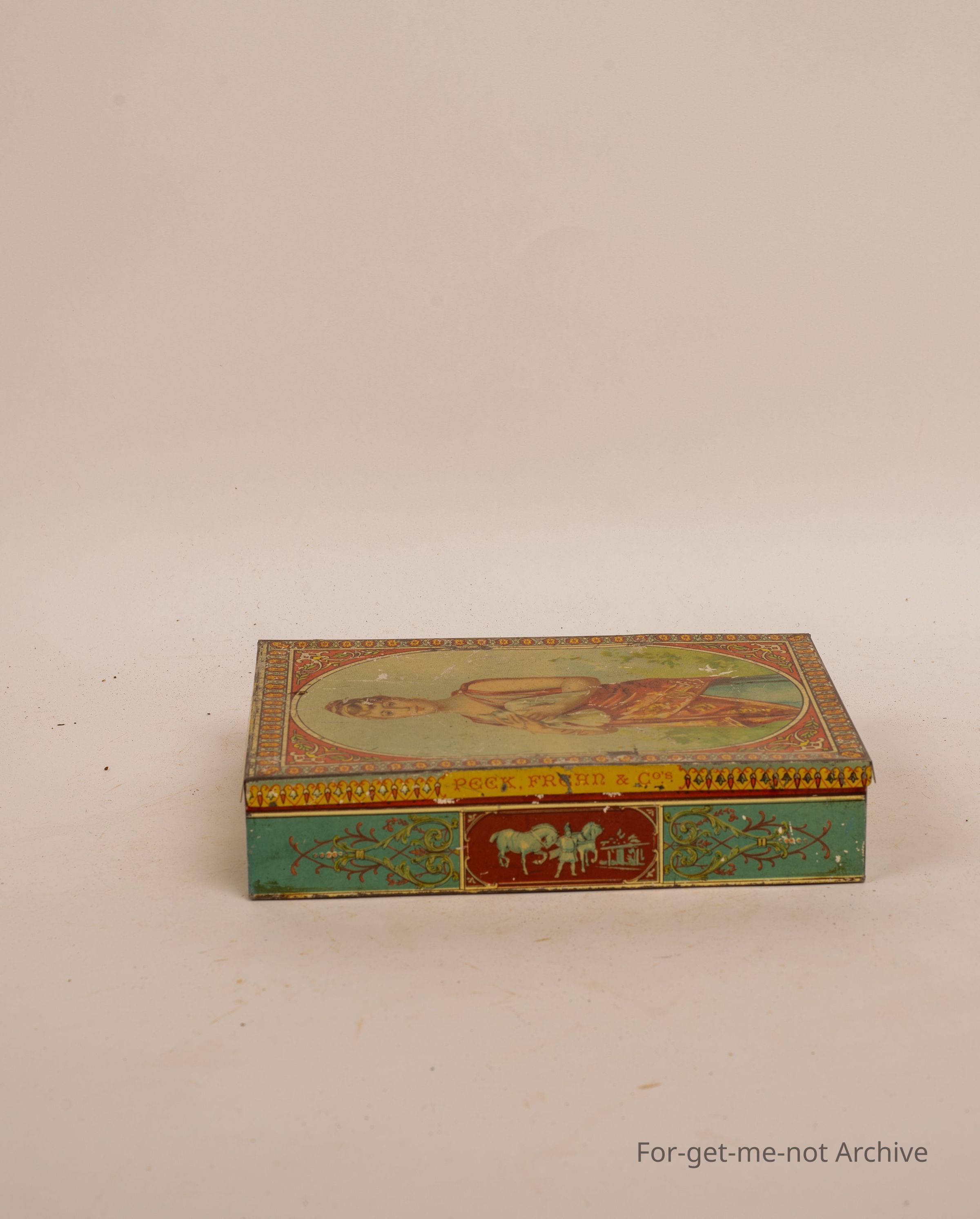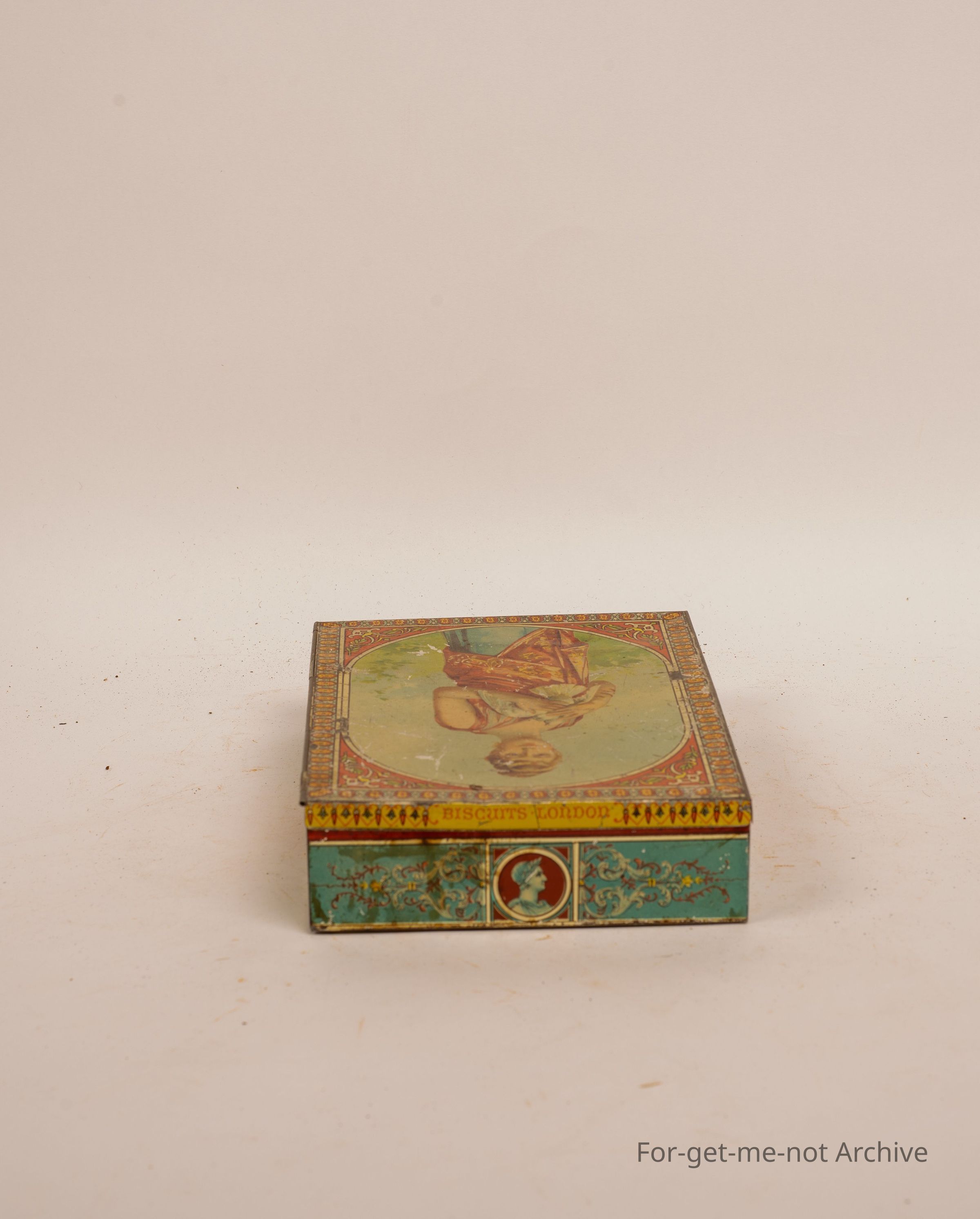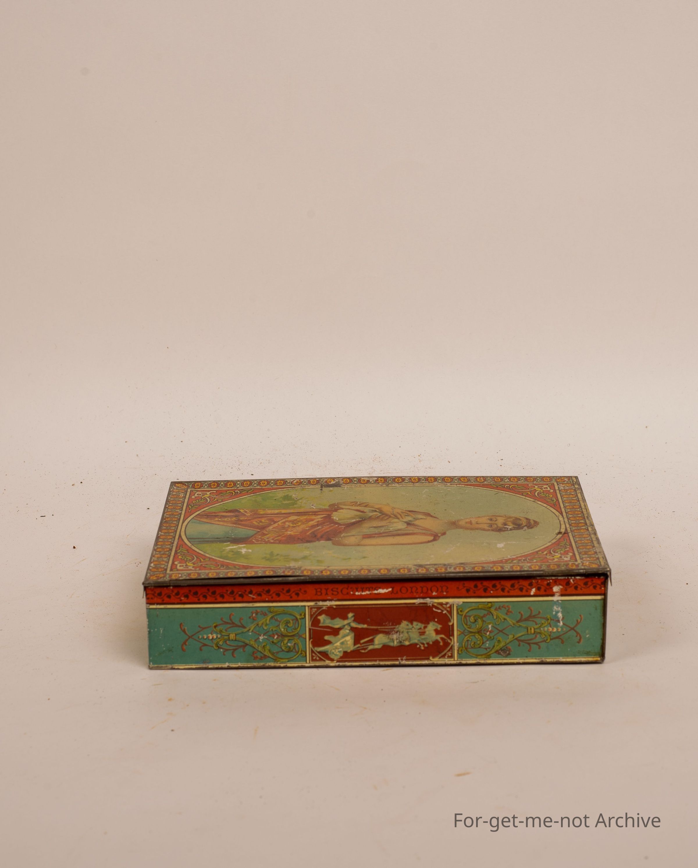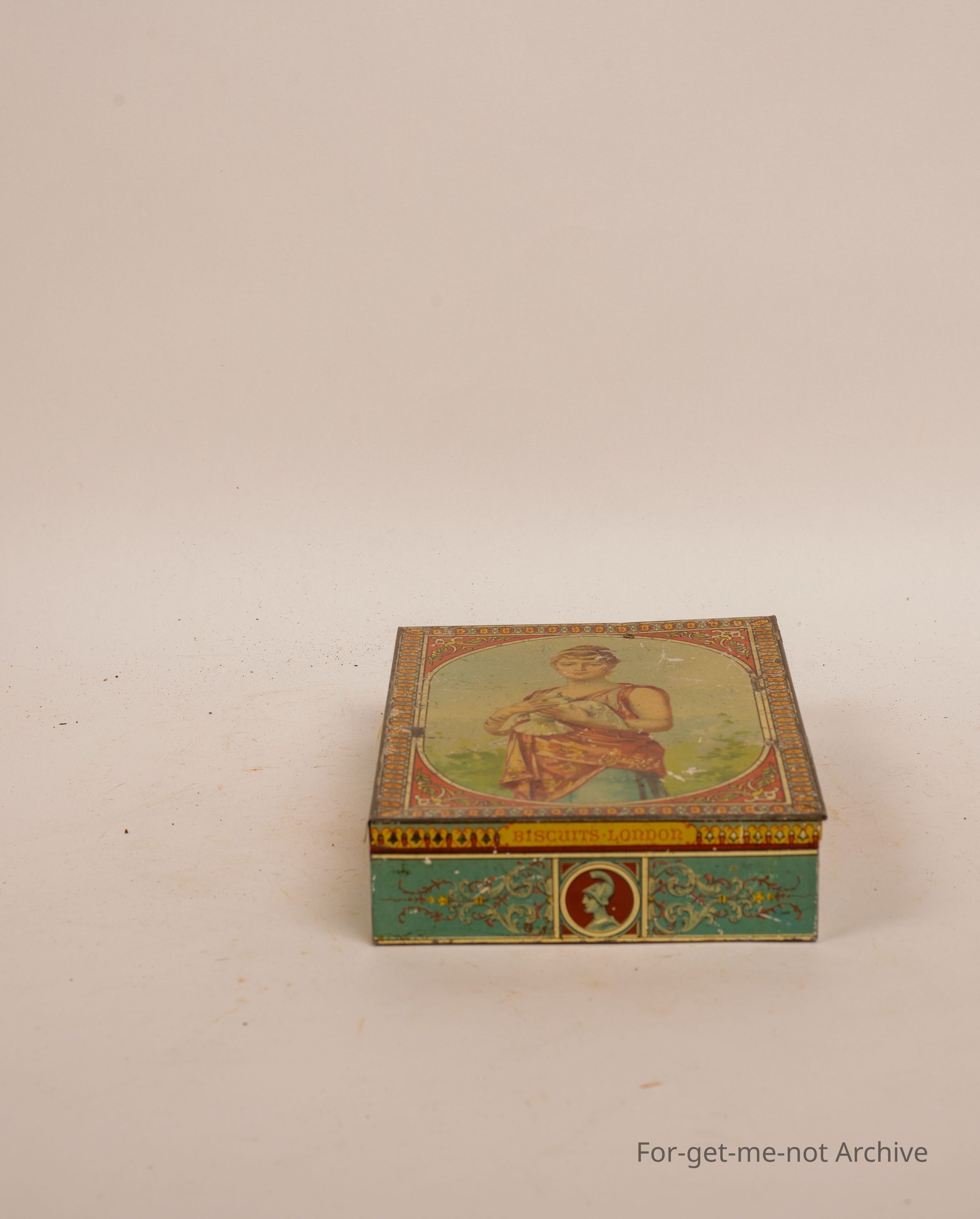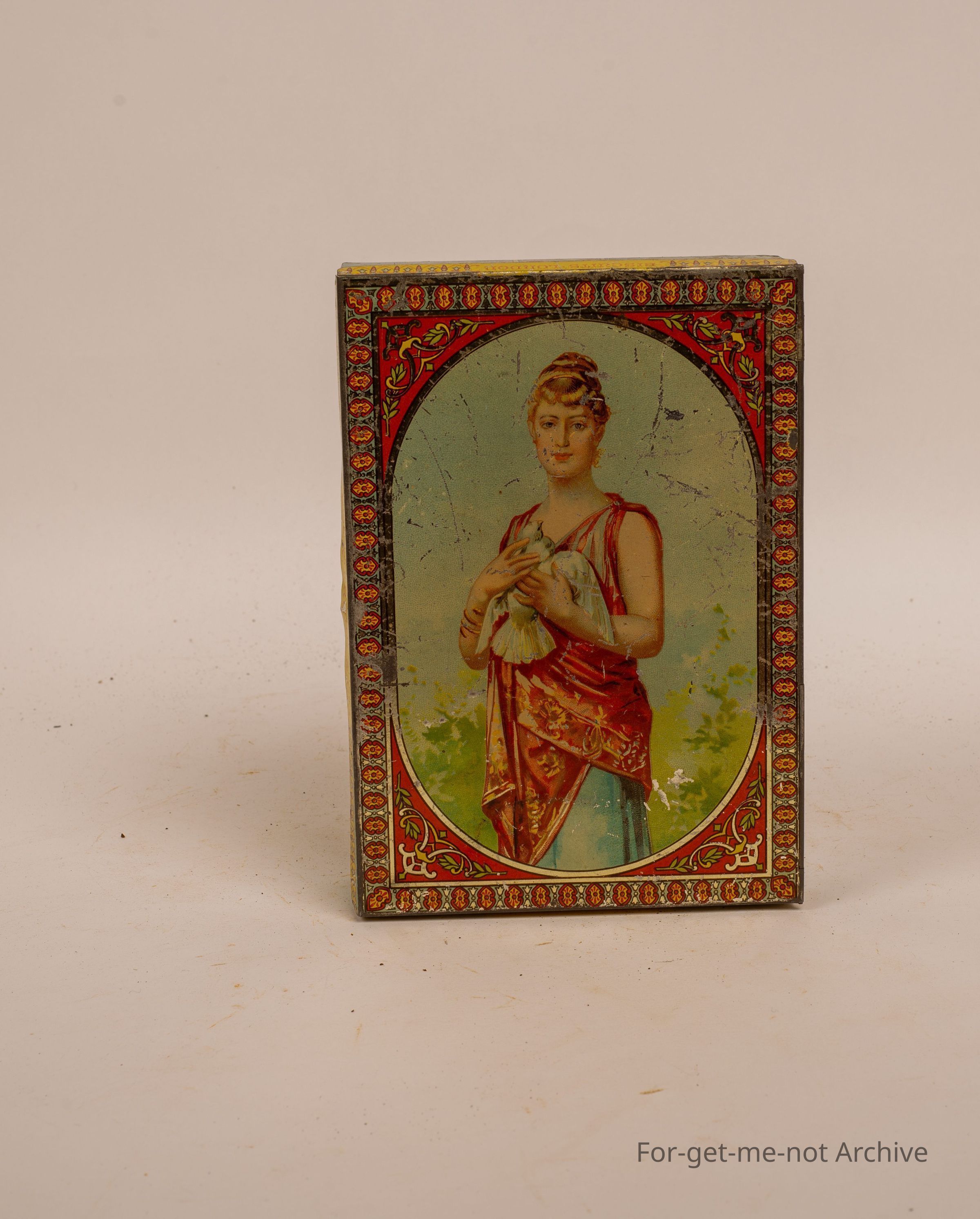 Peake Frean Biscuits London , Very good condition tin, simple construction soldered with excellent graphics, of a woman holding a dove , for its age ( English )