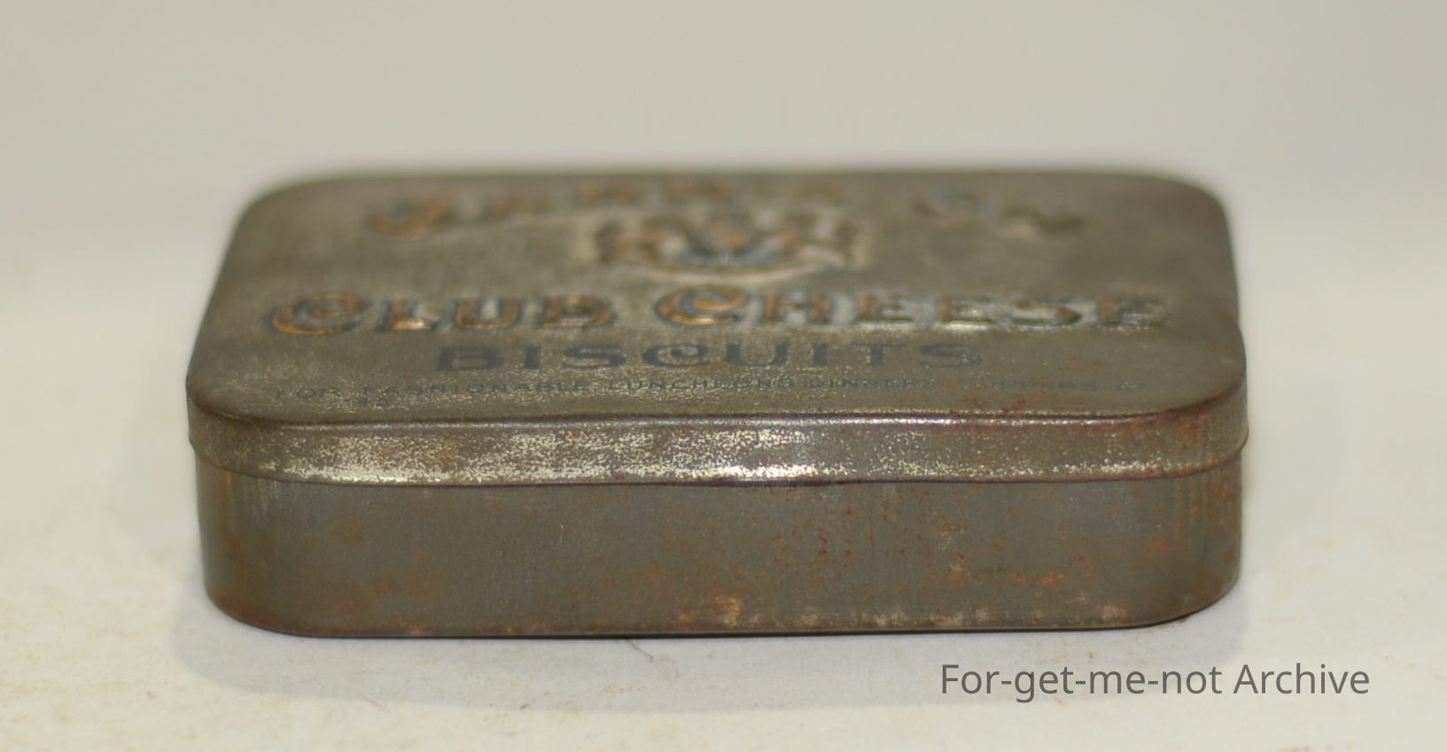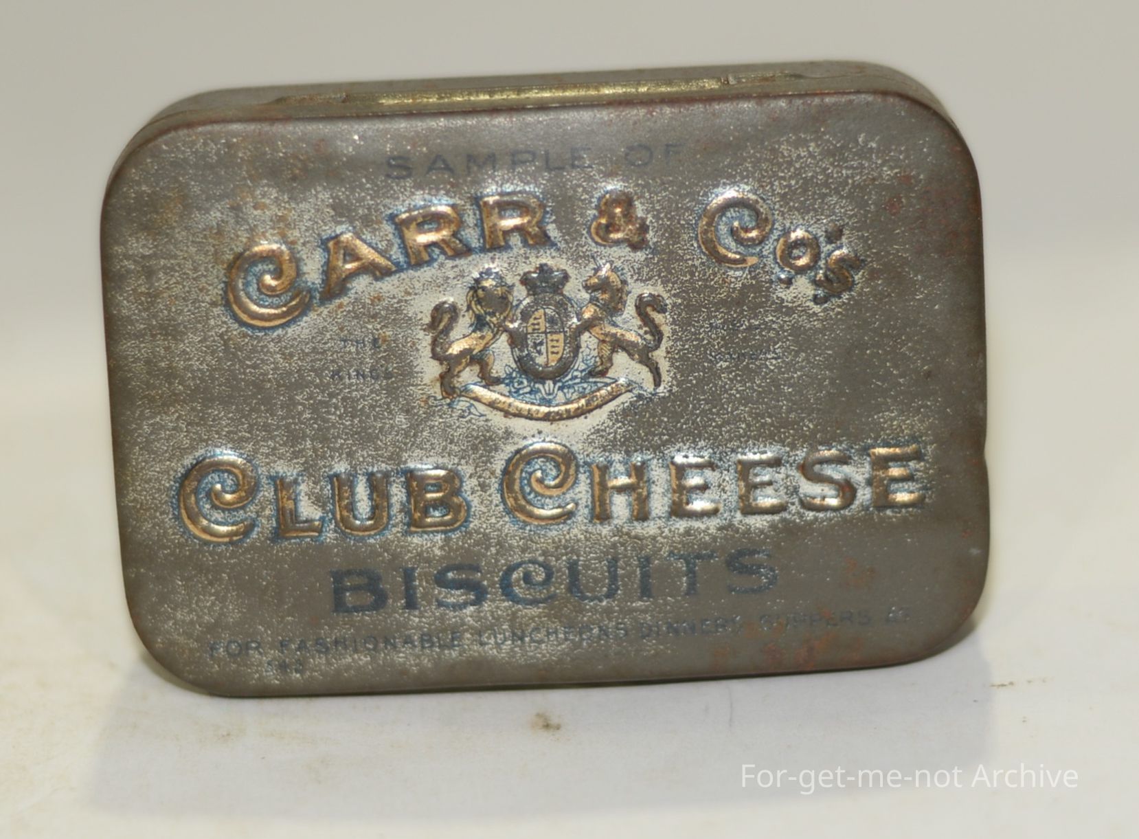 Carr's and Co. Club Cheese Biscuits. Sample tin " For fashionable Lunches, Dinners, Suppers."