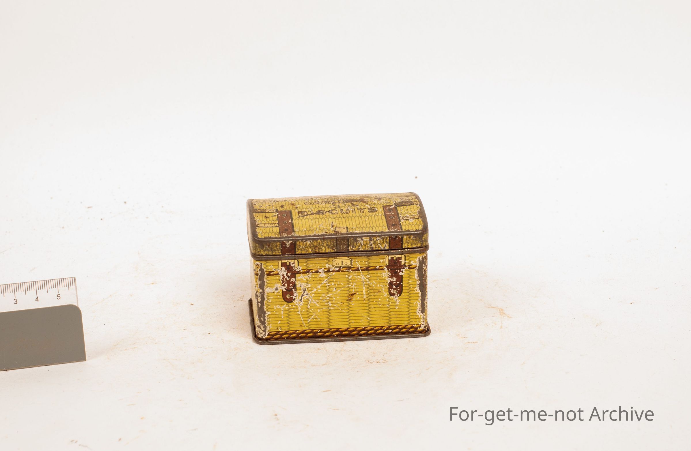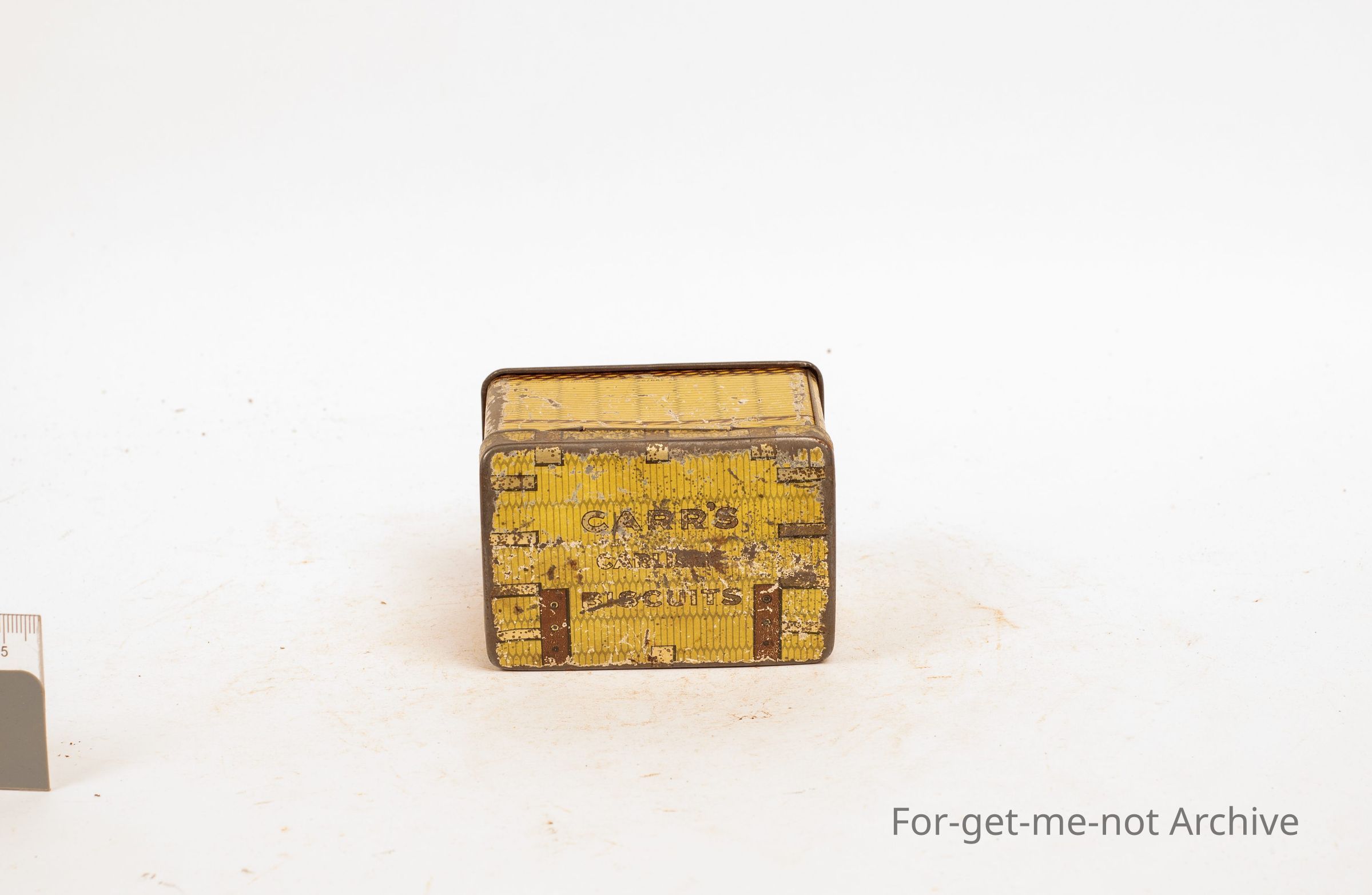 Carrs biscuits, possibly a sample tin, in the form of a small trunk.