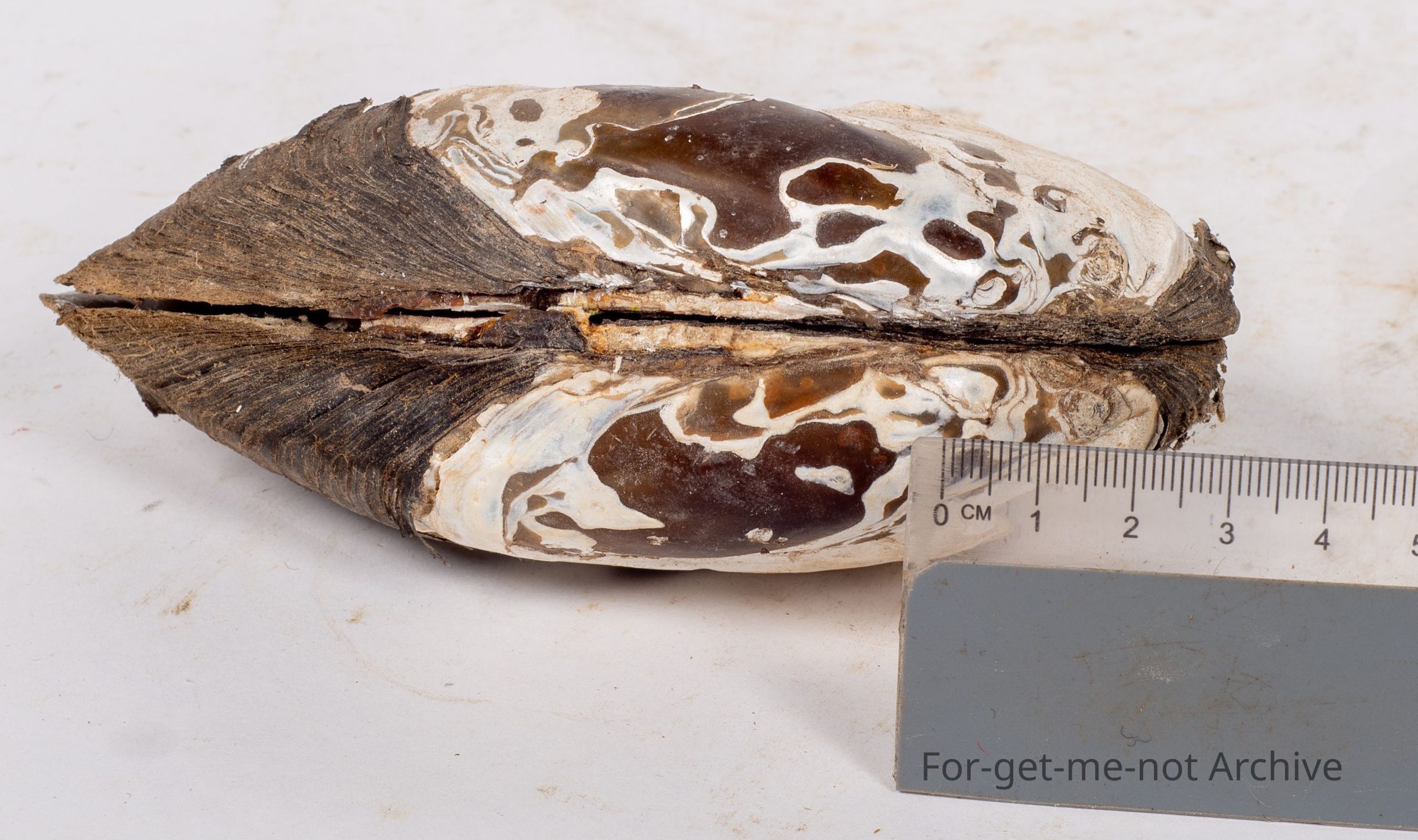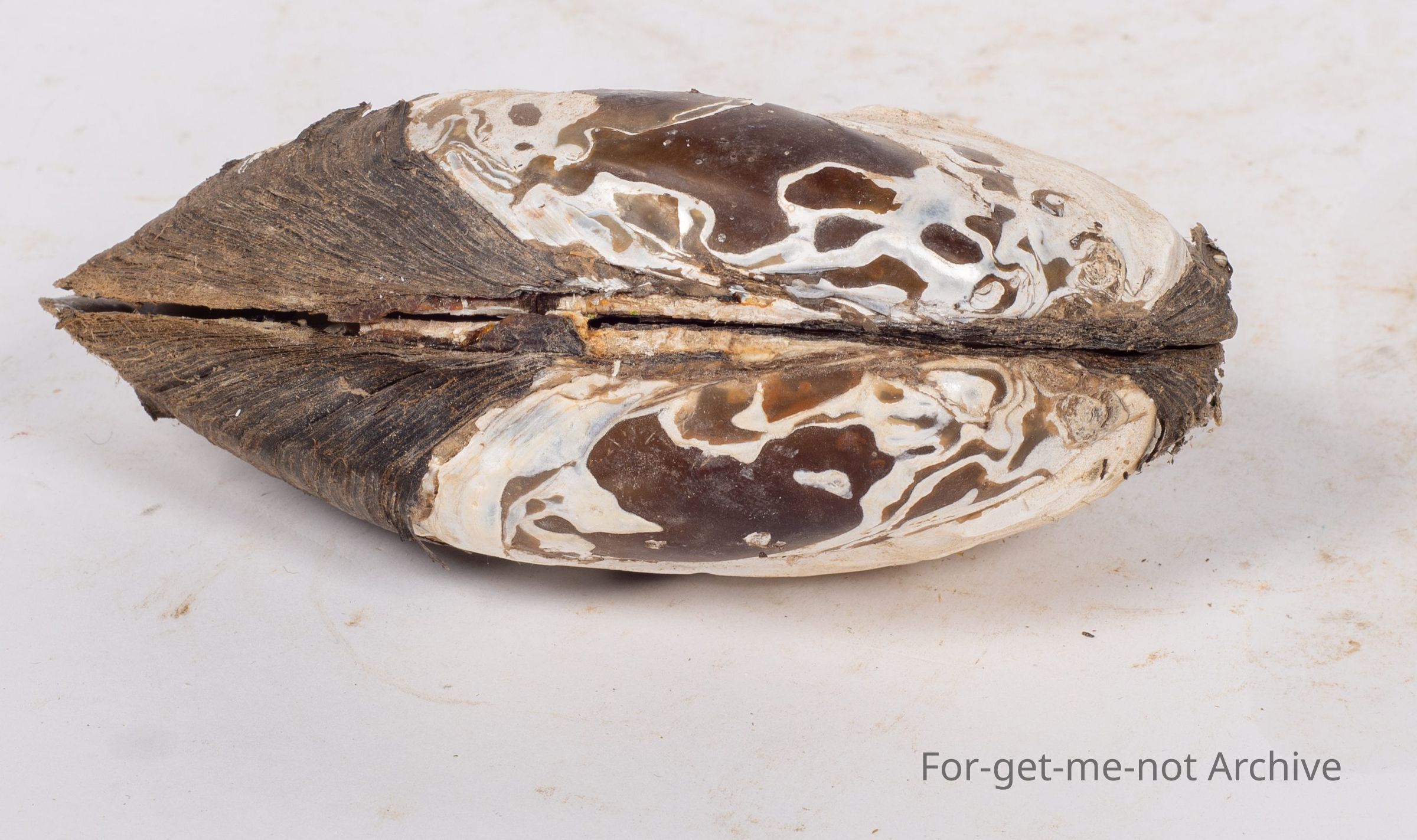 Probably both sides of a black mussel, quite likely this may have come from New Zealand. Beautiful mussels over there, the black mussels. I'd like to eat one this size.