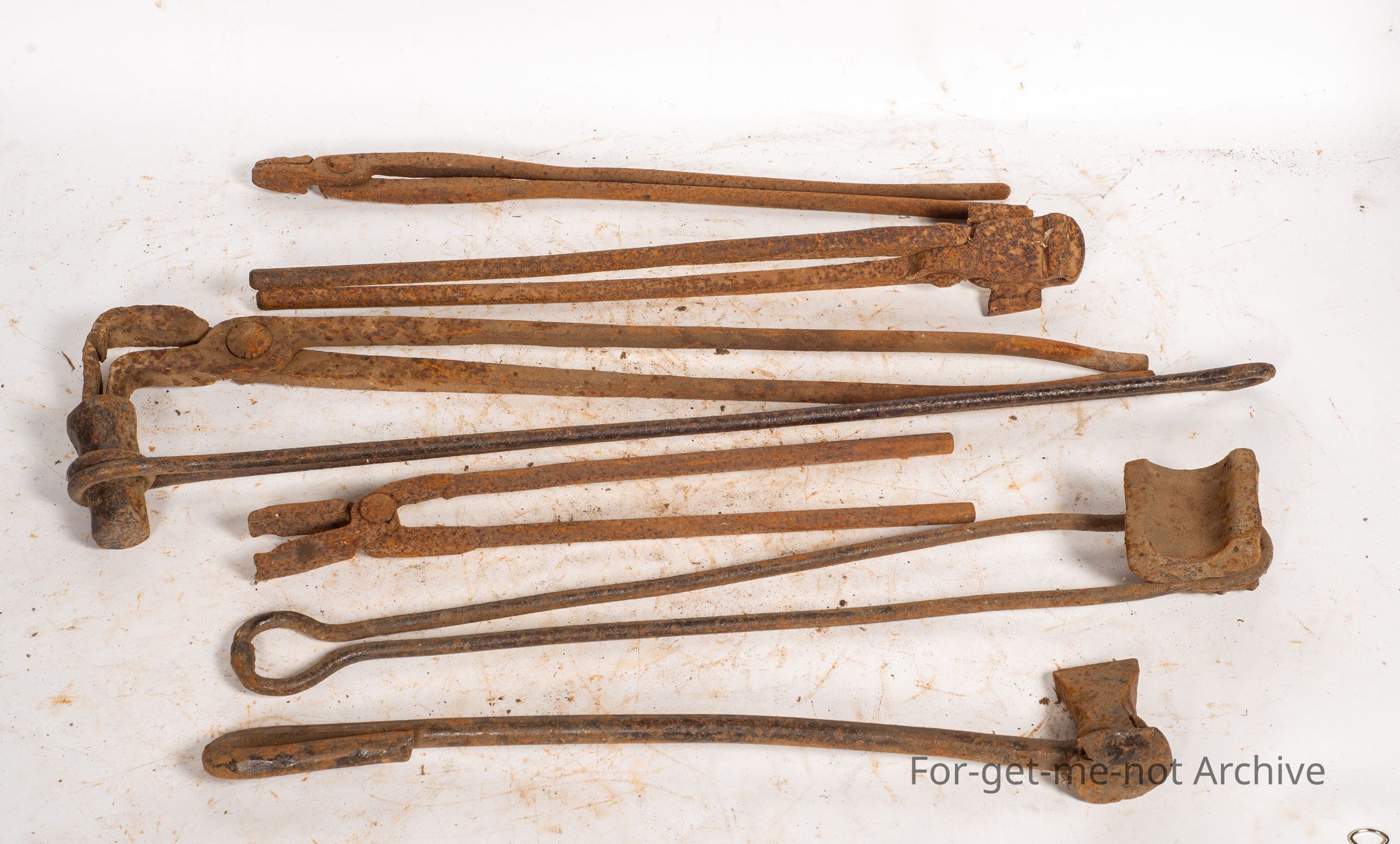 These are various tongs, hammers, cutters, and everything, used by blacksmiths. Almost all the big station properties had a black smith as part of their running team. Every town had a blacksmith to do general repairs. These are just a small sample of the tools used by these country blacksmiths.Collection