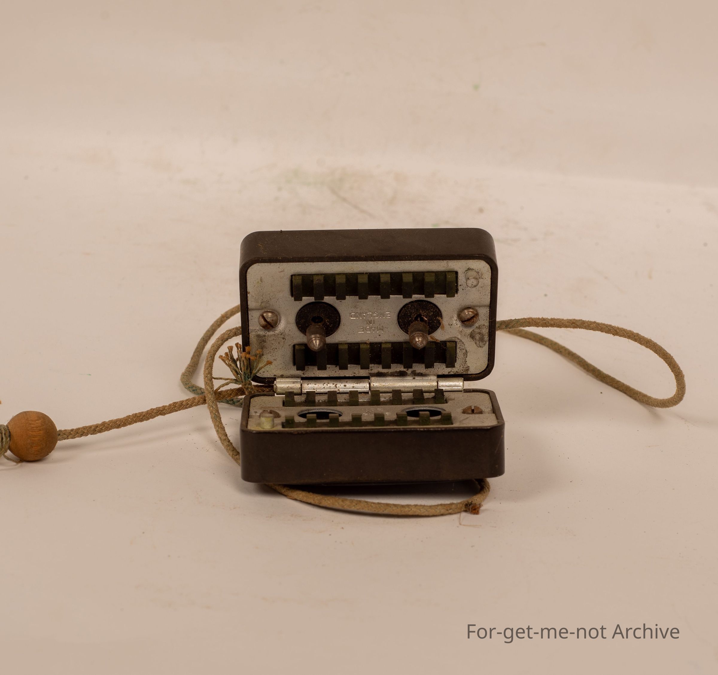 Razor blade sharpener. Made in England. Baker light case. String pull through operation