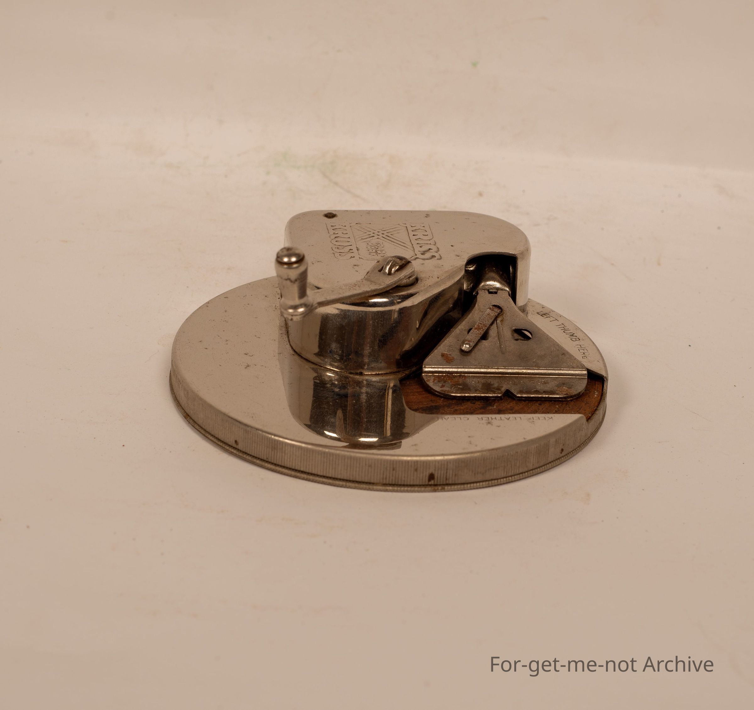 Criss Cross razor blade sharpener. Renowned for not working well. Made in the USA.