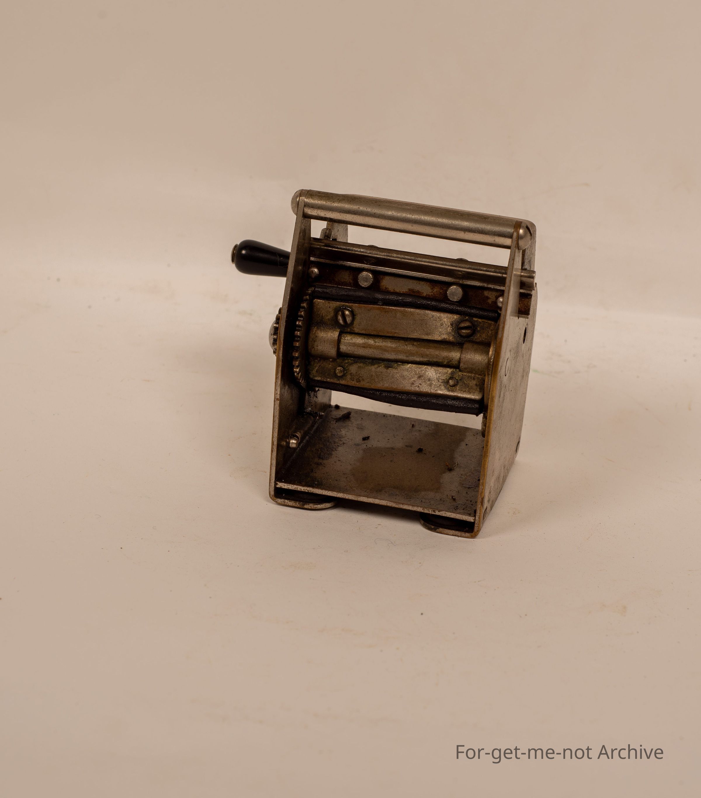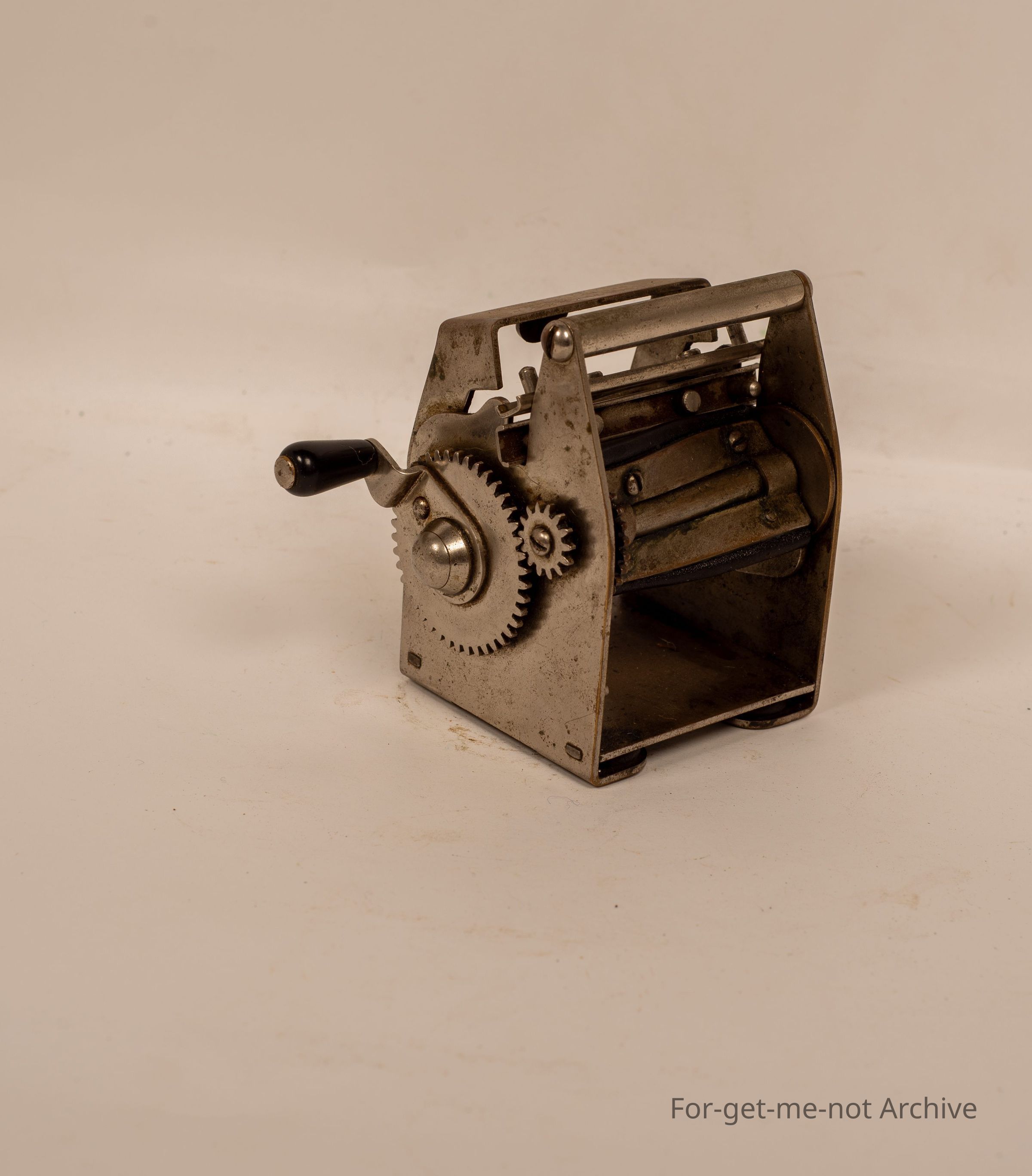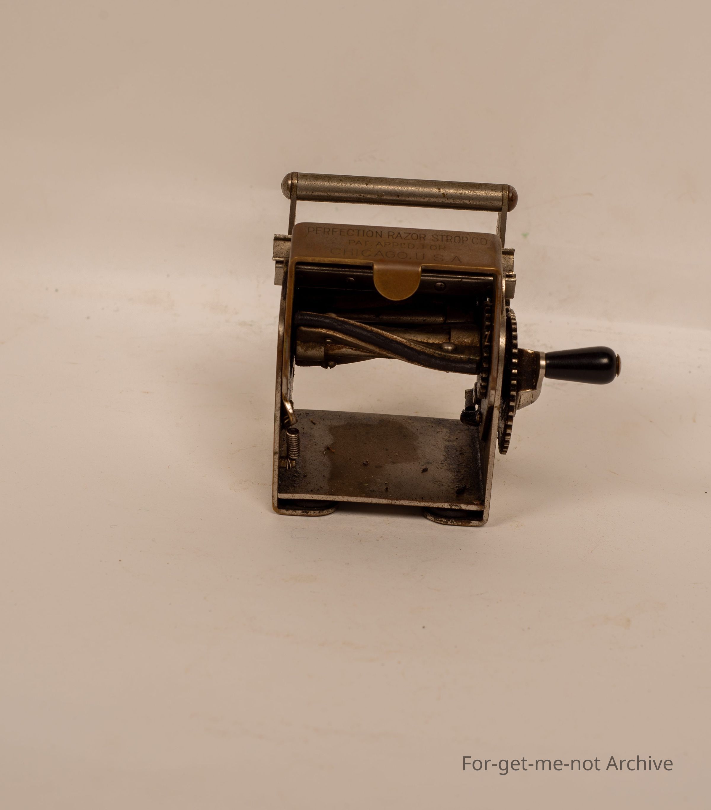 Razor blade sharpener, hand operated. Perfection Razor Strop Company, Chicago, USA.