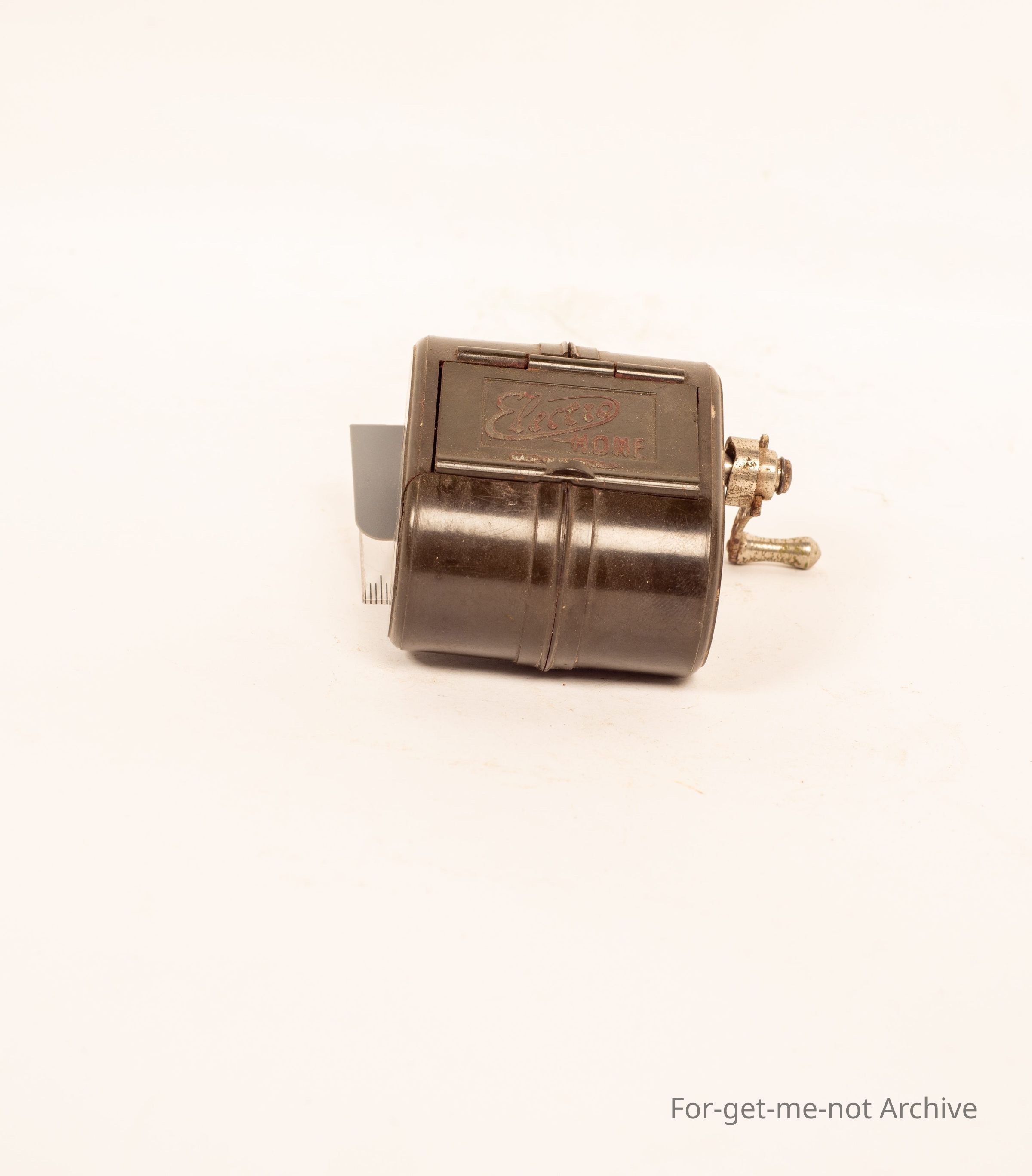 Razor blade sharpener, bakelite case, and operated called Electric Hone. Made in Australia