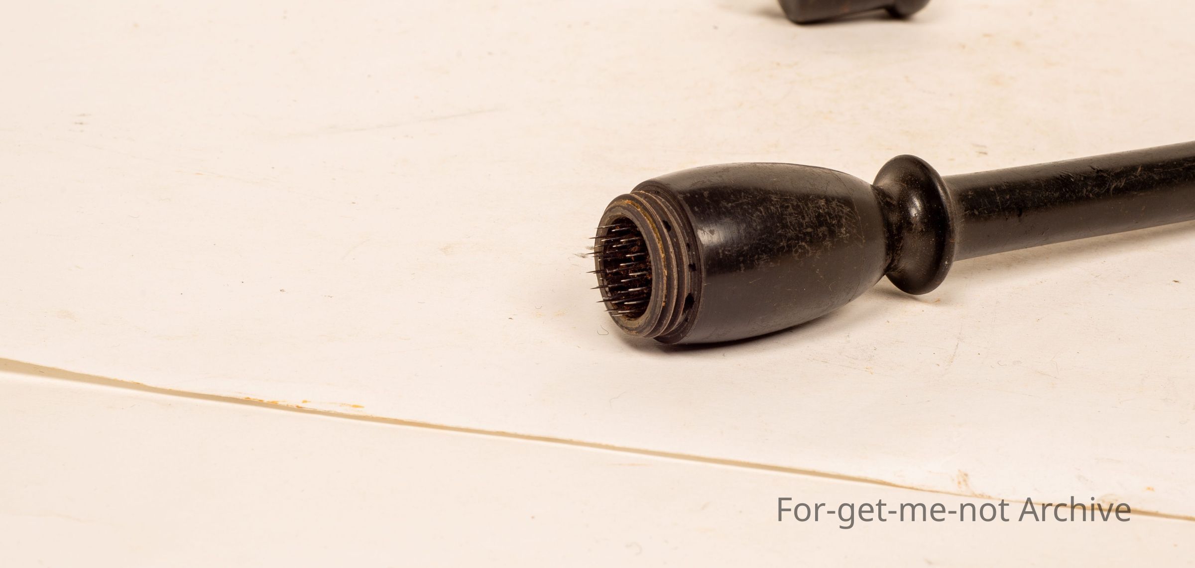 An instrument for bloodletting. This one has a screw off top which exposes a group of needles. The little protruded on the end perforates the skin to allow bleeding. This is beautifully made, an unusual instrument and possibly quite oldCollection