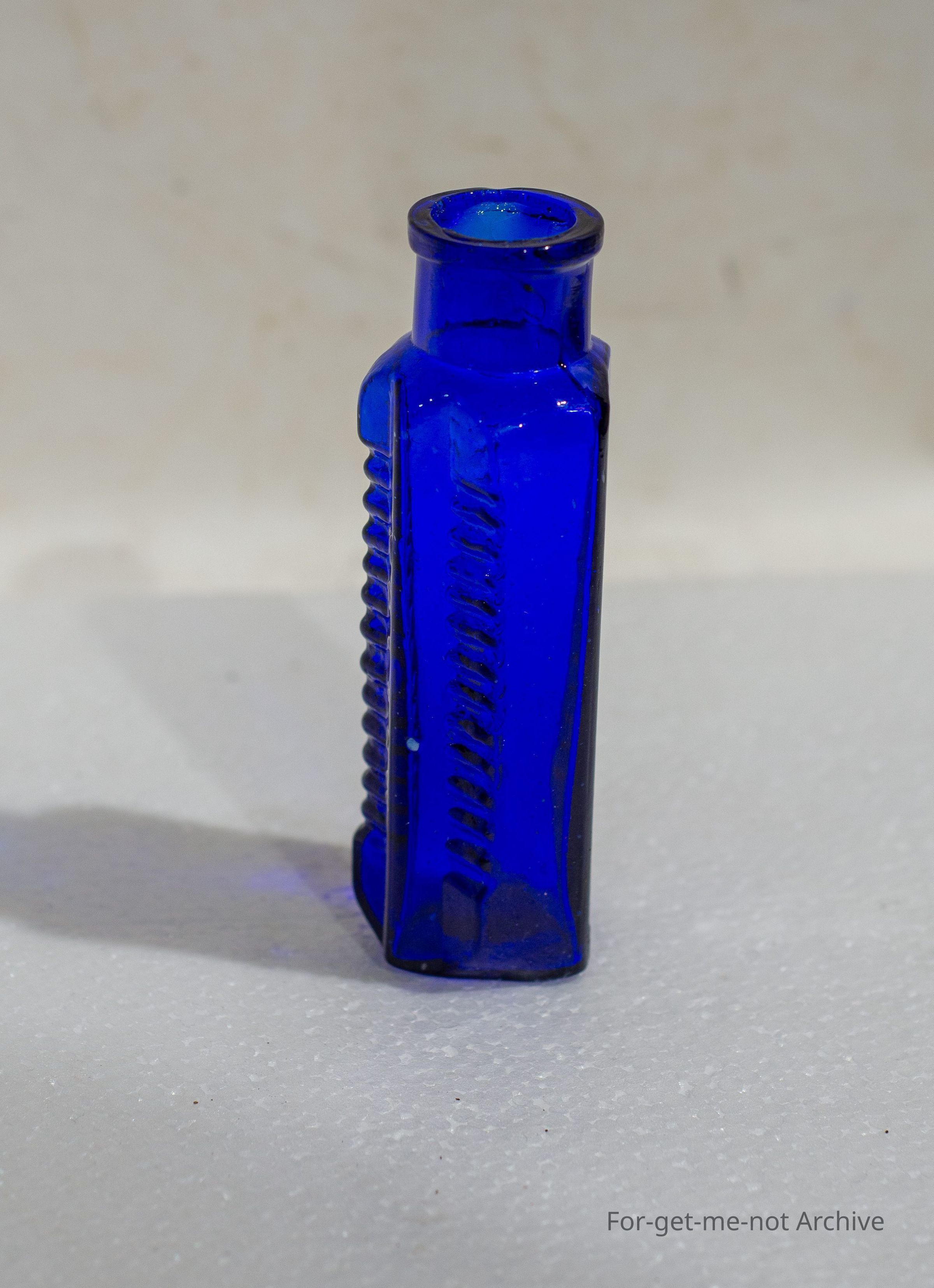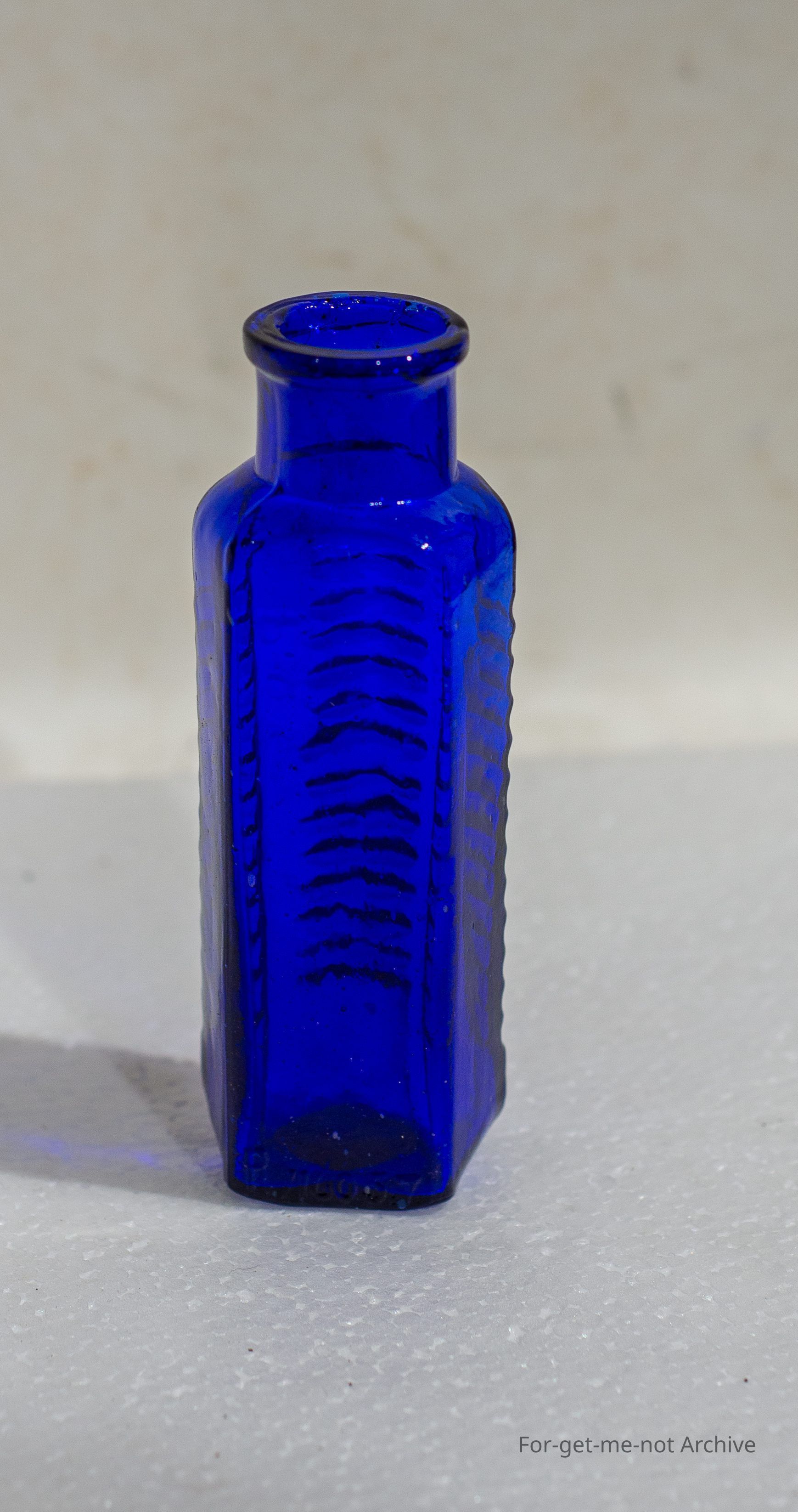 This blue bottle is a poison bottle, No brand "Poison - Not to be taken"