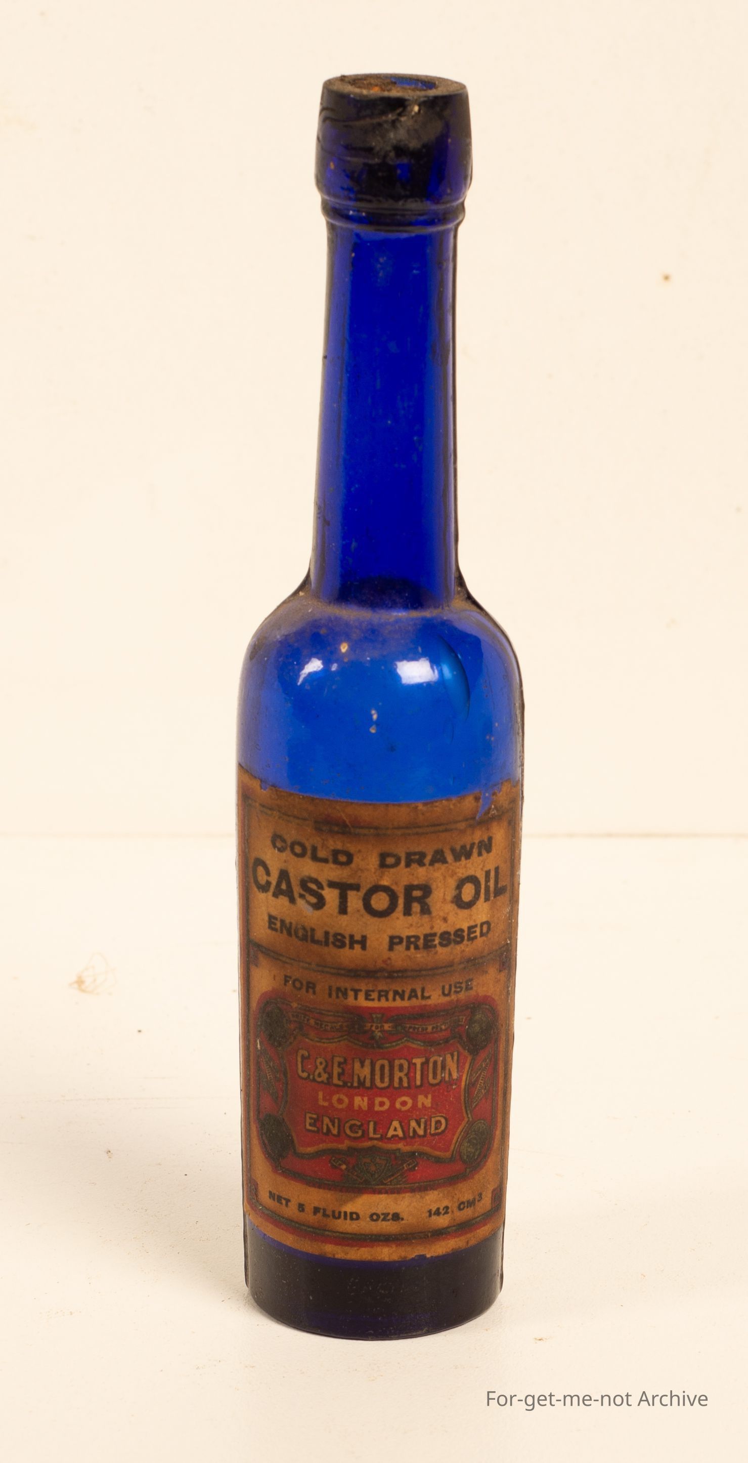 Blue Glass Castor Oil Bottle