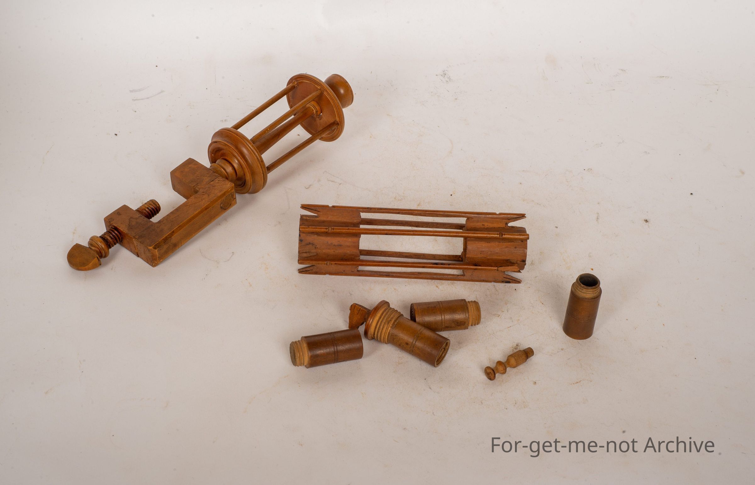 Beautiful little bobbin, possibly maple wood. This was used for, unravelling the thread from silkworms onto the bobbin at the top. Beautifully made, a real craft piece. Very delicate. There are 2 of them. Different design. Same timber. 2 silk bobbinsCollection