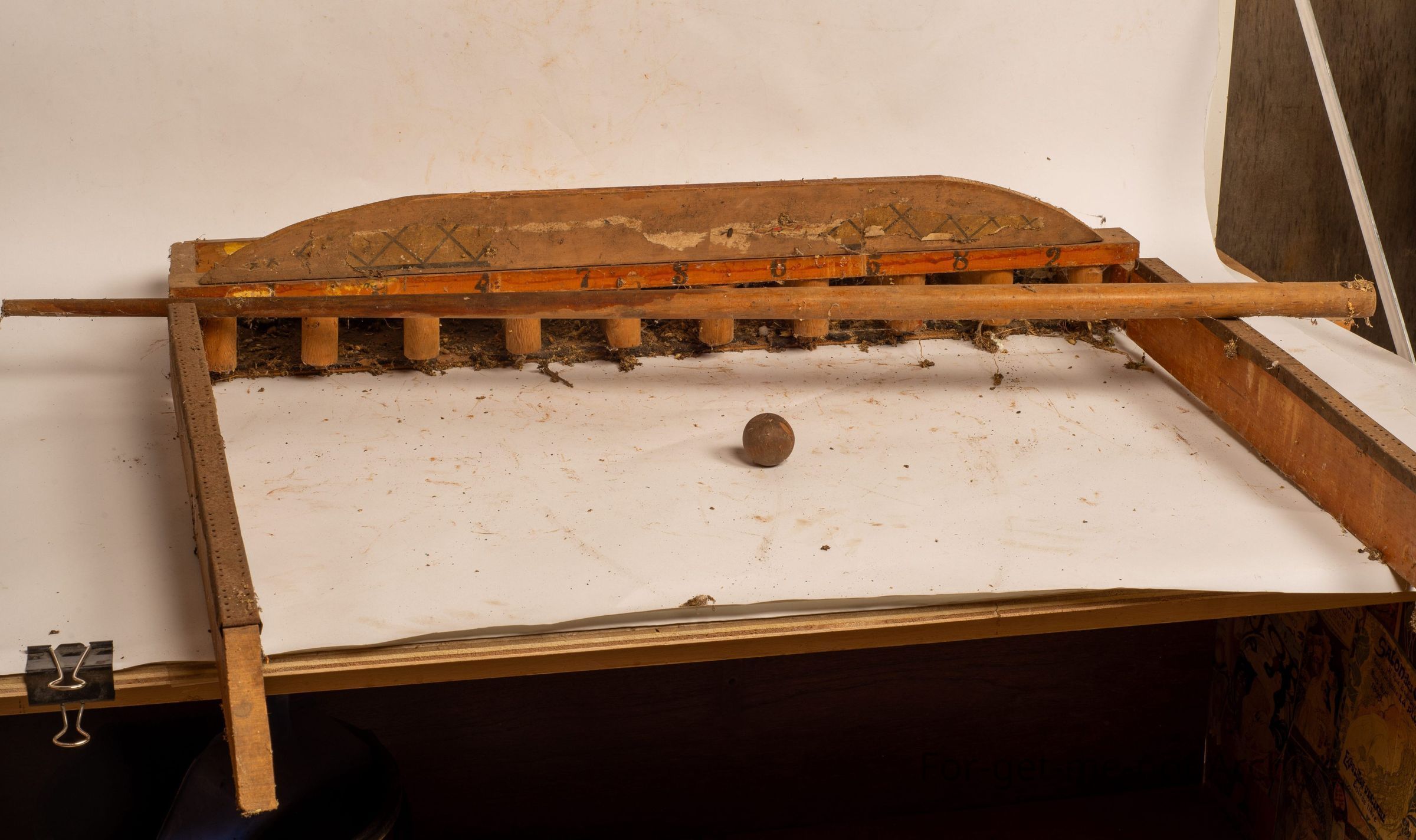 Children's games. This is a wooden, Bob set, all pretty complete with the balls, the cues, and the wings to direct the outside edge. It it's a game from many years ago, not commonly used today. Perhaps a 4 one r to the, electronic games that are available.Collection