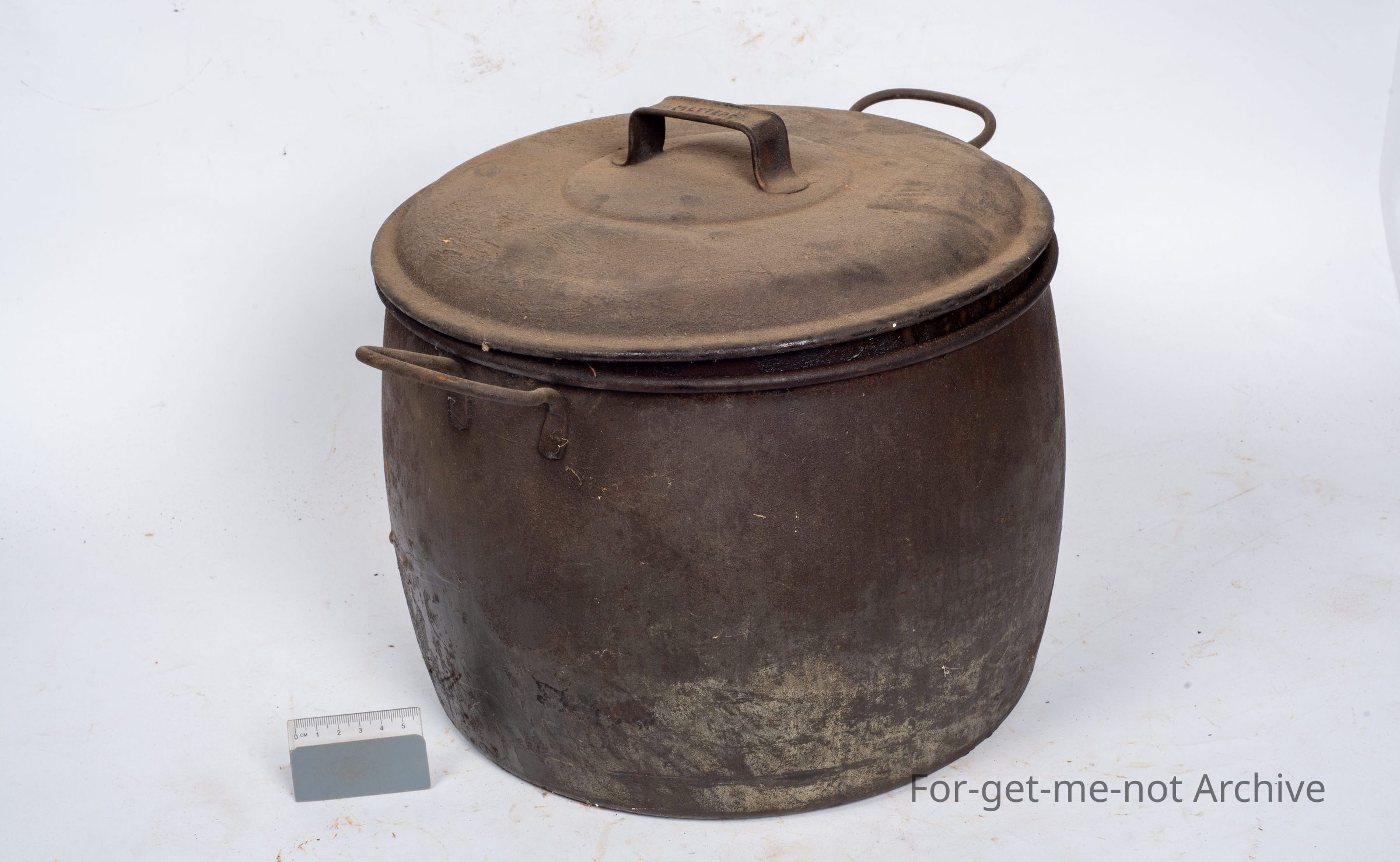 This is just a run of the mill boiler, made of pressed tin. Has a lid with meters stamped in the lid. Possibly original.