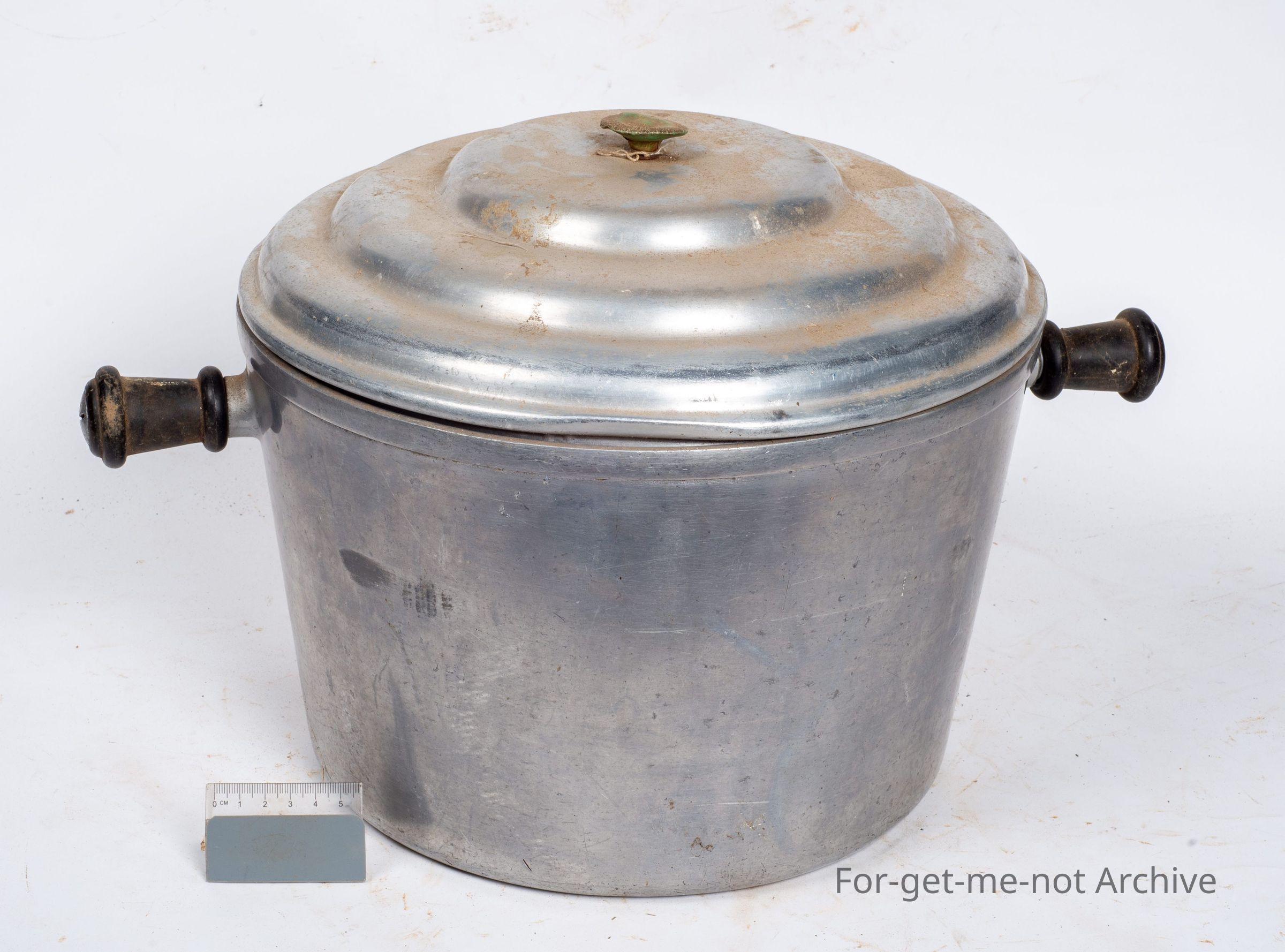 This is, virtually a contemporary aluminium or cast aluminium large boiler with a handle either side which is possibly vaporized. Has original lid. Quite a large capacity,